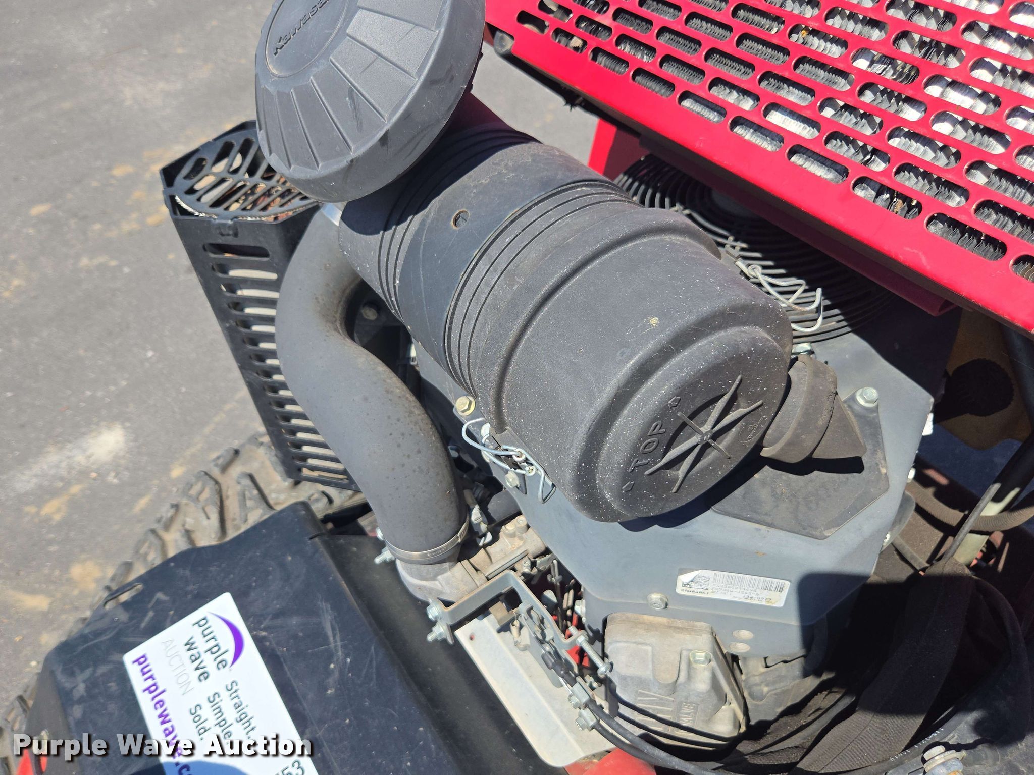 Toro STX26 stump grinder. Hours: 1,037 on meter, Serial: 406815938. Engine Kawasaki FX-730V, Cylinders: 2, Fuel type: Gas, HP: 26. Transmission Hydrostatic. Features Cutter depth: 12.5", Cutting head diameter: 18" Bolt-on teeth. Tracks Width: 6", Rubber. Yesco Rents. Panama City, FL 32405