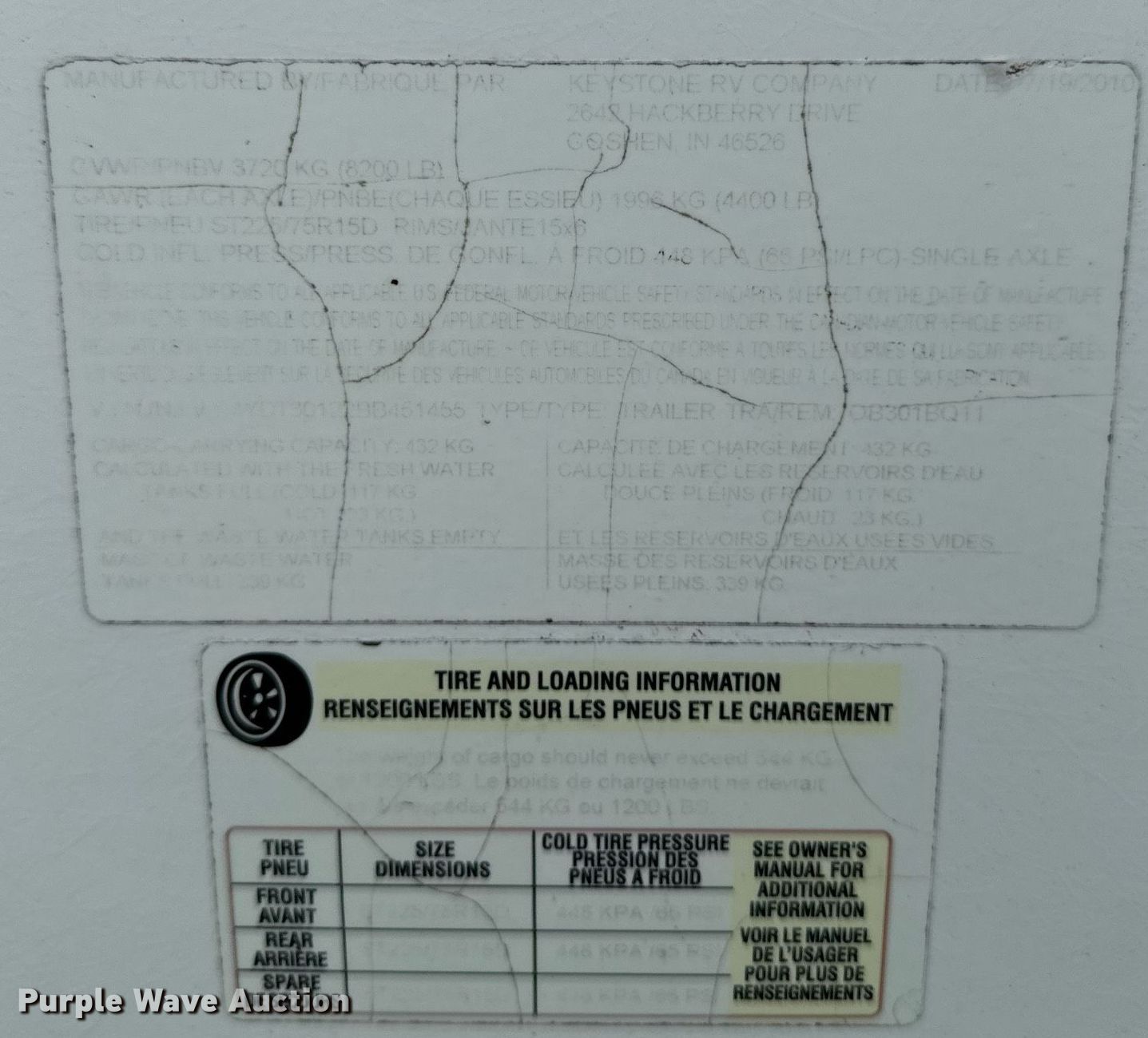 Purple Wave is selling a used RV or Camper in Iowa. This item is a 2011 Keystone Outback camper with the following: Camper length: 30', VIN: 4YDT30122BB451455