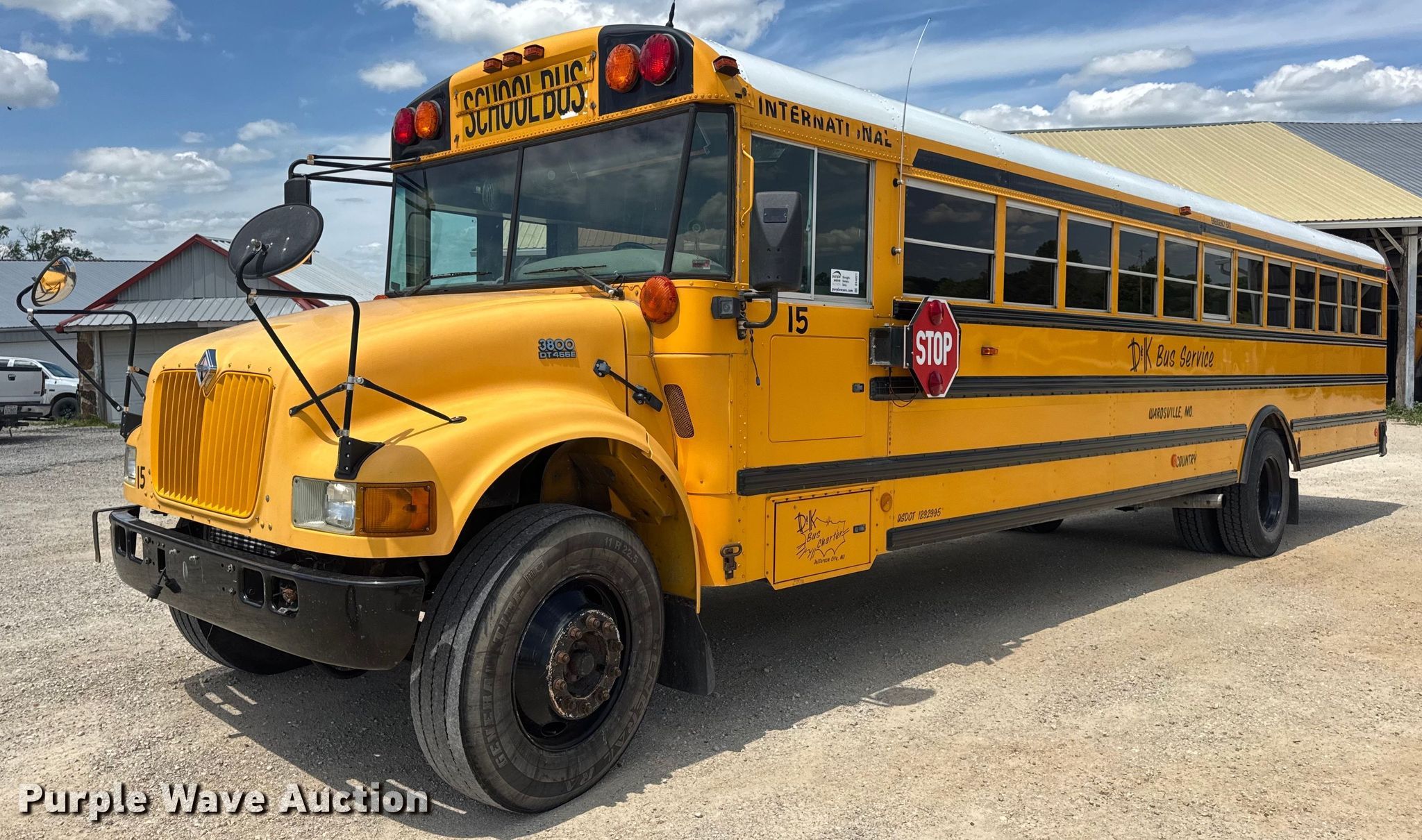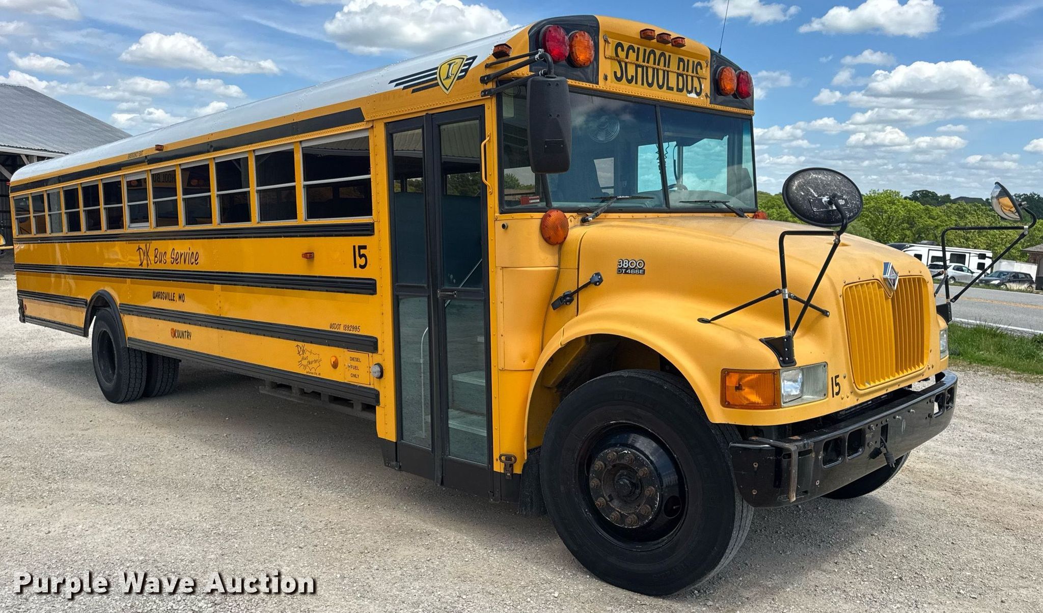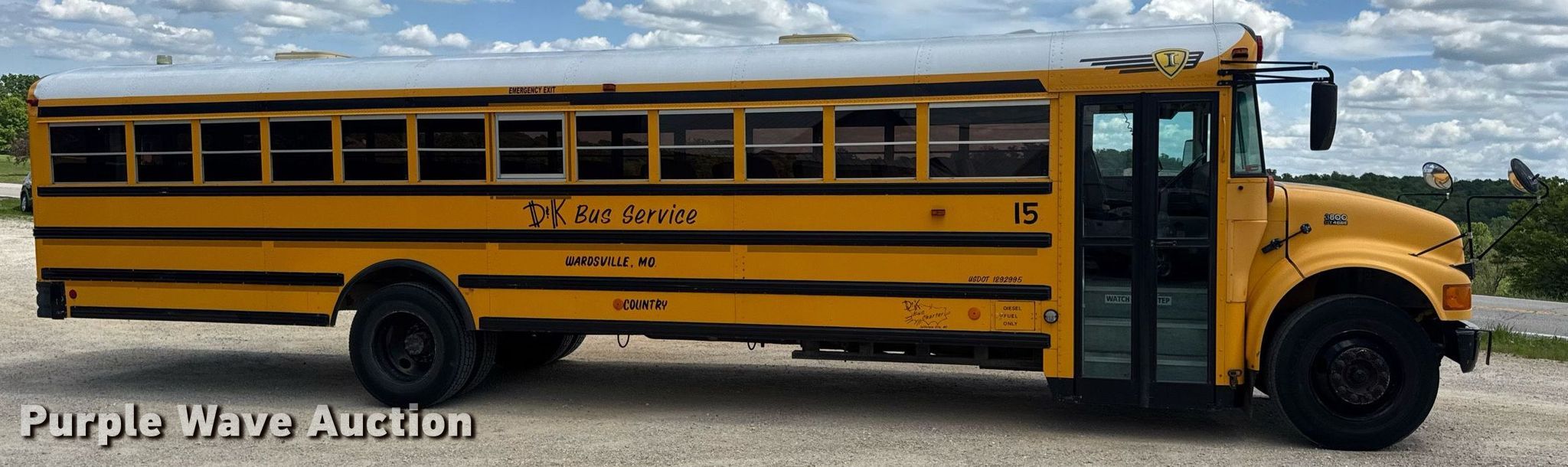 Purple Wave is selling a used Bus in Missouri. This item is a 2002 International 3800 school bus with the following: Miles: 313,024 on odometer, Hours: 13,041 on meter, VIN: 4DRBRAAP72A946718, Unit #: 15
