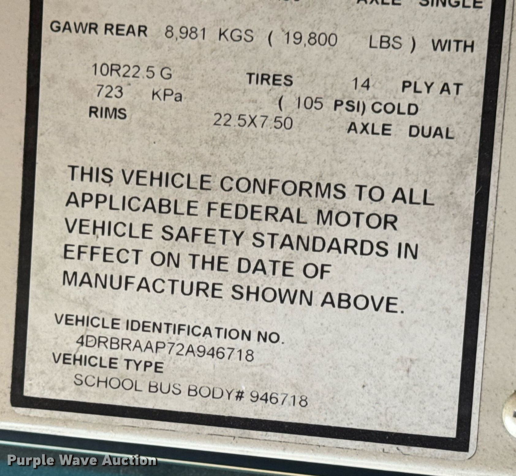 - VIN: 4DRBRAAP72A946718