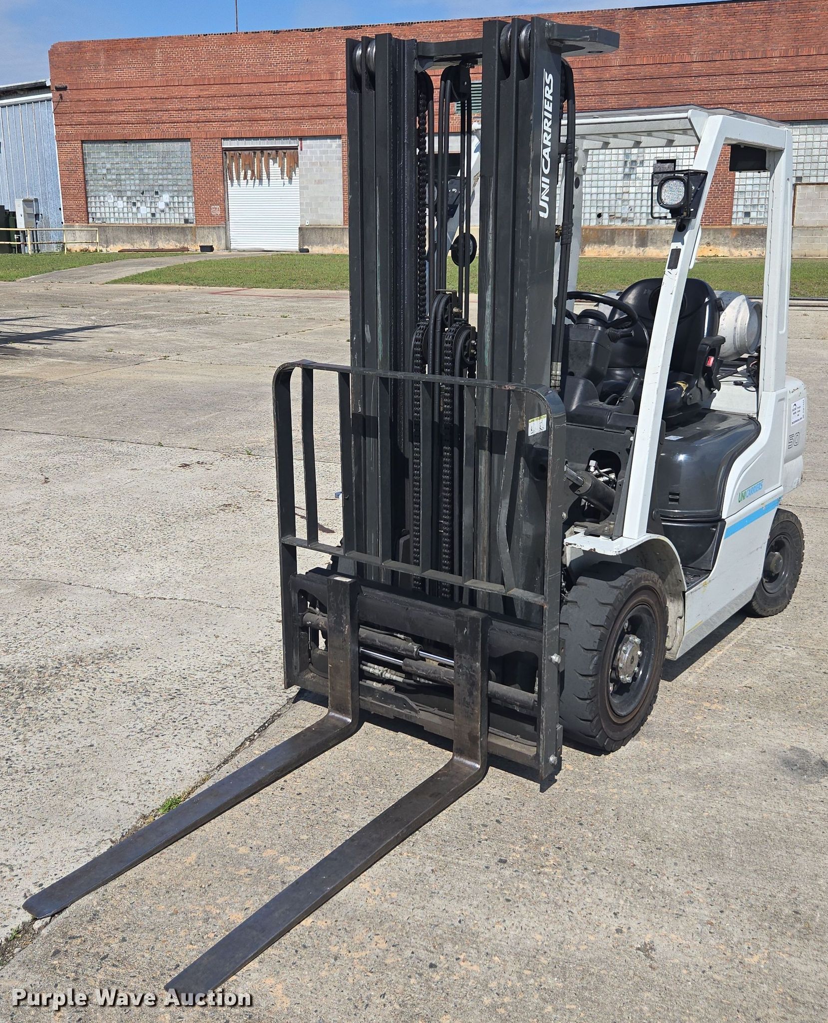 Purple Wave is selling a used Cushion Tire or Pneumatic Forklift in Georgia. This item is a Nissan PF50 forklift with the following: Hours: 1,670 on meter, Serial: P1F2-9H20372, Unit #: SFS2054
