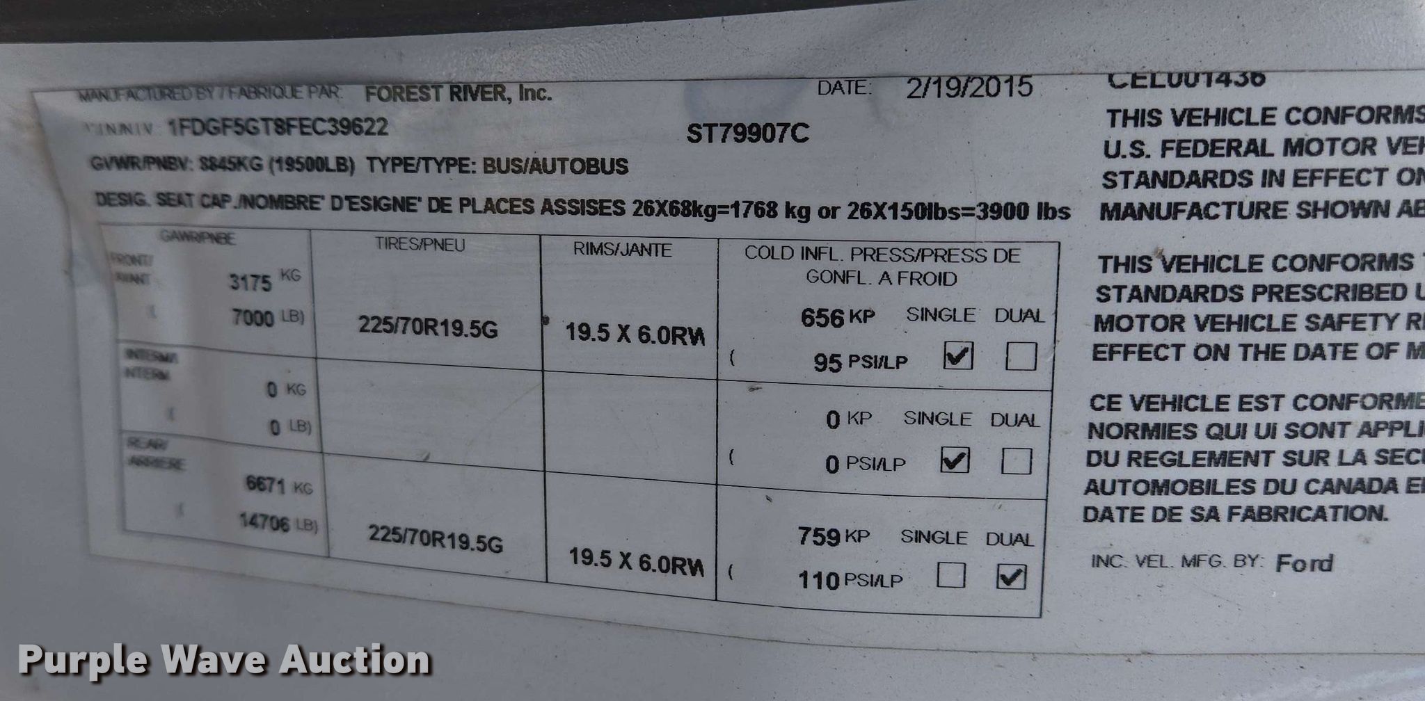 Purple Wave is selling a used Bus in Missouri. This item is a 2015 Ford F550 XL Super Duty shuttle bus with the following: Miles: 95,188 on odometer, Hours: 6,633 on meter, VIN: 1FDGF5GT8FEC39622