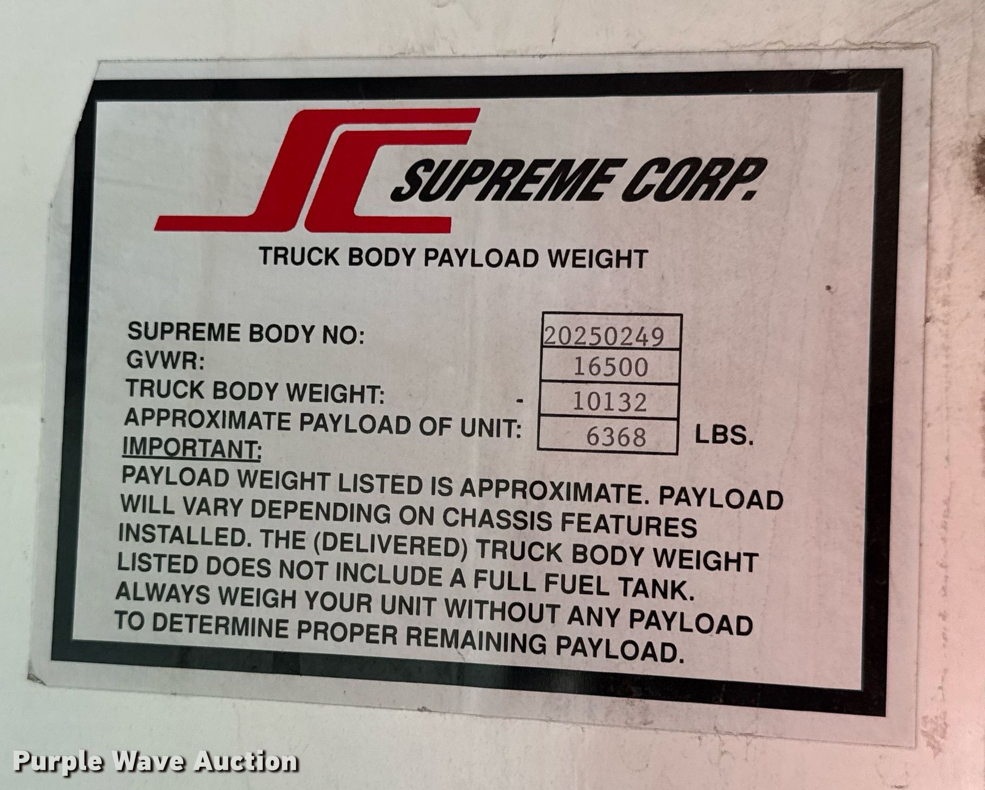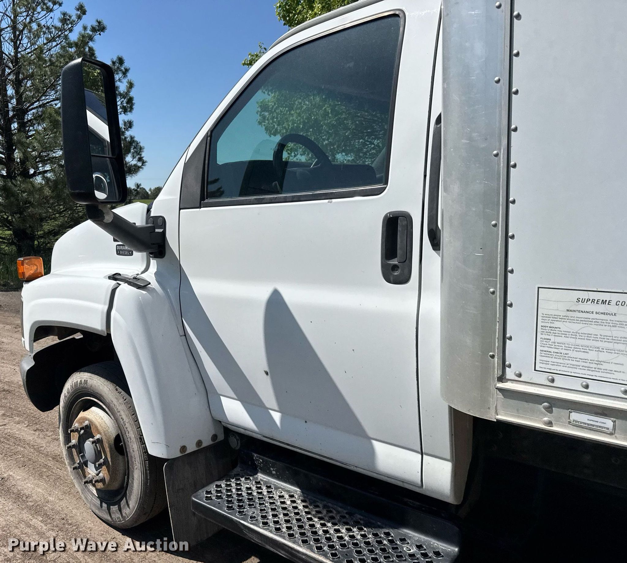 2003 Chevrolet C4500 box truck. Miles: 178,744 on odometer, VIN: 1GBE4F1193F506419. Engine Displacement: 6.6L, Cylinders: 8, Fuel type: Diesel. Transmission Automatic. Chassis Axles: Single, Suspension: Spring, Brakes: Hydraulic, GVWR: 16,500 lbs. Interior AC, Heat, Cruise control. Features Box bed Supreme Corp, Serial: 20250249 IA16084096, 16' 6" L x 95" W x 88" H, Floor: Wood. Tires Size: 225/70R19.5. Notes Dash warning indicator: Oil pressure, Oil pressure sensor issues. Kansas title. Title distribution may be delayed up to 14 days from verification of funds. Heartstone Inc. Kechi, KS 67067