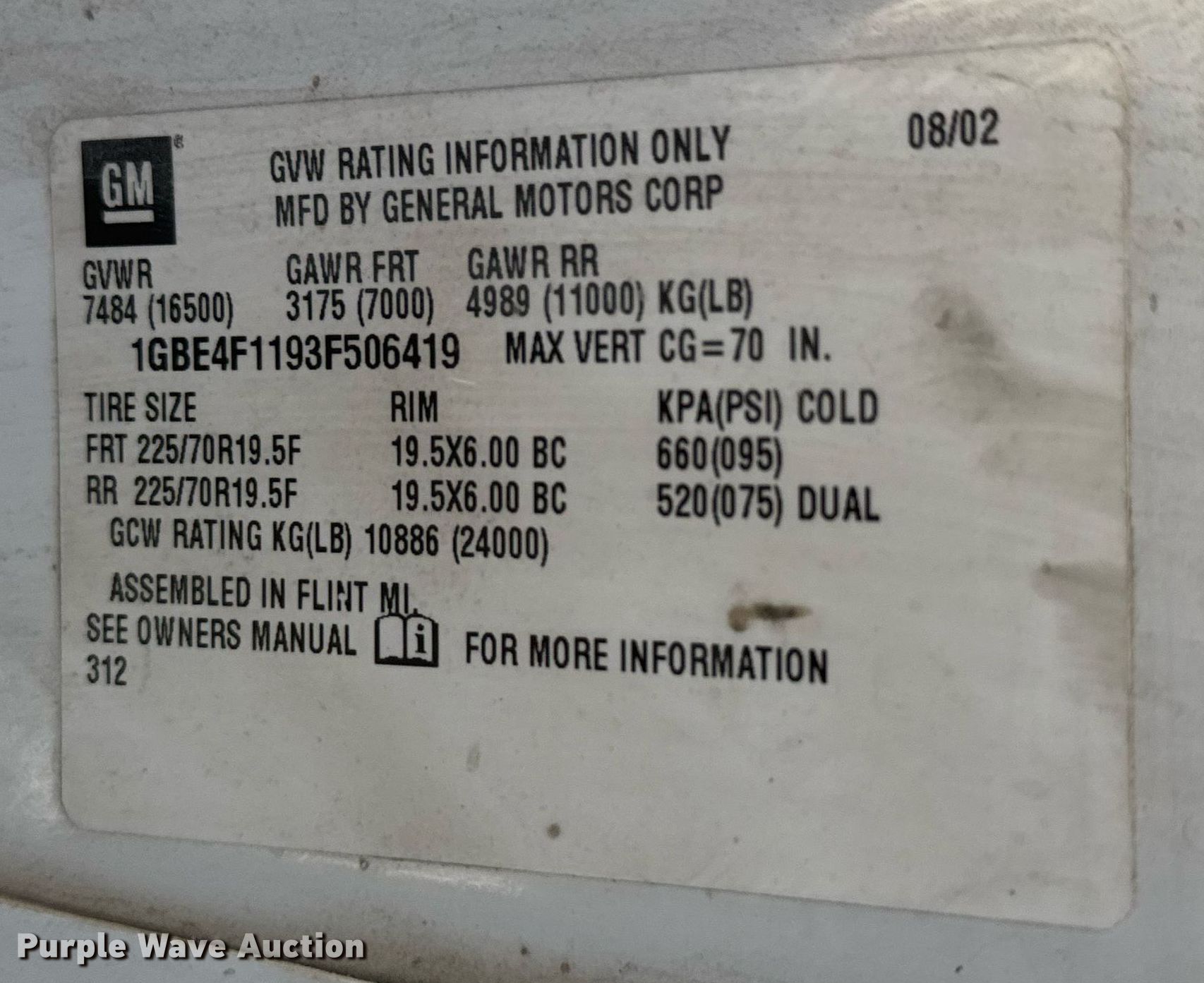 - VIN: 1GBE4F1193F506419