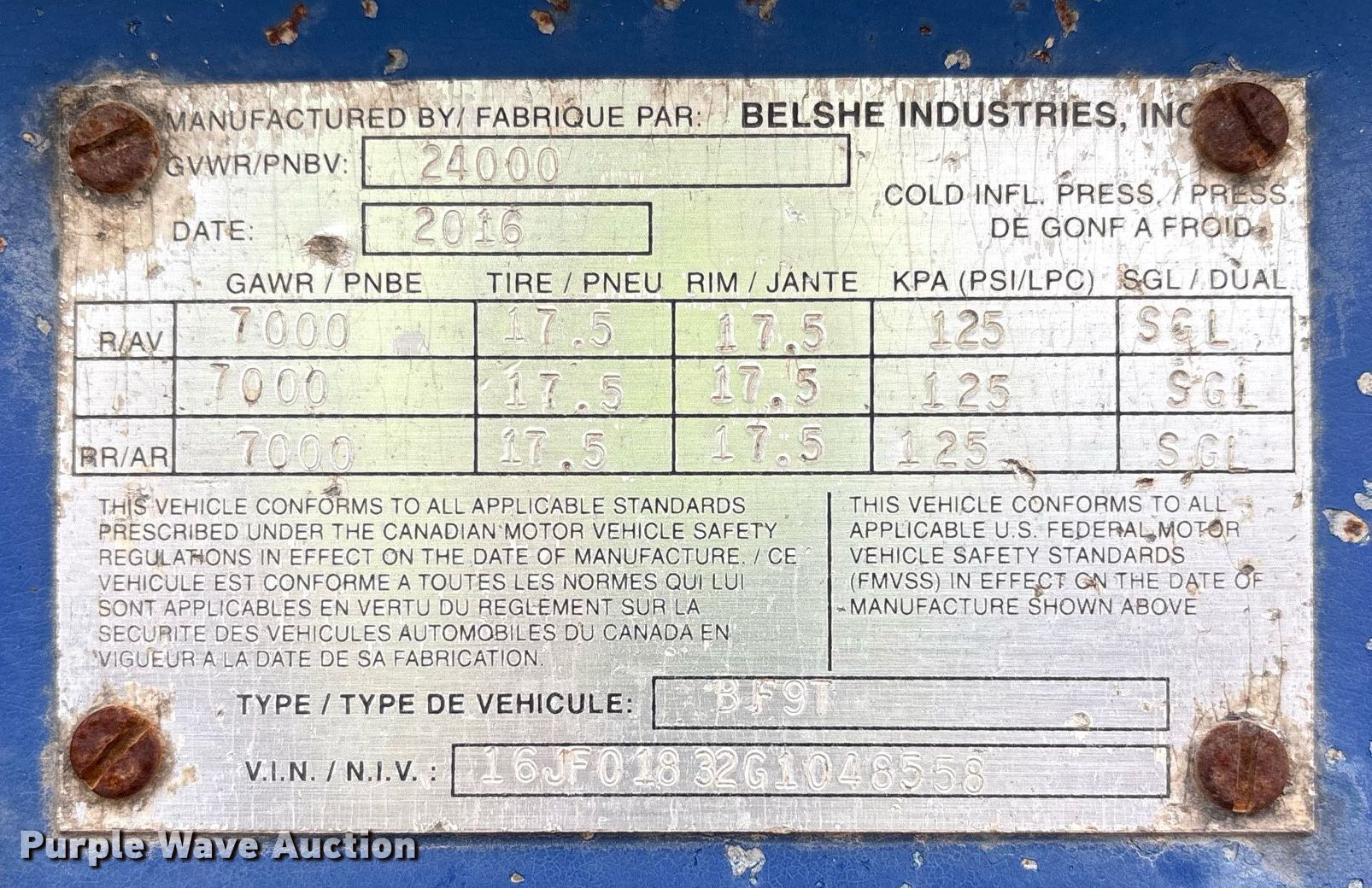 Purple Wave is selling a used Equip. Trailer in Texas. This item is a 2016 Belshe BF9T equipment trailer with the following: VIN: 16JF01832G1048558