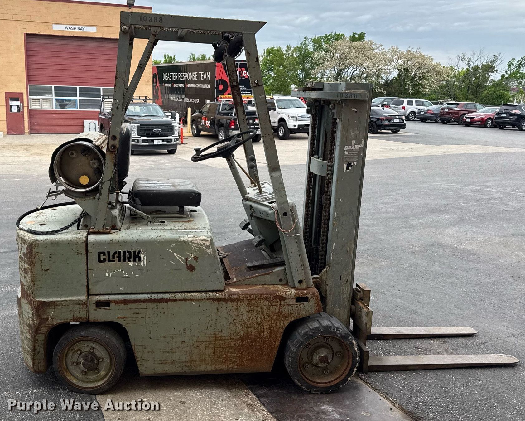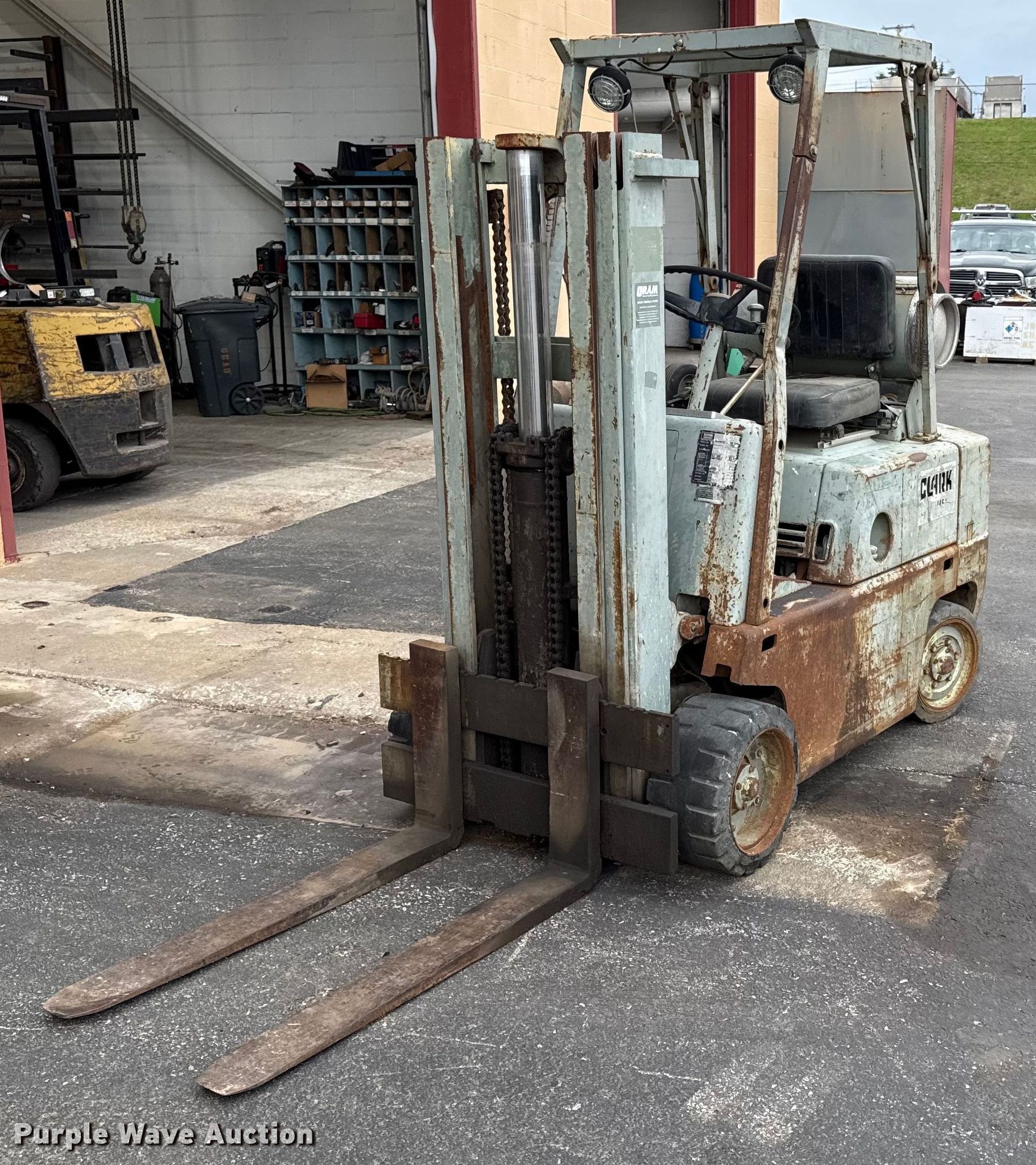 Purple Wave is selling a used Cushion Tire or Pneumatic Forklift in Missouri. This item is a Clark C500-45 forklift with the following: Hours: 2,352 on meter, Serial: 355-2129-2528