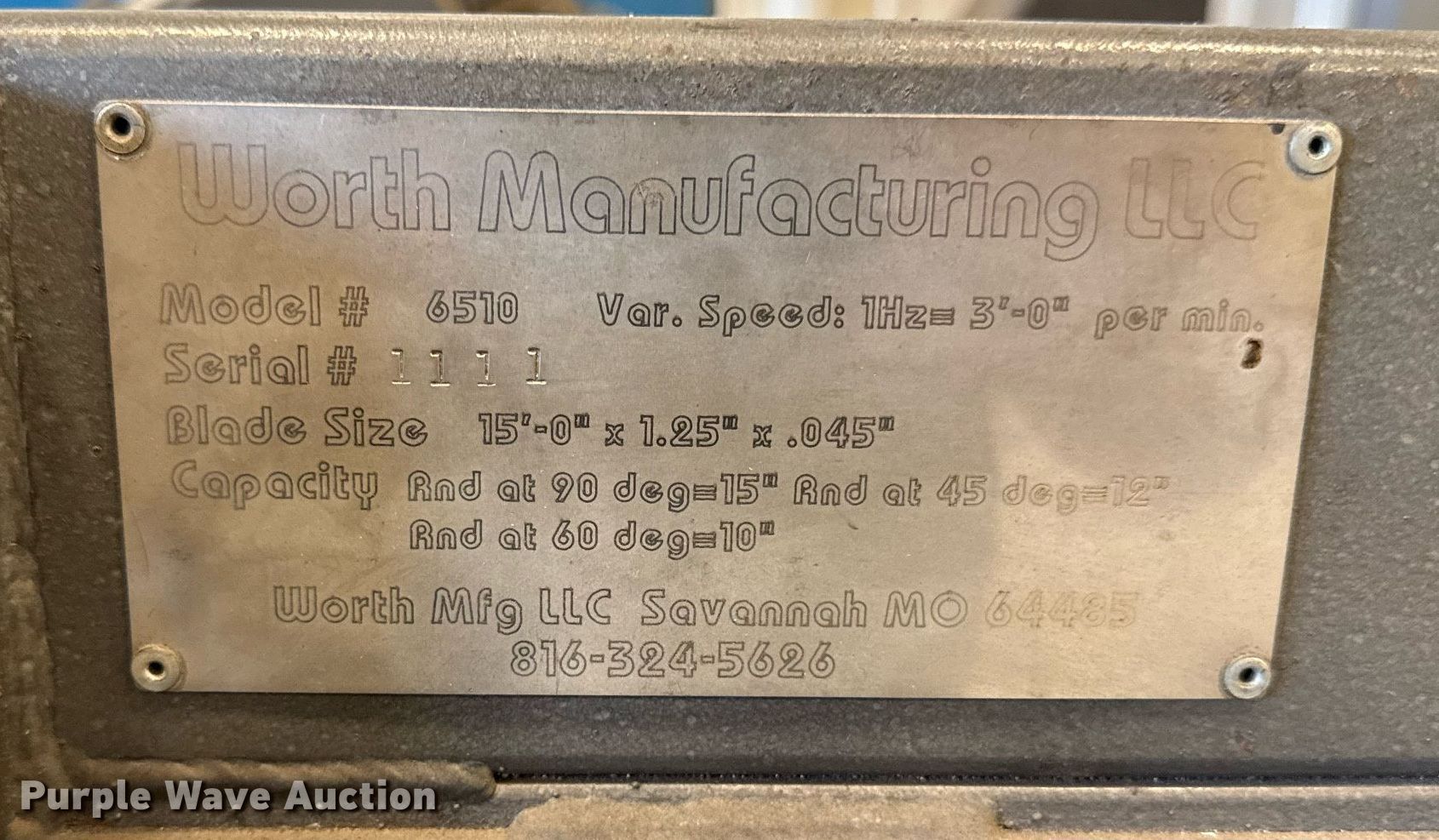Worth Manufacturing 6510 metal band saw | SOLD! June 04 Vehicles and Equipment Auction