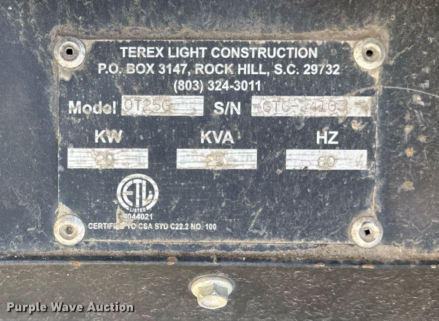 Purple Wave is selling a used Generator Set in Kansas. This item is a Terex T25G generator with the following: Hours: 5,415 on meter, Serial: GTG-24103