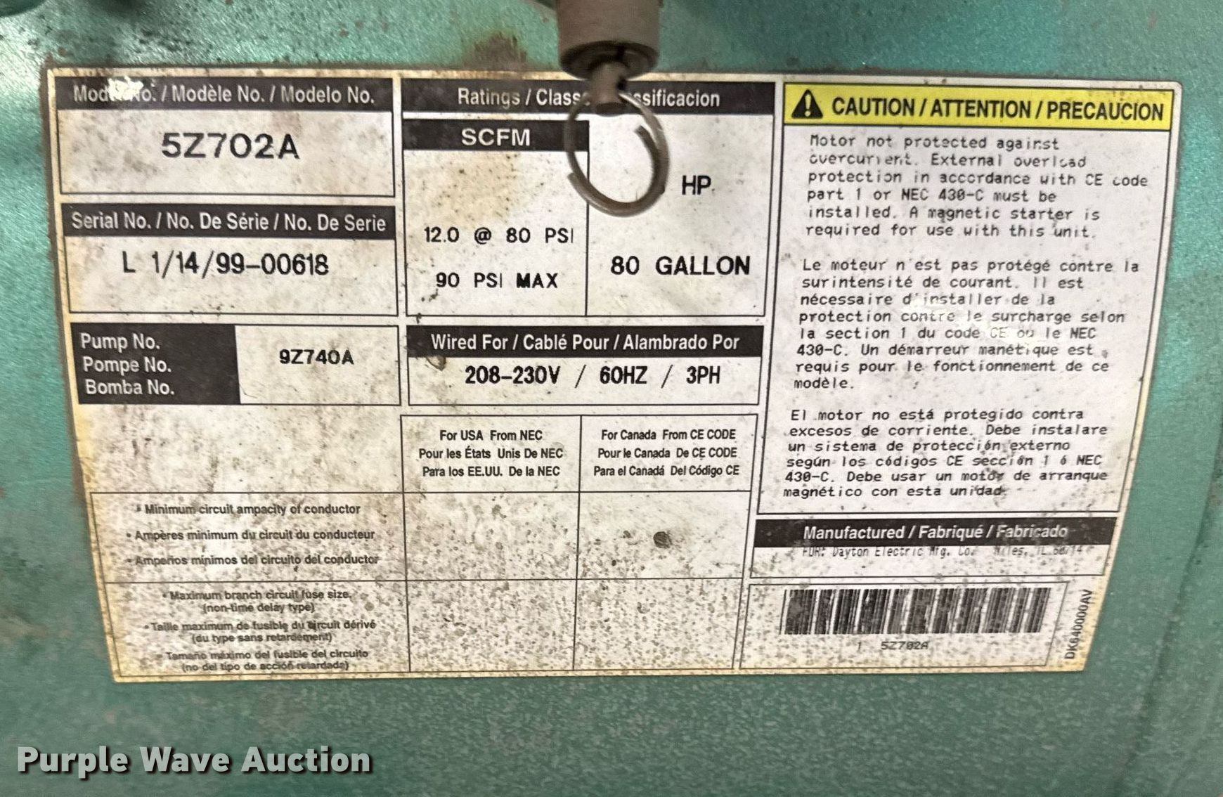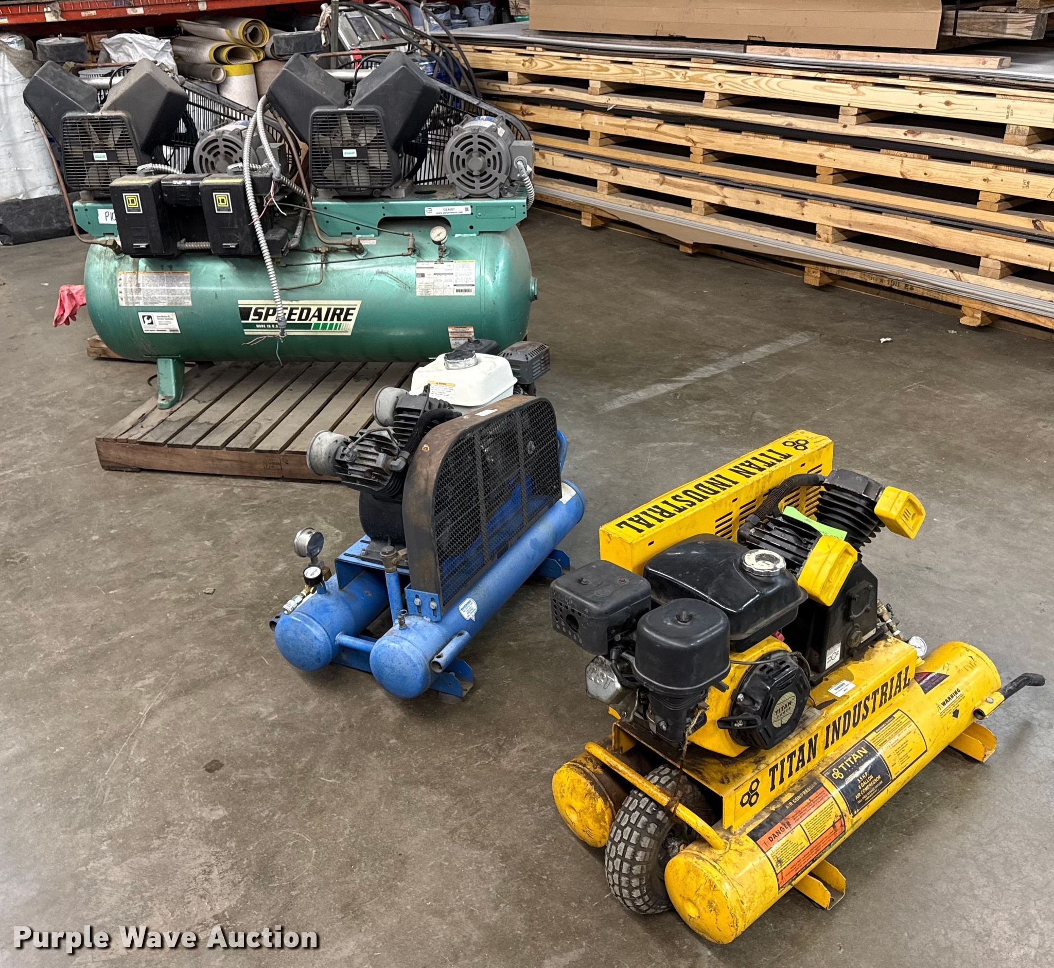 Purple Wave is selling a used Air Compressor in Kansas. This item is a (3) air compressors with the following: Titan, Puma, Speedaire, Phase: Three