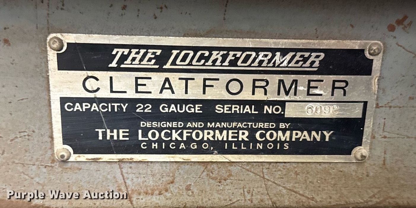 Purple Wave is selling a used Tools in Kansas. This item is a The Lockformer cleatformer with the following: Serial: 6098