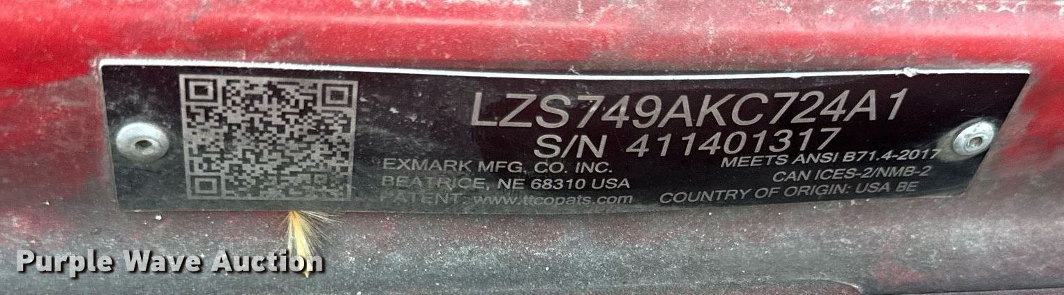 Purple Wave is selling a used Commercial Turf Mower in Kansas. This item is a Exmark Lazer Z ZTR lawn mower with the following: Hours: Unknown, Cutting width: 72", Serial: 411401317