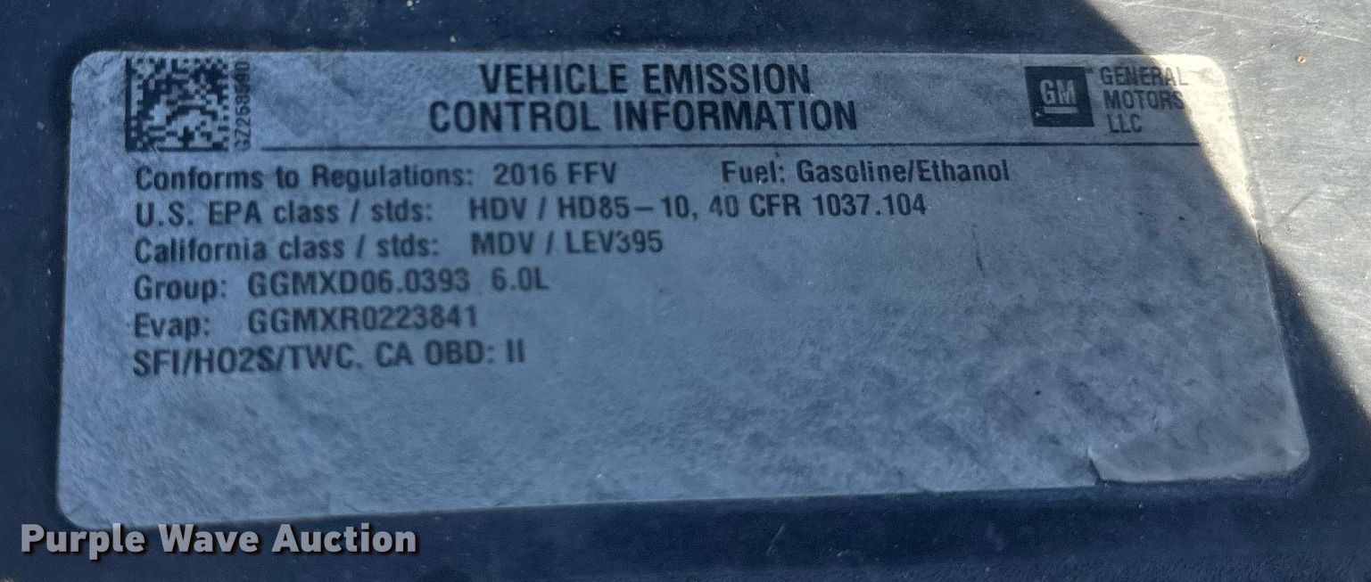 2016 Chevrolet Silverado 2500HD Double Cab pickup truck. Miles: 225,741 on odometer, VIN: 1GC2KUEG0GZ258590. Engine Displacement: 6.0L V8 OHV, Cylinders: 8, Fuel type: Gas. Transmission Automatic, Four wheel drive. Interior AC, Heat, Power windows, Power locks, Cruise control, Backup camera. Tires Size: 245/75R17. Notes Dash warning indicator: TPMS. Minnesota title. Title distribution may be delayed up to 14 days from verification of funds. Meyer Contracting Inc.. Maple Grove, MN 55369
