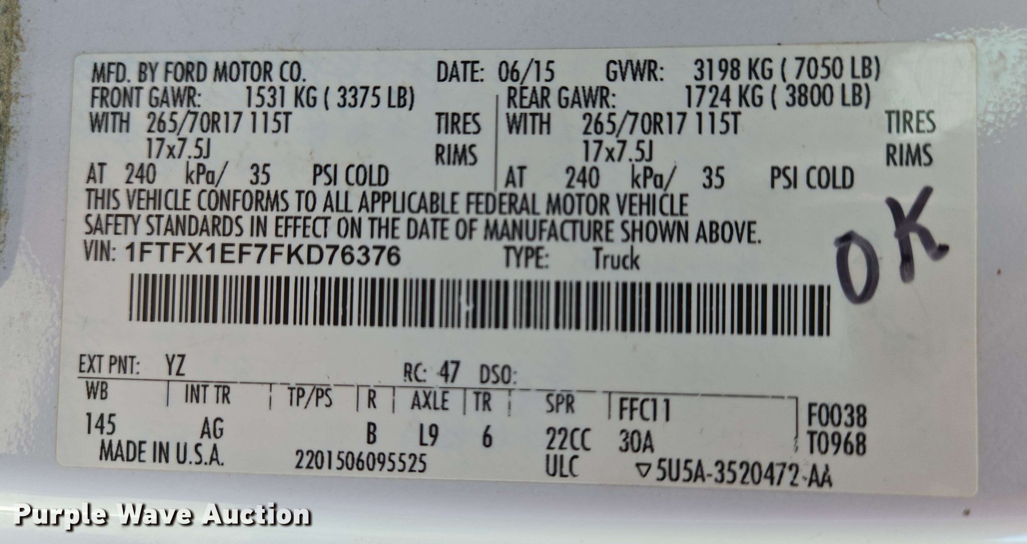 Purple Wave is selling a used 1/2 Ton Pickup or Van in Indiana. This item is a 2015 Ford F150 XL SuperCab pickup truck with the following: Miles: 320,952 on odometer, VIN: 1FTFX1EF7FKD76376