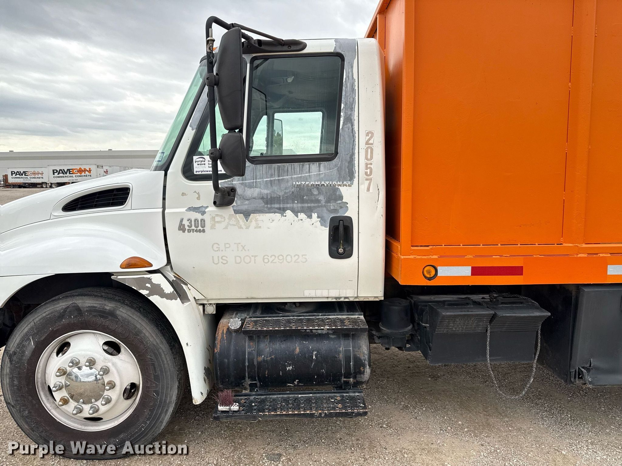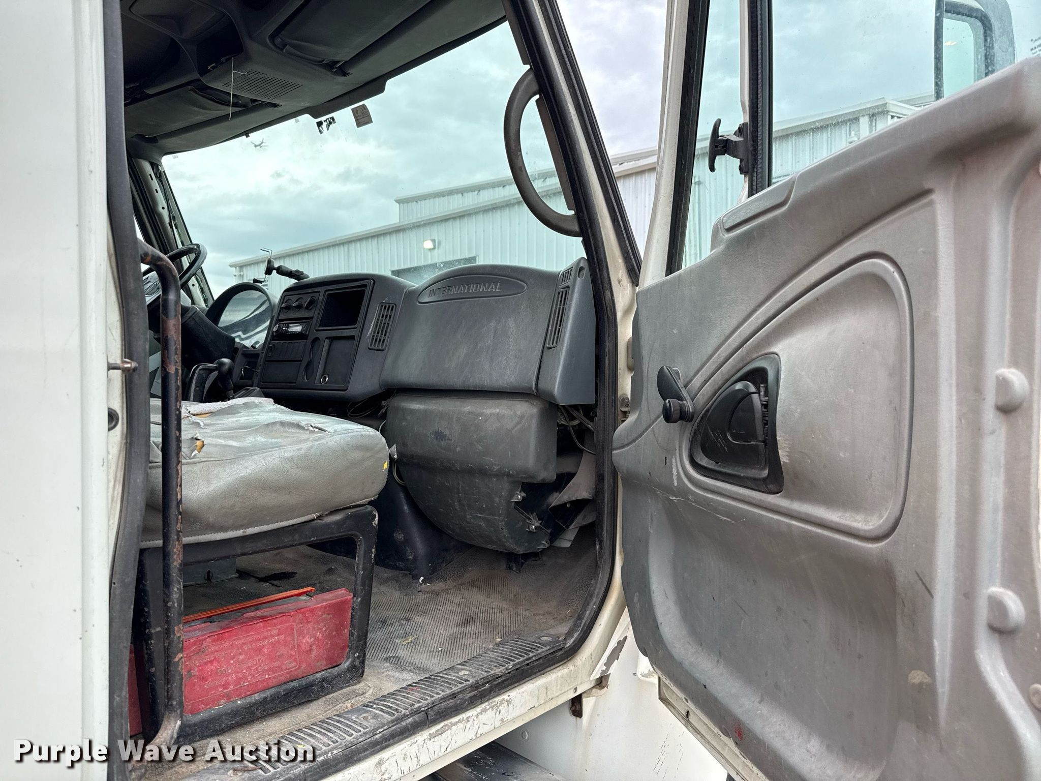 2002 International 4300 utility / service truck. Miles: 442,747 on odometer, Hours: 22,322 on meter, VIN: 1HTMMAAM12H512967, Unit #: 2057. Engine International MaxxForce DT466, Displacement: 7.6L, Cylinders: 6, Fuel type: Diesel. Transmission Automatic. Chassis Axles: Single, Suspension: Air, Brakes: Hydraulic. Interior AC, Heat, Heated mirrors, Cruise control. Features Bed 18' 4" L x 92" W x 60" H, Floor: Steel, End gate lift Waltco 390, Capacity: 1,250 lbs. Tires Front: 295/75R22.5, Rear: 11R22.5. Notes Possible AC issues, Dash warning indicator: Check electrical system, Liftgate power fold issues. Texas title. Title distribution may be delayed up to 14 days from verification of funds. Grand Prairie, TX 75050