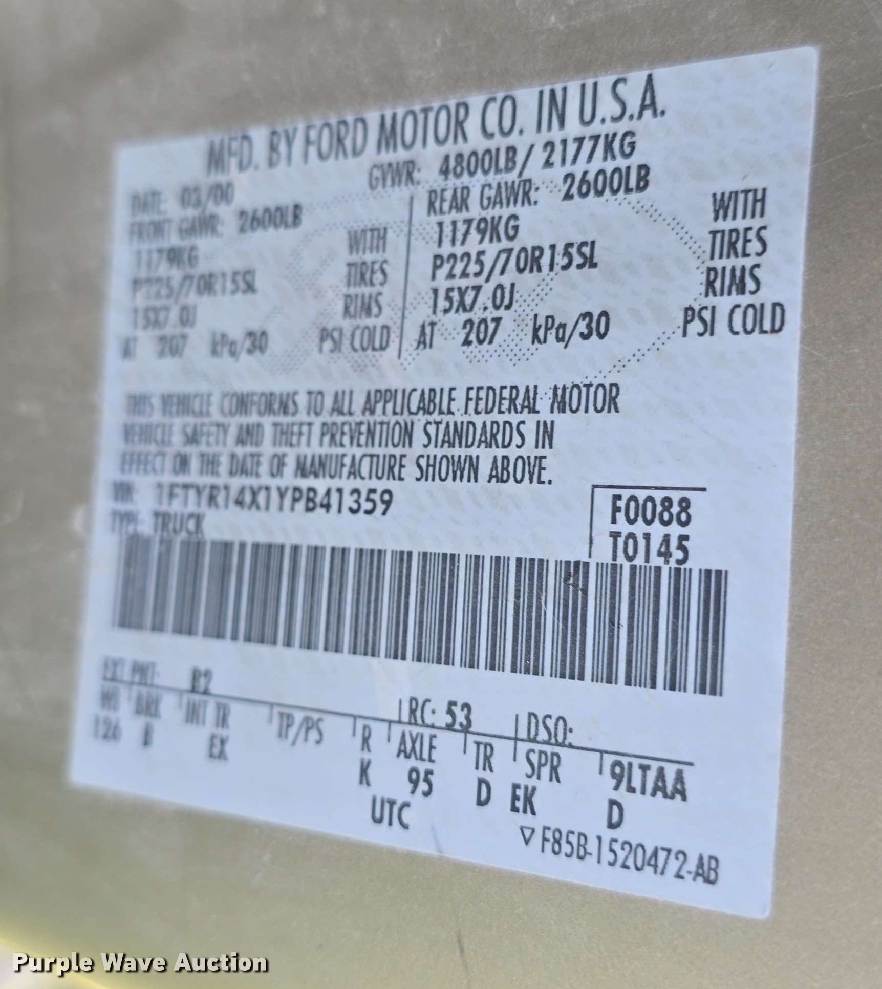 - VIN: 1FTYR14X1YPB41359