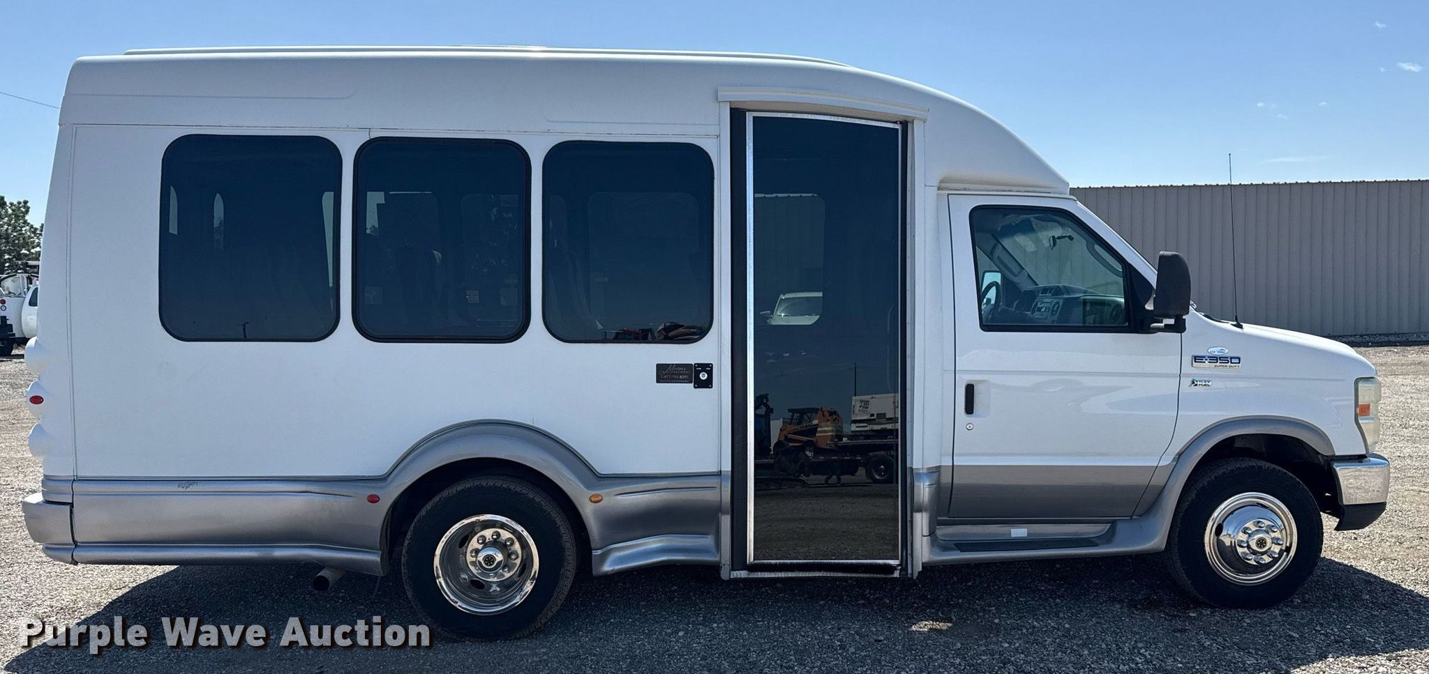 This 2009 Ford E350 Super Duty shuttle bus will sell to the highest bidder regardless of price.