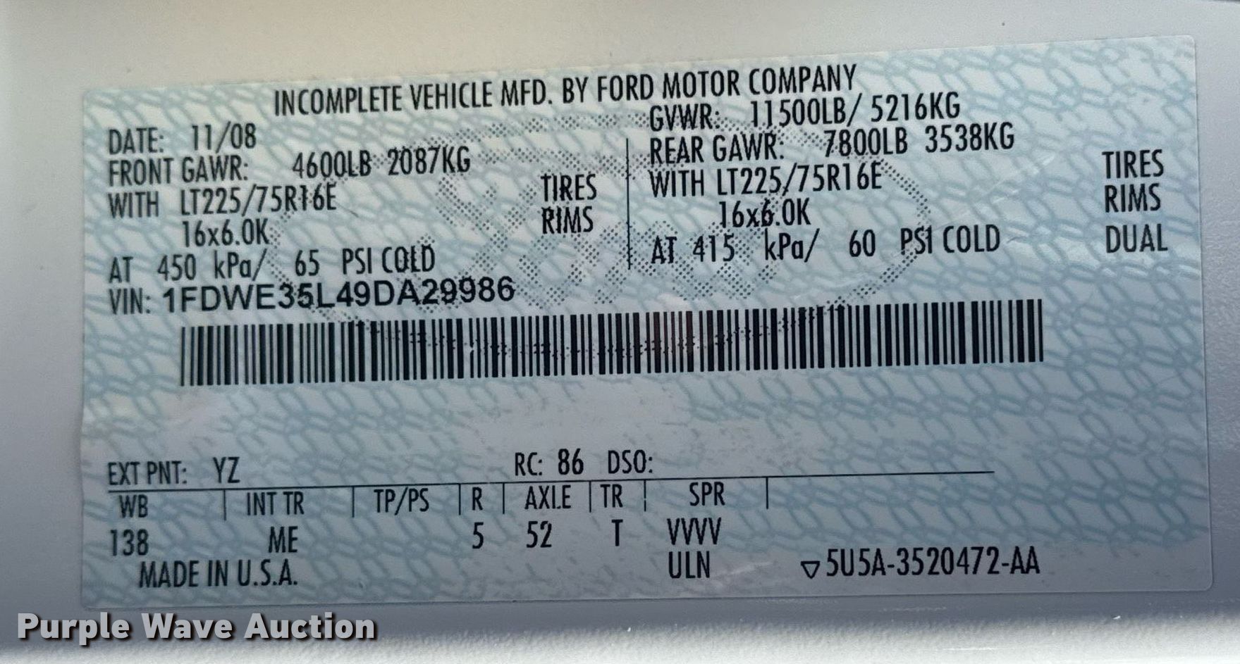 - VIN: 1FDWE35L49DA29986