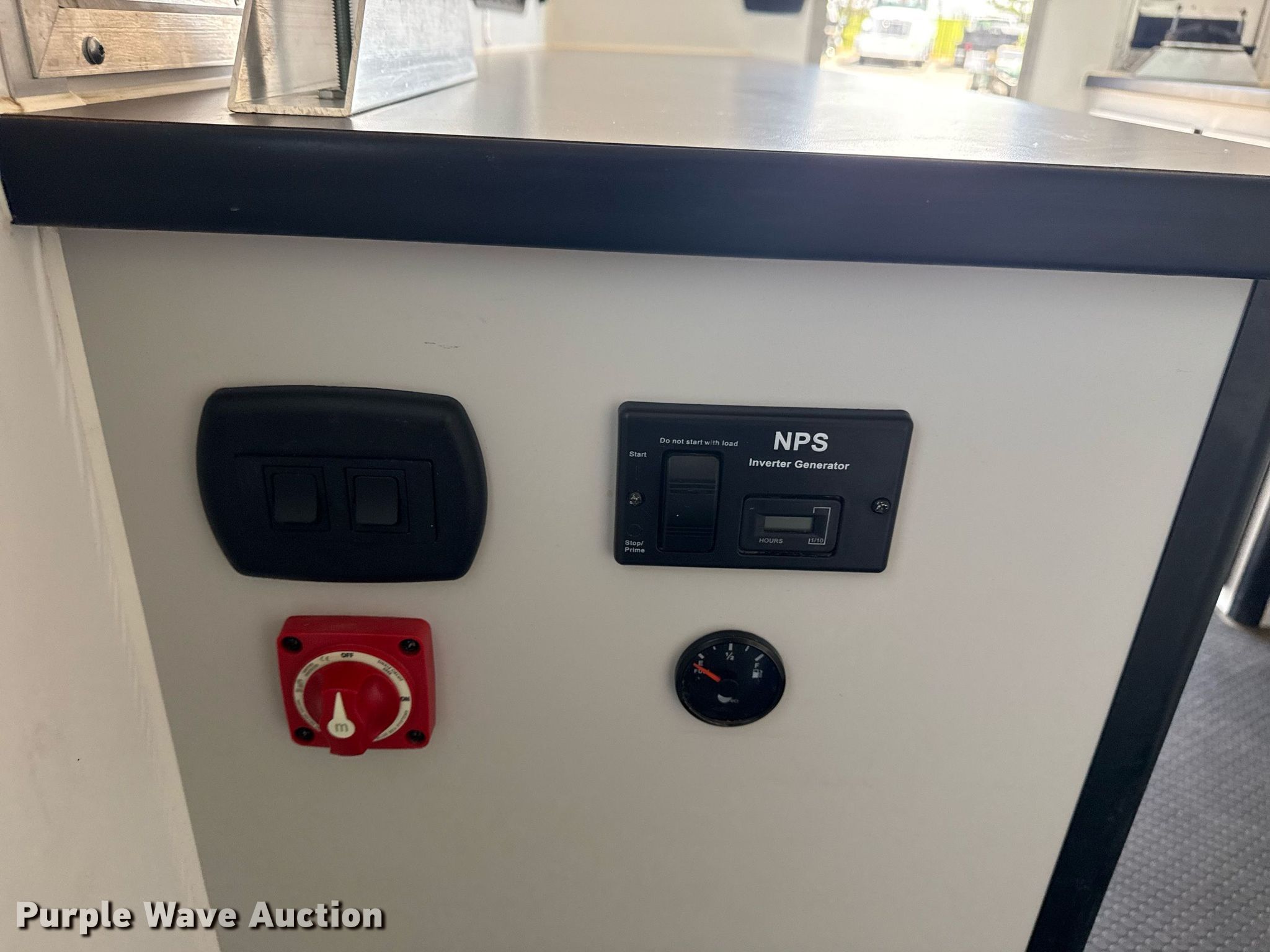 2022 InTech fiber optic splicing trailer. VIN: 7H0TF1229NN012249. Dimensions Overall: 16' L x 92" W, Body: 12' L x 74" W, Rear door / ramp Width: 24". Features Deck type: Steel, AC, Heat, Generator Inverter Technology NOS5500, Hours: 828 on meter, Fuel type: Gas, Phase: Single, Volts: 120, Hz: 60. Chassis Hitch: Pintle, Landing gear: Single, Suspension: Spring, Brakes: Electric, Axles: Tandem. Tires Steel wheels, Size: ST205/75R15. Oklahoma title. Seller is an Oklahoma licensed motor vehicle dealer. Title will be assigned and distributed by the dealer. Please contact the seller for distribution questions. Title distribution may be delayed up to 30 days from verification of funds. 15107 North 137th East Avenue. Collinsville, OK 74021