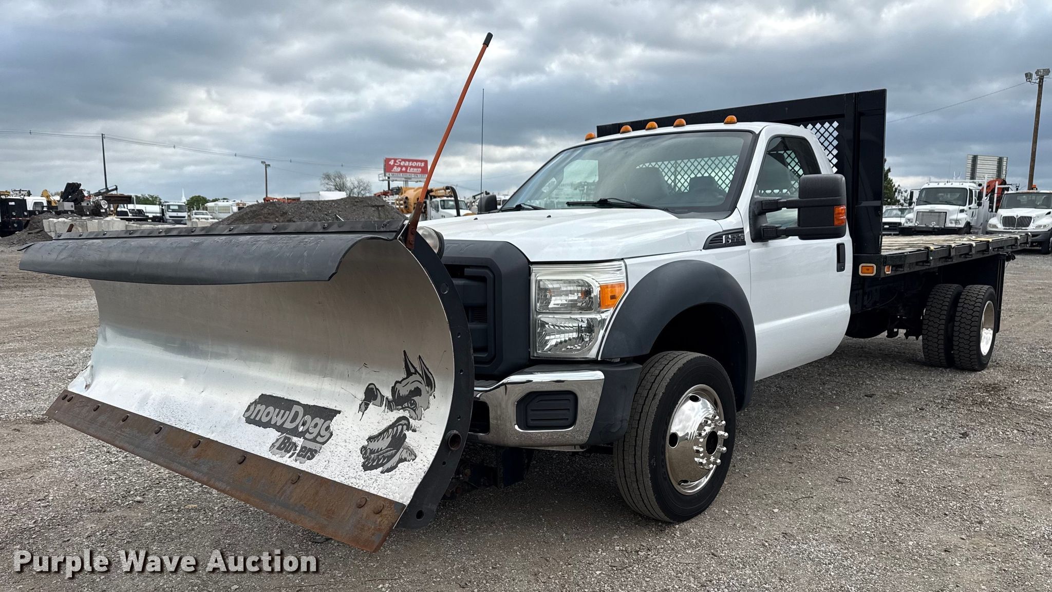 2013 Ford F550 flatbed truck. Miles: 180,968 on odometer, VIN: 1FDUF5HY8DEB89993. Engine Displacement: 6.8L, Cylinders: 10, Fuel type: Gas. Transmission Automatic. Chassis Four wheel drive, Axles: Single, Suspension: Spring, Brakes: Hydraulic. Interior AC, Heat, Heated mirrors, Power windows, Power locks, Cruise control, Auxiliary controls, Brake controller. Features Flatbed Knapheide PHJJ-163B, 16' L x 90" W, Snow plow Buyers SnowDogg EX85, Width: 102". Tires Size: 225/70R19.5. Oklahoma title. Seller is an Oklahoma licensed motor vehicle dealer. Title will be assigned and distributed by the dealer. Please contact the seller for distribution questions. Title distribution may be delayed up to 30 days from verification of funds. 15107 North 137th East Avenue. Collinsville, OK 74021