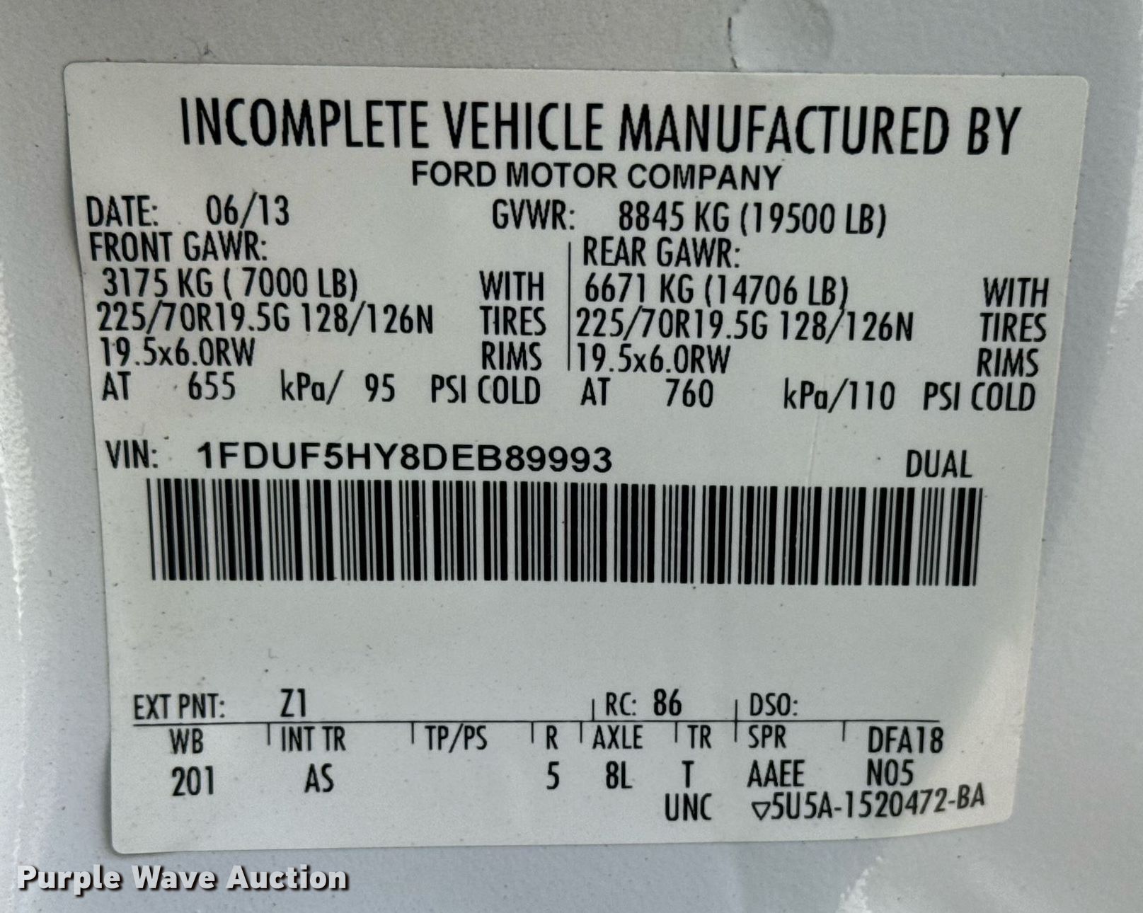 - VIN: 1FDUF5HY8DEB89993