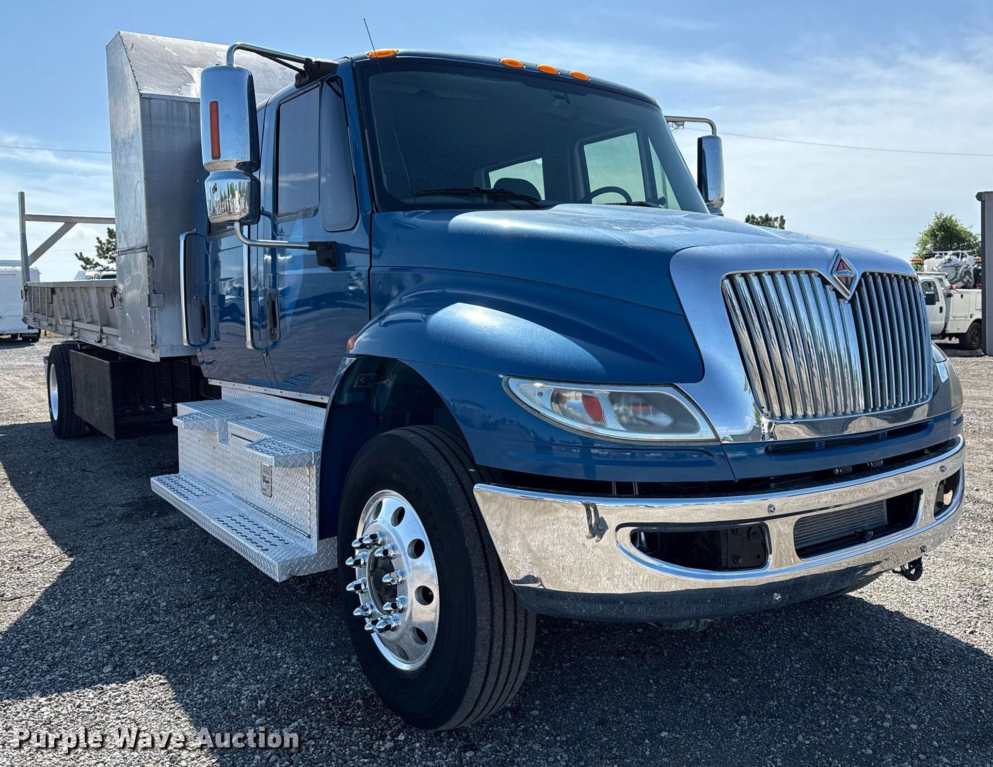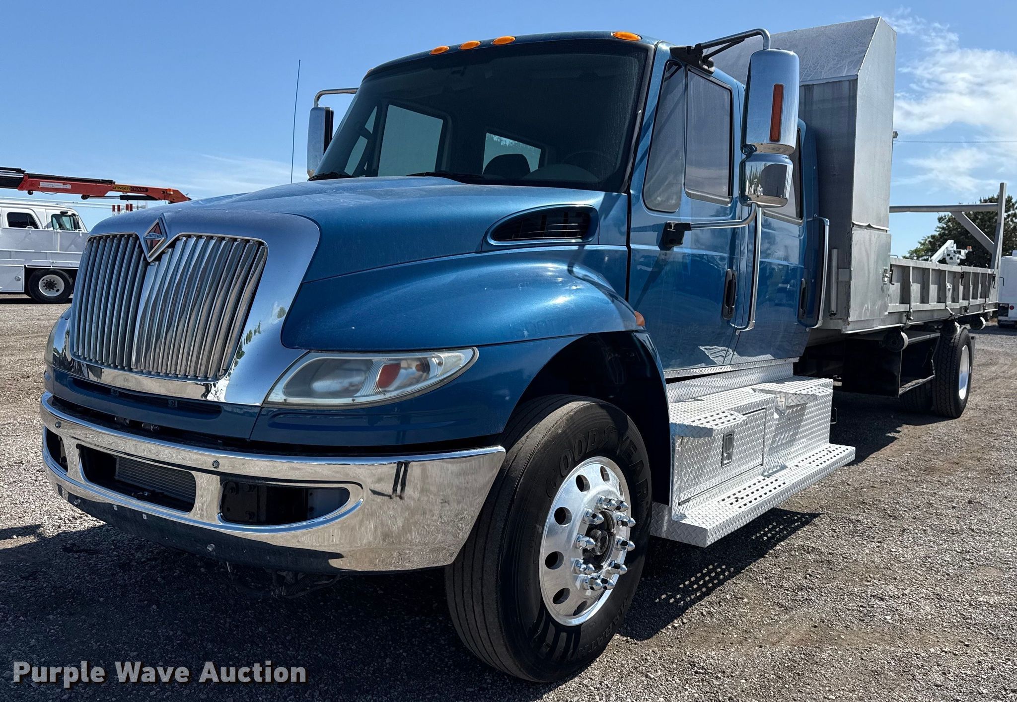 2013 International 4400 Crew Cab dump flatbed truck. Miles: 91,150 on odometer, VIN: 1HTMRAAL2DH114064. Engine Displacement: 7.6L, Cylinders: 6, Fuel type: Diesel, Engine brake. Transmission Automatic. Chassis Axles: Single, Suspension: Air, Brakes: Air. Interior AC, Heat, Power windows, Power locks, Cruise control, Brake controller. Features Dump flatbed MC Ventures Truck Bodies, 22' L x 93" W, Ram: Single, Removable sides. Tires Size: 295/75R22.5. Oklahoma title. Seller is an Oklahoma licensed motor vehicle dealer. Title will be assigned and distributed by the dealer. Please contact the seller for distribution questions. Title distribution may be delayed up to 30 days from verification of funds. 15107 North 137th East Avenue. Collinsville, OK 74021