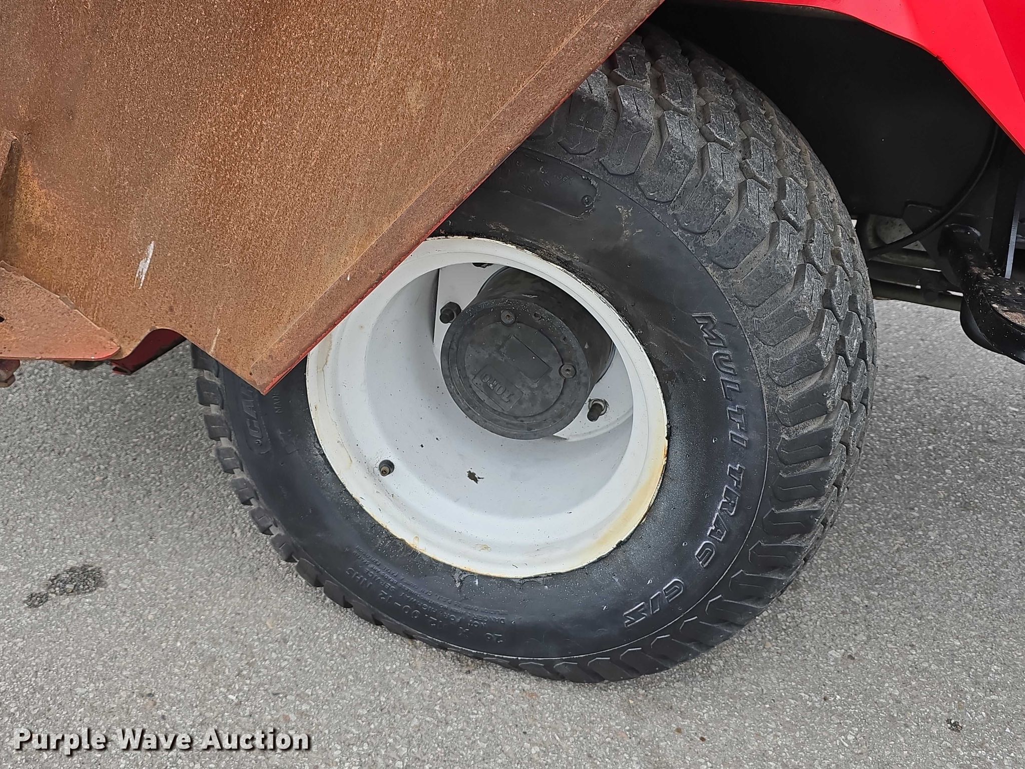 Toro Groundsmaster 4100D lawn mower. Hours: 2,421 on meter, Cutting width: 128", Serial: 250000329. Engine Kubota V2003-T-ES, Displacement: 2.0L, Cylinders: 4, Fuel type: Diesel, kW: 44. Transmission Hydrostatic. Features Hydraulic fold decks, Hydraulic front deck lift. Tires Front: 26x12.00-12 NHS, Rear: 20x10.00-10 NHS. Jordan Machinery/ S & N Auto Sales. Waterloo, NE 68069