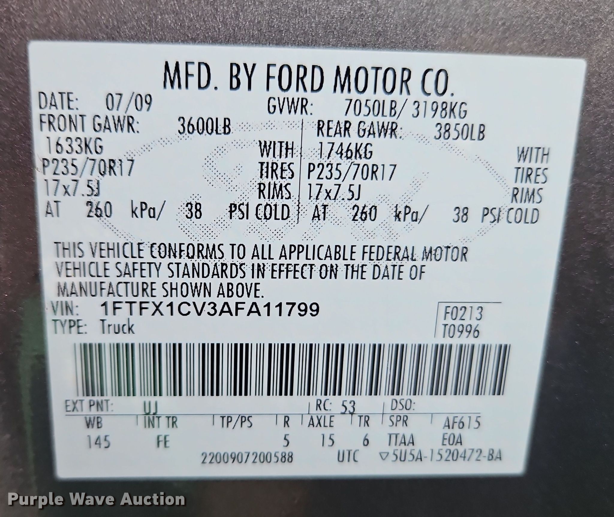 - VIN: 1FTFX1CV3AFA11799