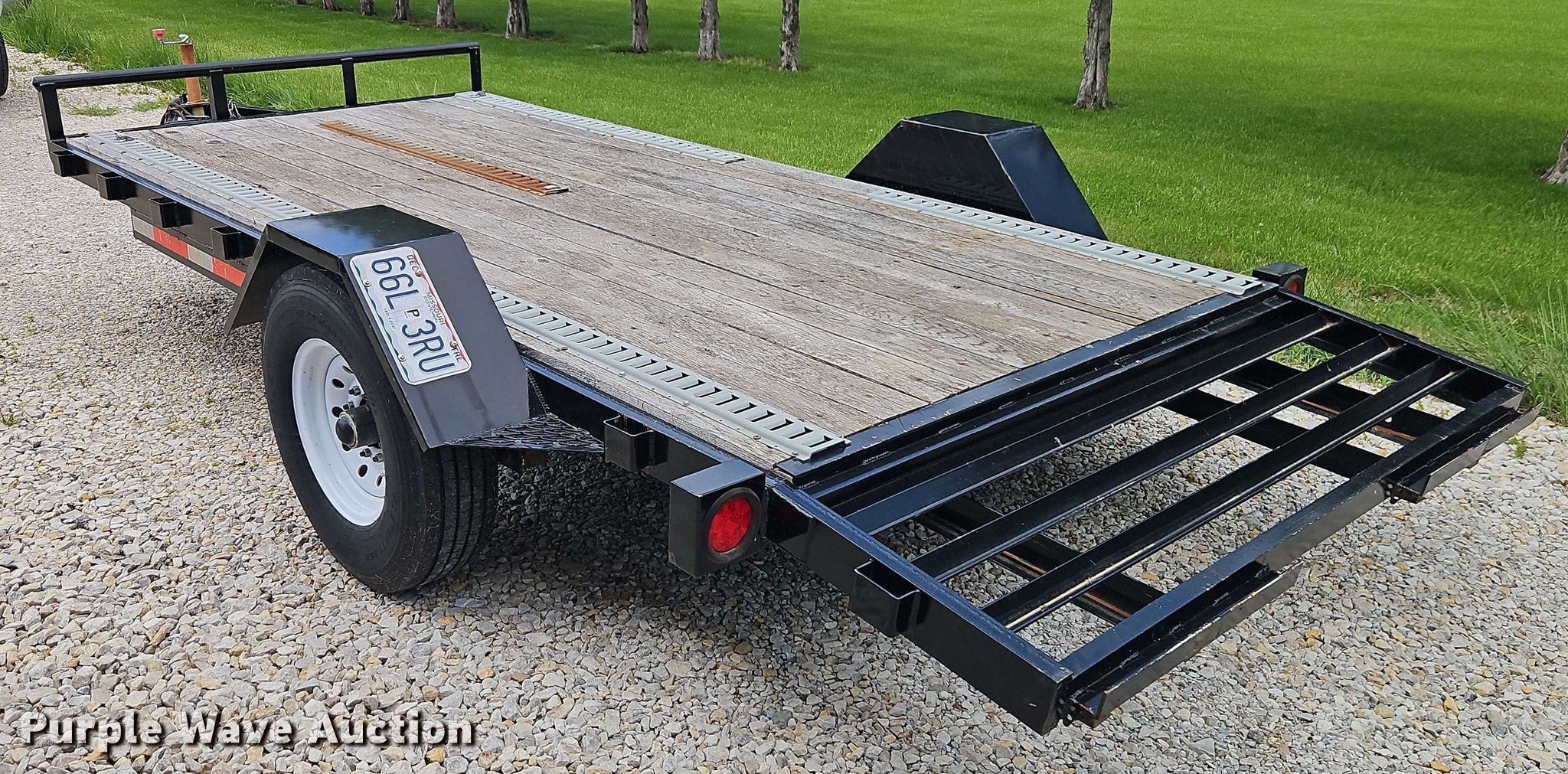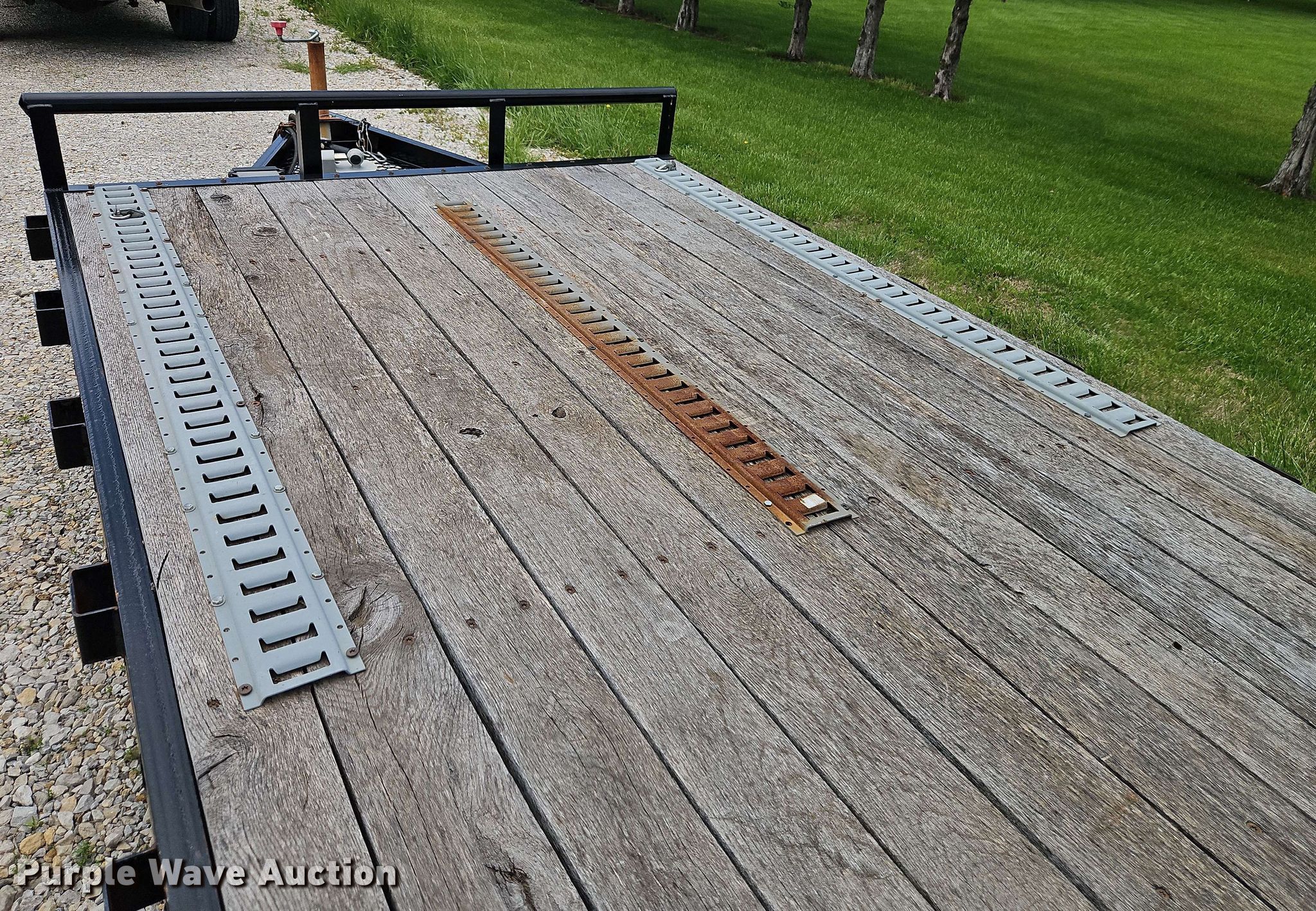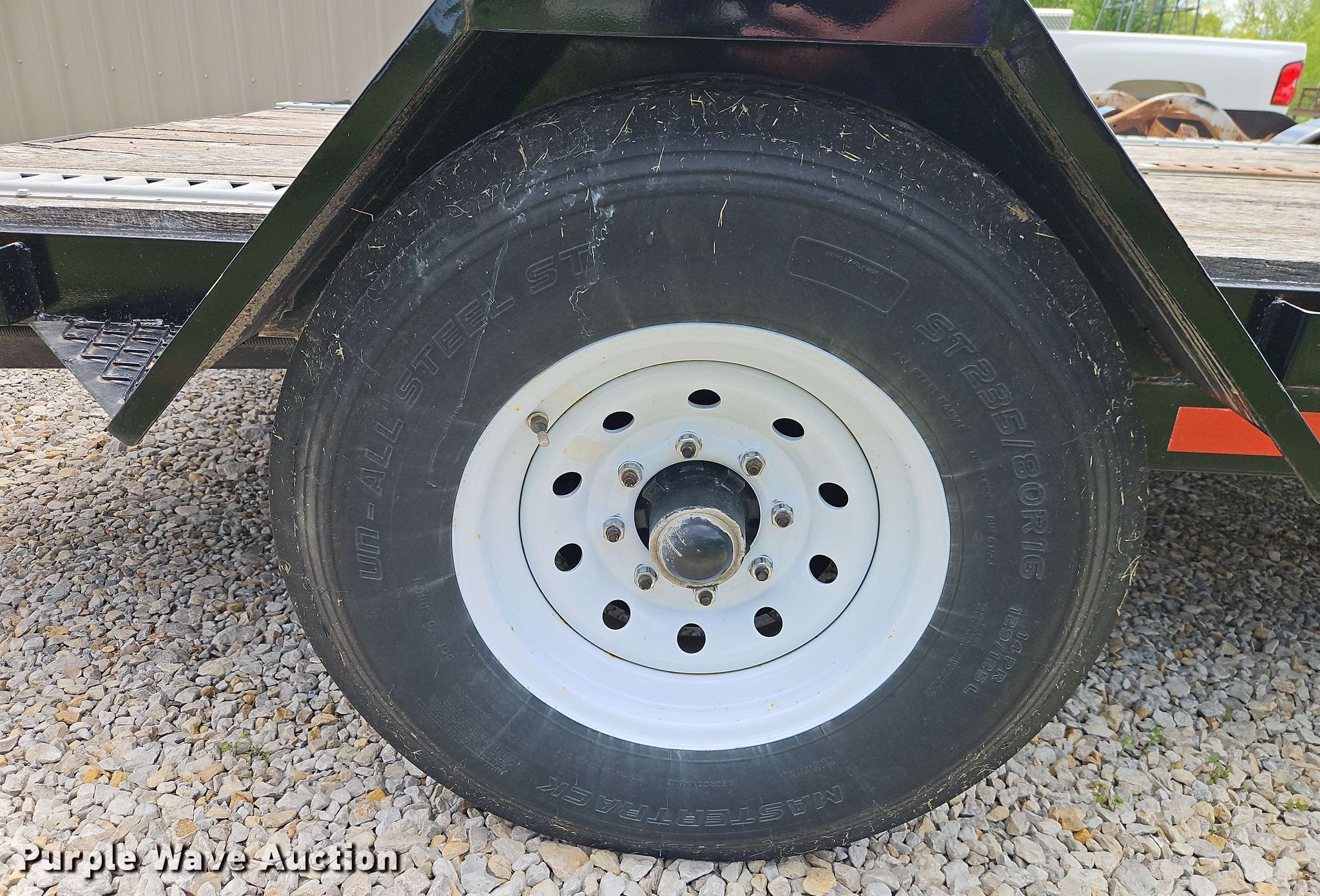 2021 Shop Built utility trailer. VIN: DRXMVB000367205MO. Dimensions Overall: 19' L x 95" W, Deck: 12' 6" L x 73" W, Deck height: 24", Tail length: 24", Ramps: Manual Length: 4'. Features Deck type: Wood. Chassis Ball hitch: 2 5/16", Landing gear: Single, Suspension: Spring, Brakes: Electric. Tires Steel wheels, Size: 235/80R16. Missouri title. Title distribution may be delayed up to 30 days from verification of funds. Louisburg, KS 66053