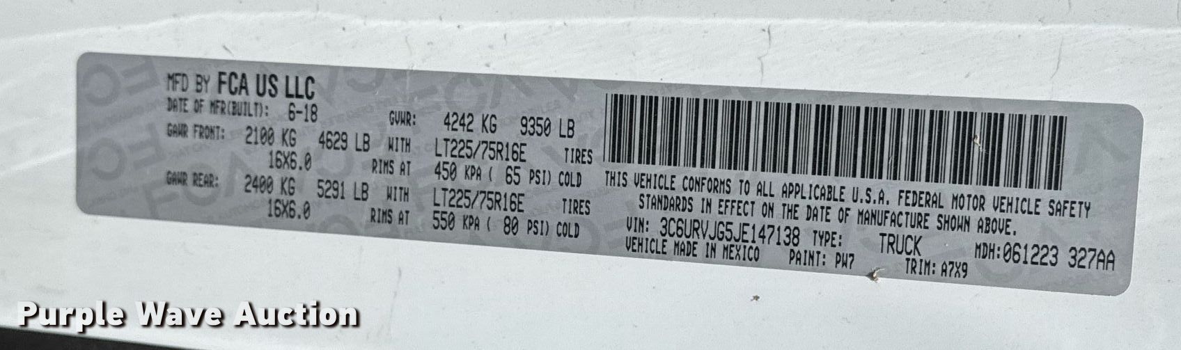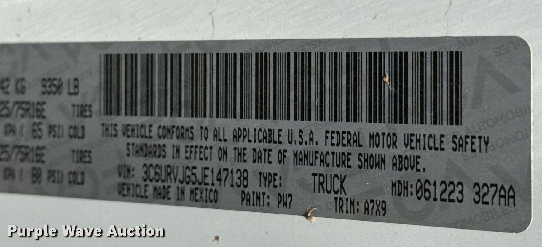• VIN: 3C6URVJG5JE147138