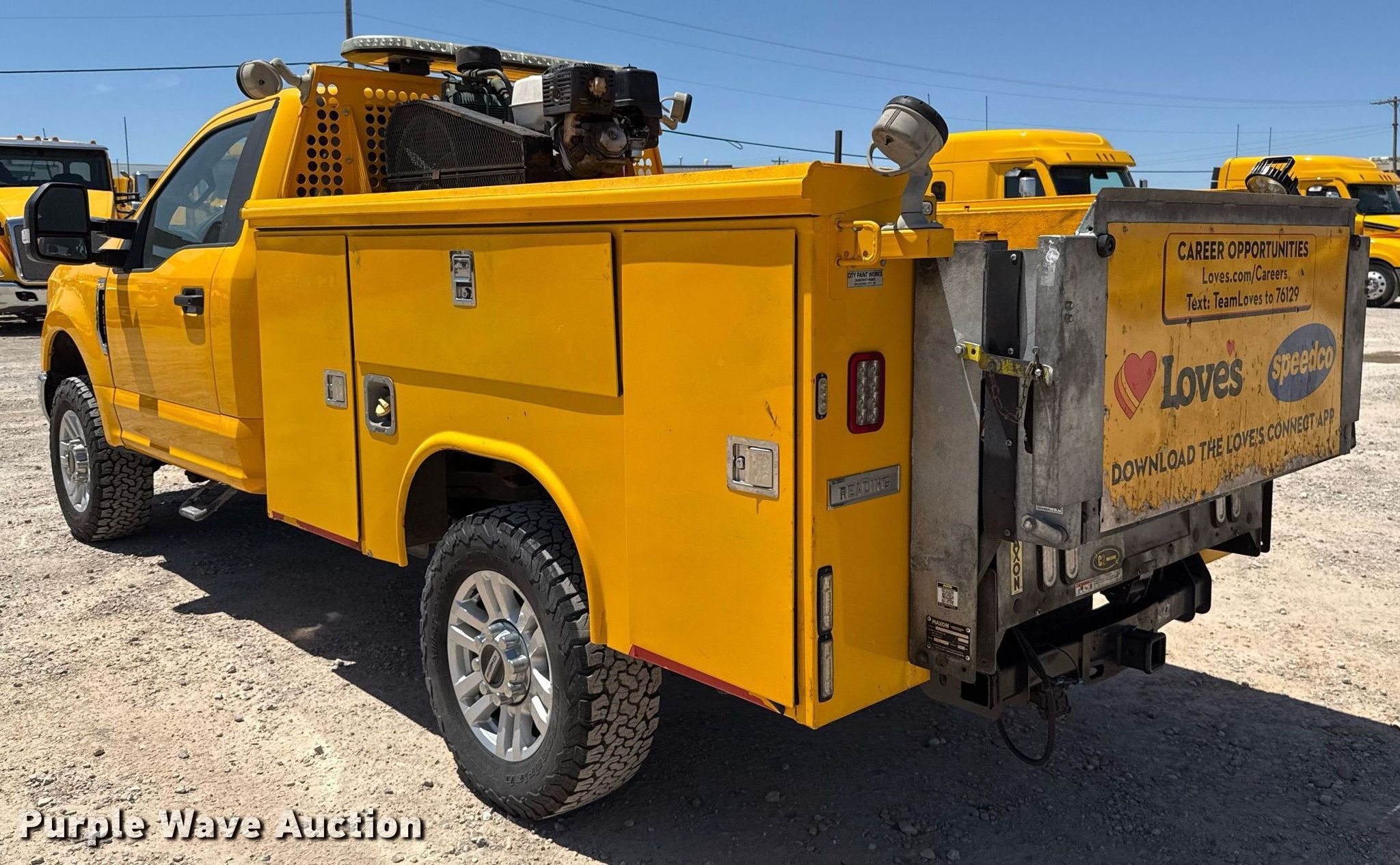 2019 Ford F350 Super Duty XL utility bed pickup truck. Miles: 71,918 on odometer, VIN: 1FDRF3B66KEG25481, Unit #: G25481. Engine Displacement: 6.2L V8 OHV, Cylinders: 8, Fuel type: Gas. Transmission Automatic, Four wheel drive. Interior AC, Heat, Heated mirrors, Power windows, Power locks, Cruise control, Backup camera, Auxiliary controls, Brake controller. Features Utility bed Reading Classic II, 8' 2" L x 80" W, Air compressor, Maxon end gate lift Capacity: 1,300 lbs, (2) hose reels. Tires Size: LT275/65R18. Notes Dash warning indicator: Check engine, Windshield chipped or cracked, Driver side rear utility door issues, will not open. Oklahoma title. Title distribution may be delayed up to 30 days from verification of funds. Gemini Motor Transport. Oklahoma City, OK 73127