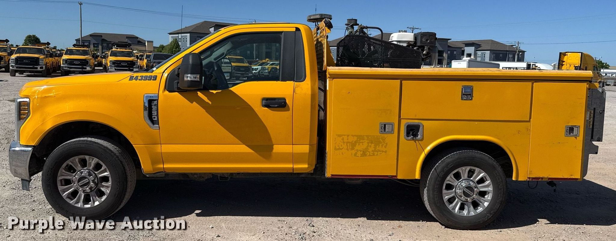 This 2018 Ford F350 Super Duty XL utility bed pickup truck will sell to the highest bidder regardless of price.