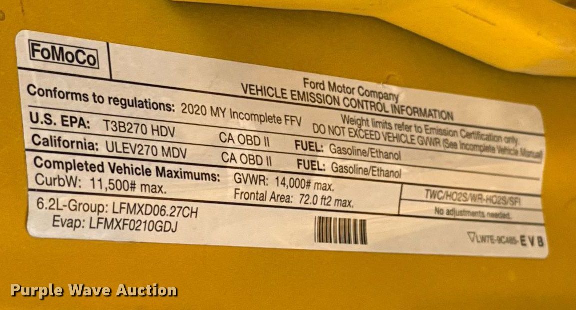 2020 Ford F350 Super Duty utility bed pickup truck. Miles: 93,559 on odometer, VIN: 1FDRF3E66LEE34530, Unit #: E34530. Engine Displacement: 6.2L V8 OHV, Cylinders: 8, Fuel type: Gas. Transmission Automatic. Interior AC, Heat, Heated mirrors, Power windows, Power locks, Cruise control, Backup camera, Auxiliary controls, Brake controller. Features Utility bed CM 110-SB, 9' 2" L x 78" W, Air compressor, Maxon end gate lift Capacity: 1,300 lbs, (2) hose reels. Tires Size: LT275/65R18. Notes Dash warning indicator: TPMS, Non-operational backup camera. Oklahoma title. Title distribution may be delayed up to 30 days from verification of funds. Gemini Motor Transport. Oklahoma City, OK 73127