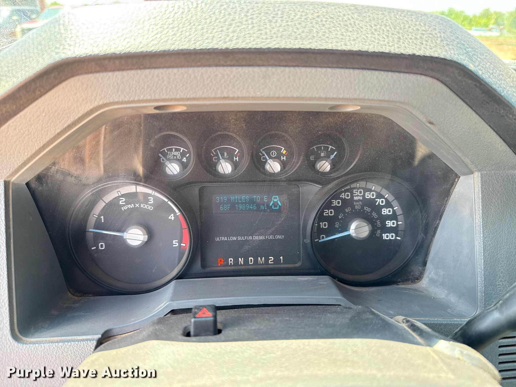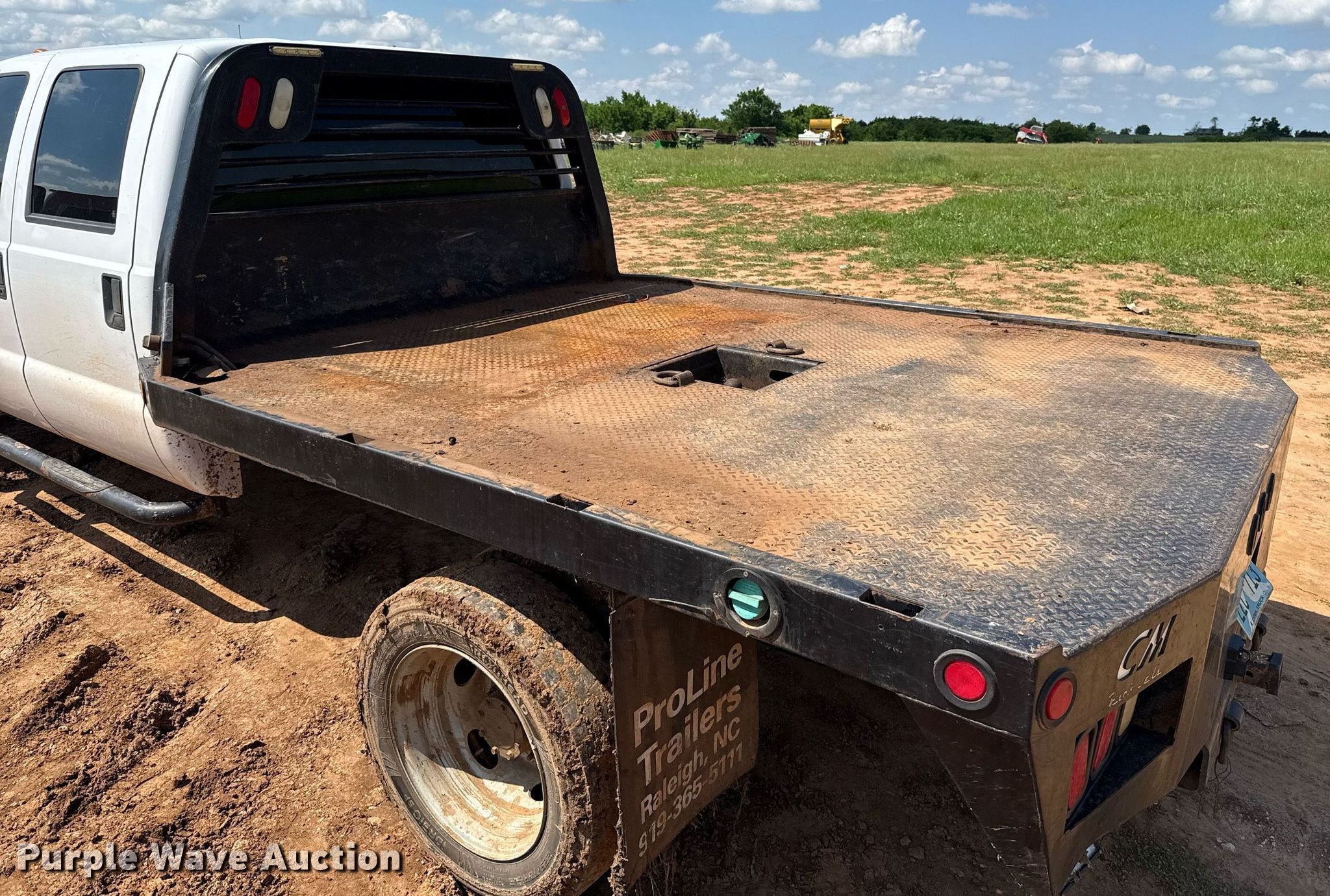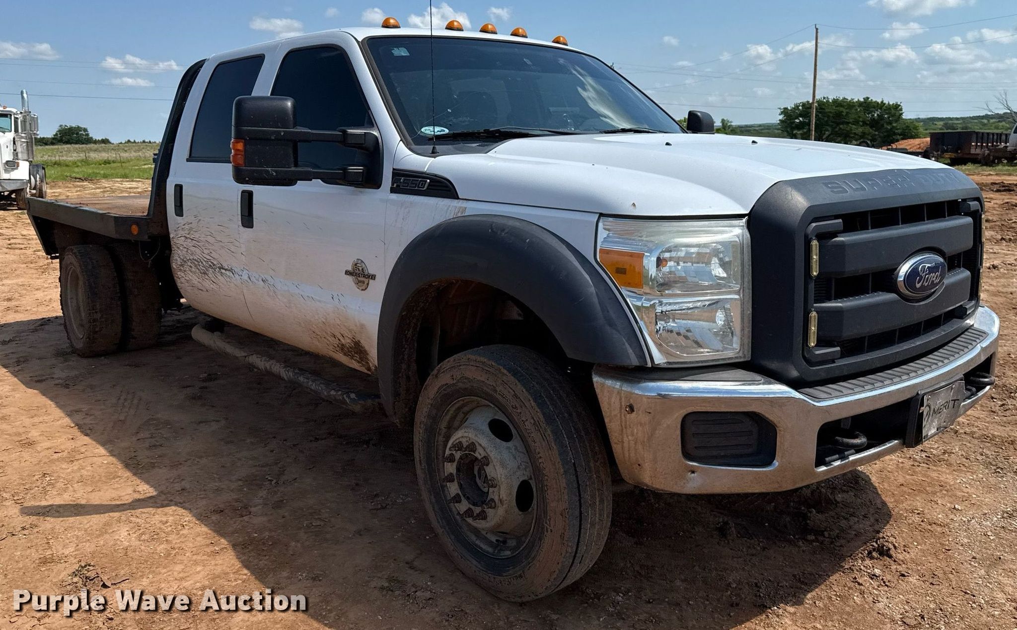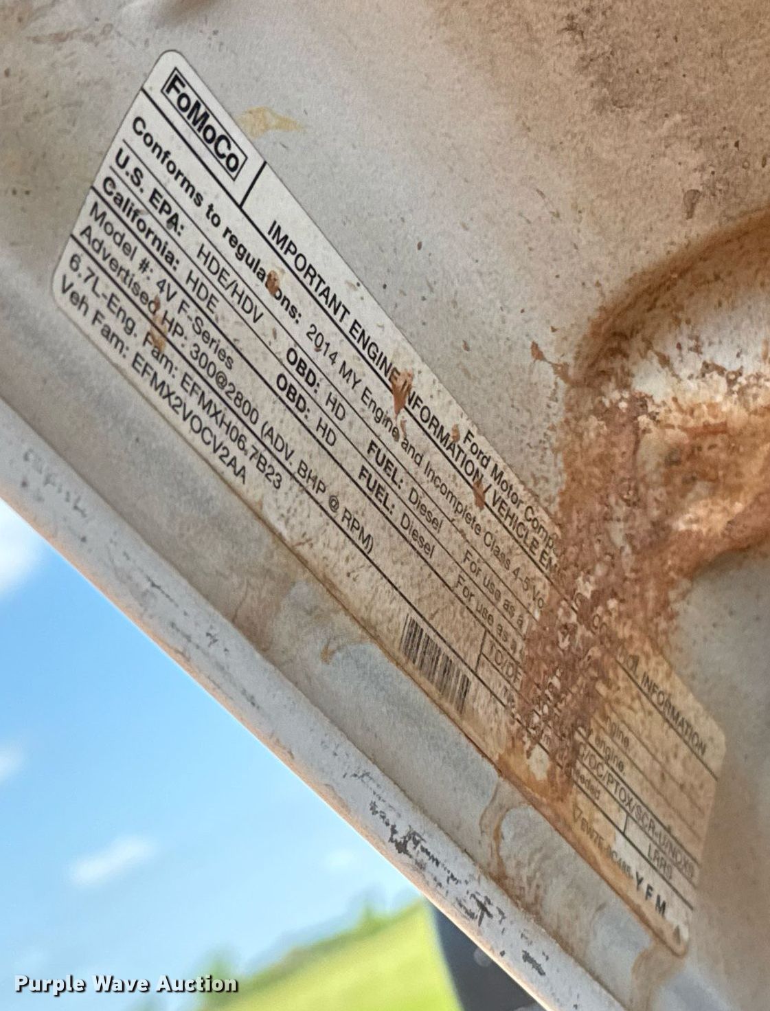 2014 Ford F550 Crew Cab flatbed truck. Miles: 198,946 on odometer, VIN: 1FD0W5HT2EEB77522. Engine Displacement: 6.7L, Cylinders: 8, Fuel type: Diesel. Transmission Automatic. Chassis Four wheel drive, Axles: Single, Suspension: Spring, Brakes: Hydraulic. Interior AC, Heat, Heated mirrors, Power windows, Power locks, Cruise control. Features Flatbed CM, 9' L x 94" W, Gooseneck. Tires Size: 225/70R19.5. Notes DEF deleted, Windshield chipped or cracked. Oklahoma title. Title distribution may be delayed up to 14 days from verification of funds. Pintail Oilfield Services. 5700 East 750 Road. Guthrie, OK 73044