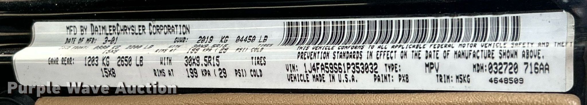 - VIN: 1J4FA59S61P353032