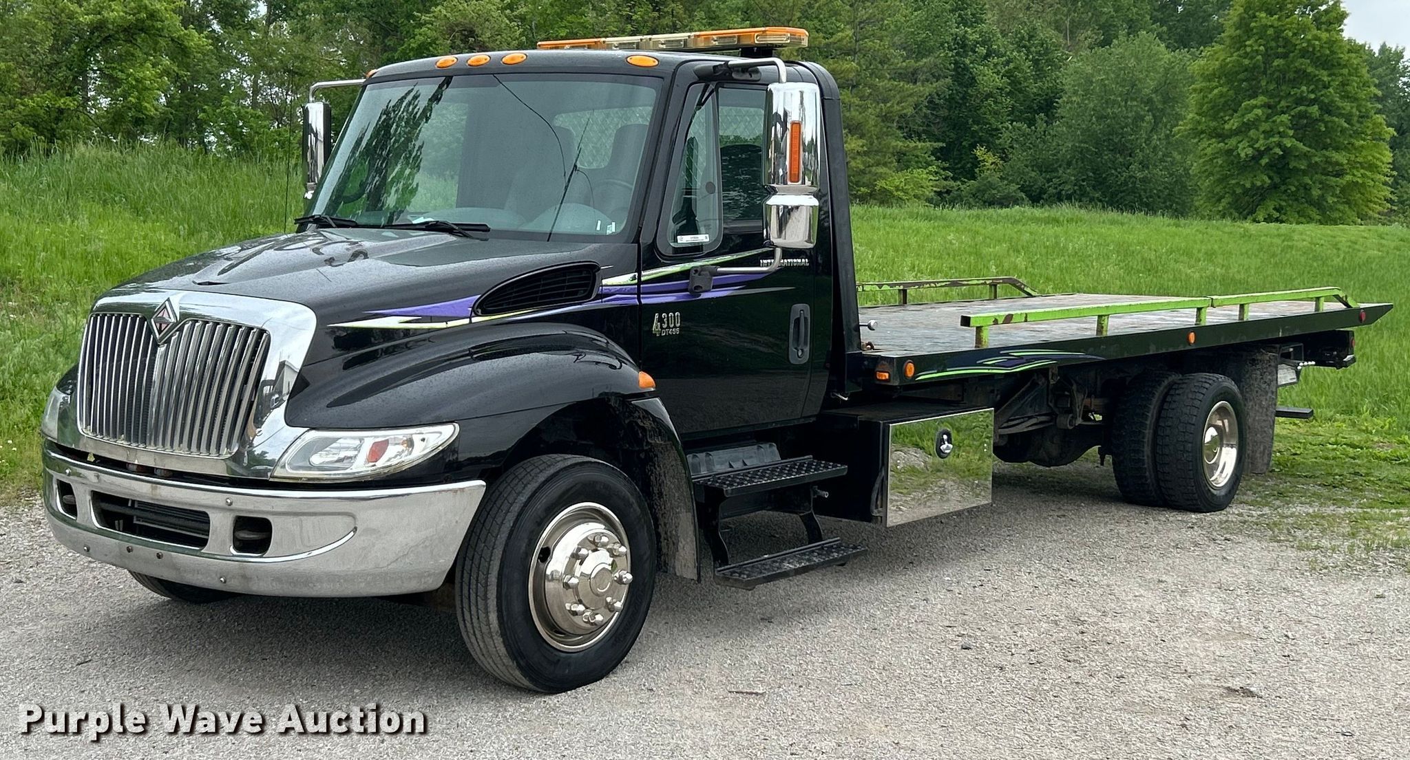 This 2005 International 4300 rollback truck will sell to the highest bidder regardless of price.