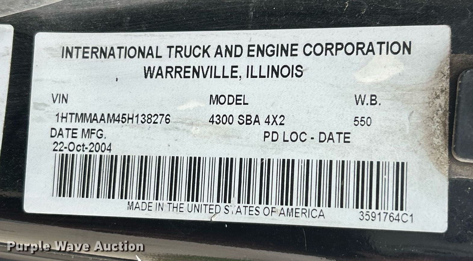 Take a look at this used 2005 International 4300 rollback truck being sold on June 4th, 2025 in the SOLD! June 04 Vehicles and Equipment Auction made by International. Take a look at all of the item information below or take a look at similar auctions for Trucks.
