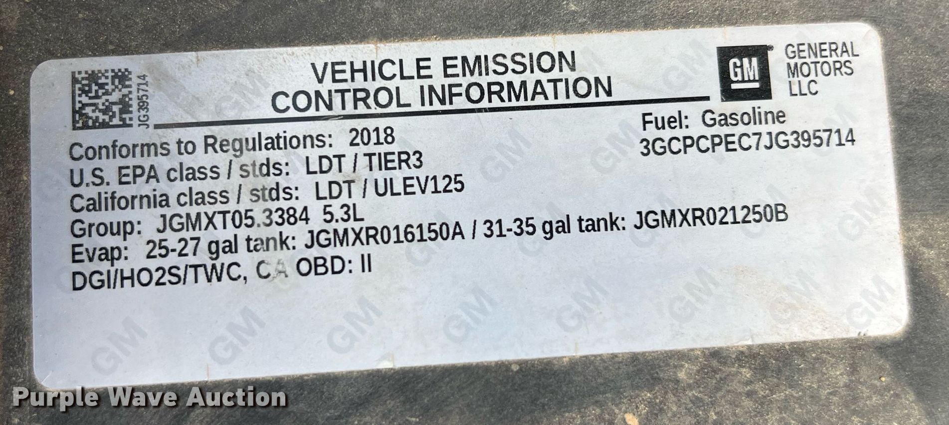 - VIN: 3GCPCPEC7JG395714