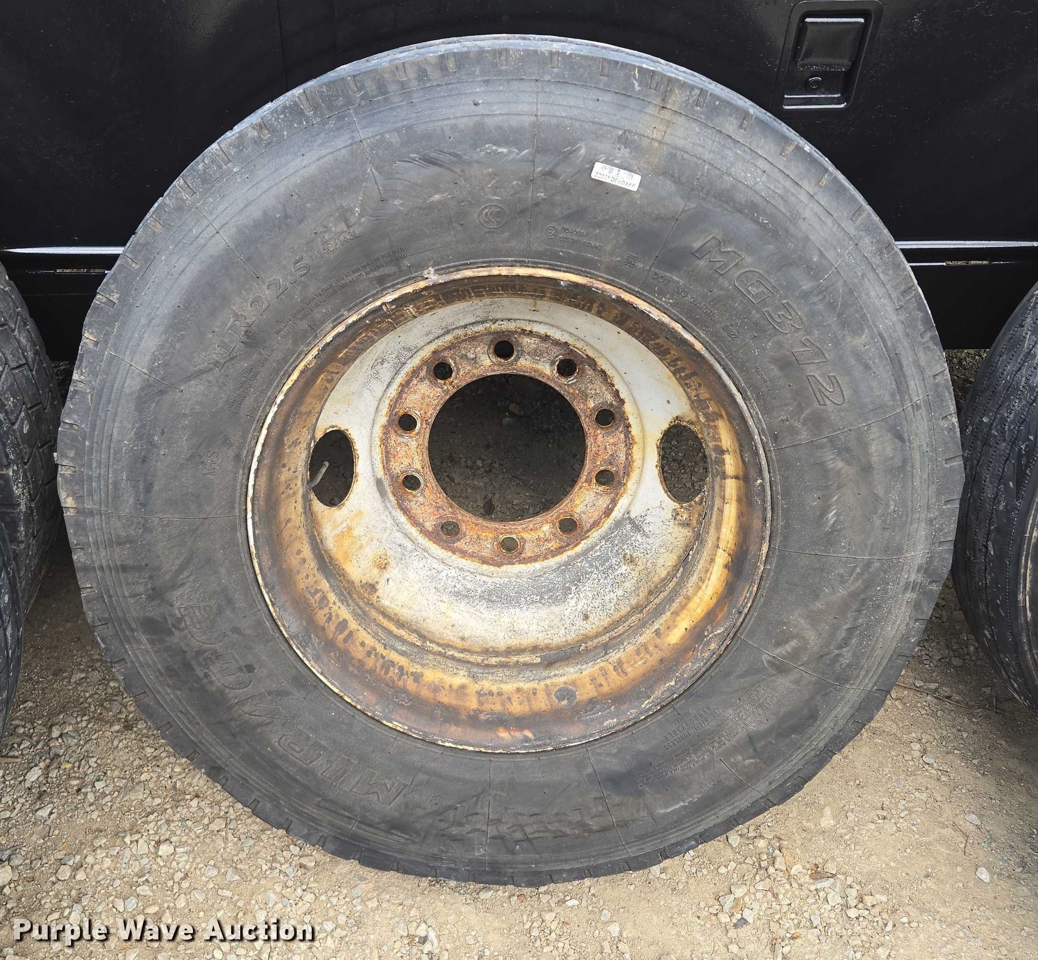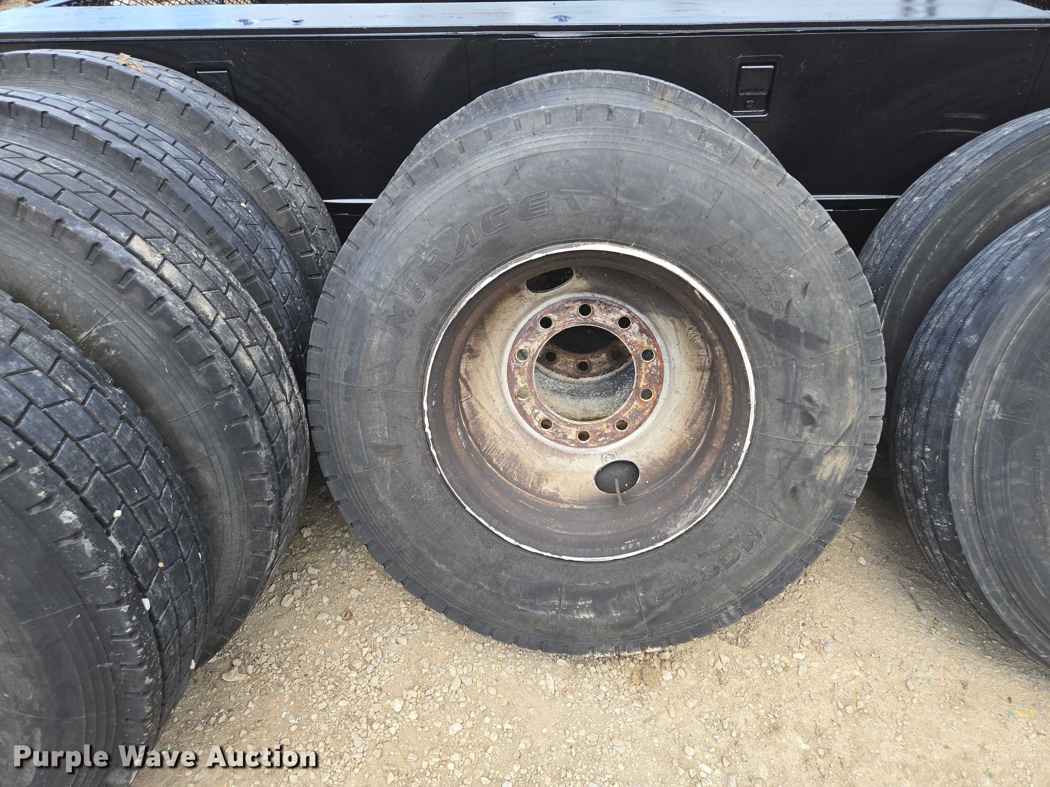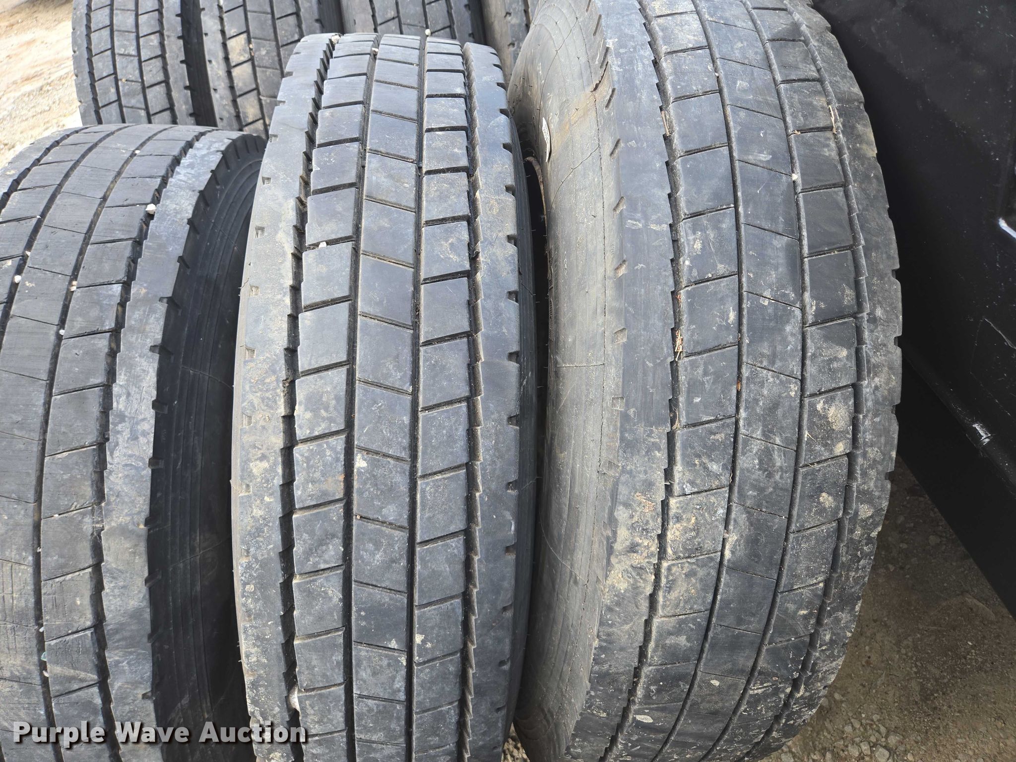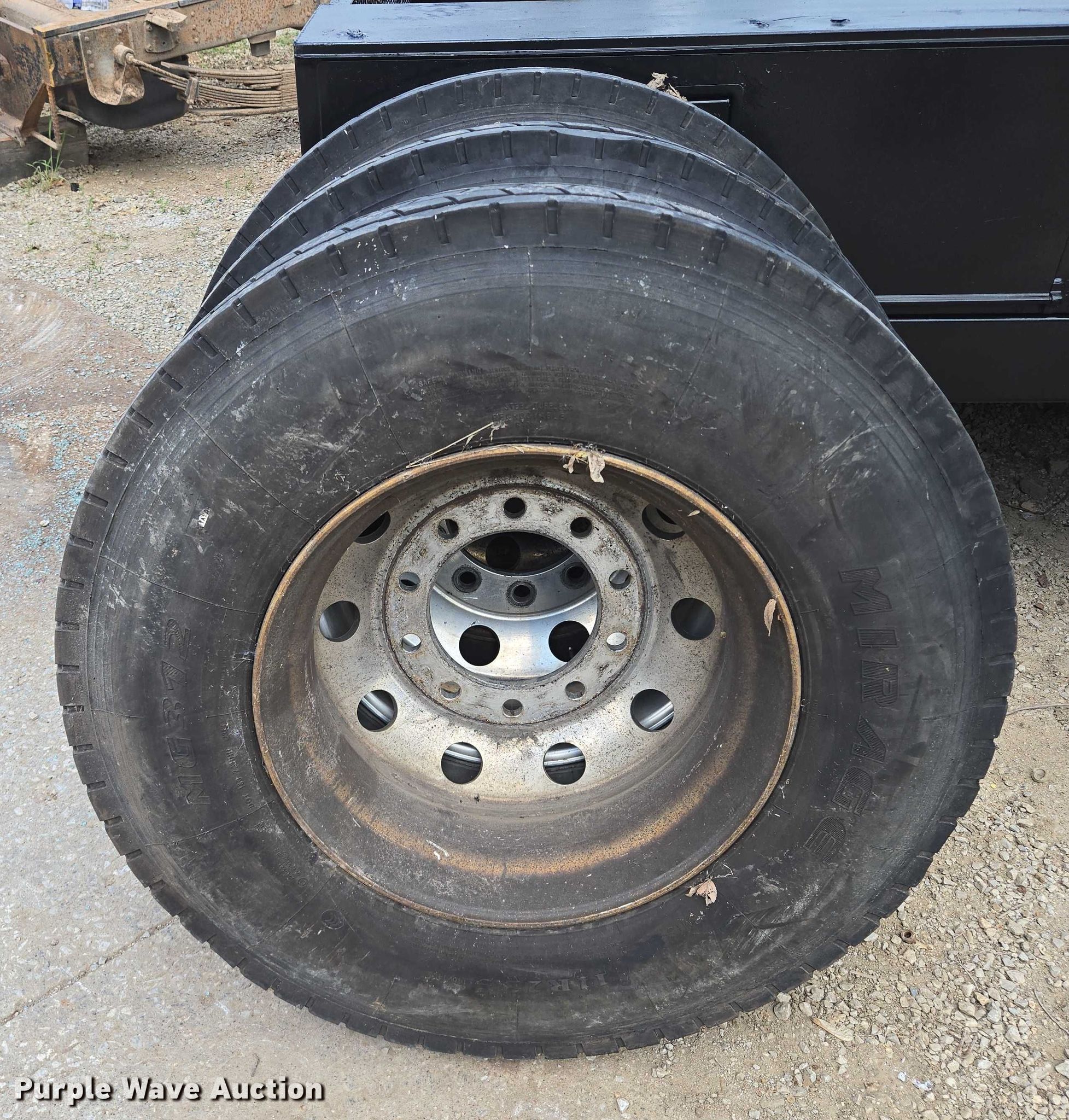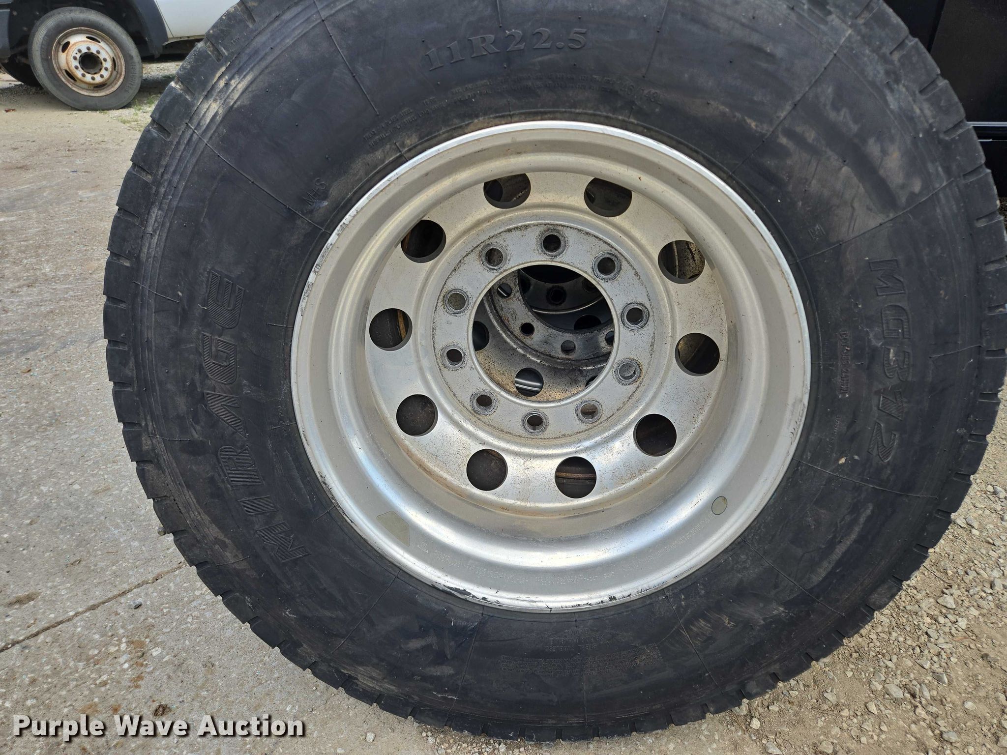 Purple Wave is selling a used Industrial Tires or Tracks in Missouri. This item is a (10) tires and wheels with the following: (8) aluminum, (6) 11R22.5, (2) 275/80R225, (2) steel, 11R22.5