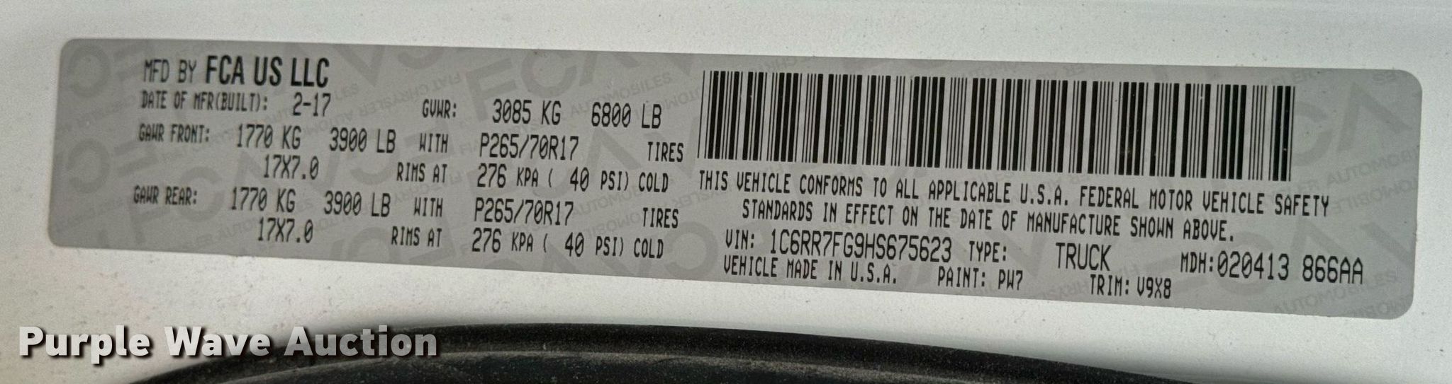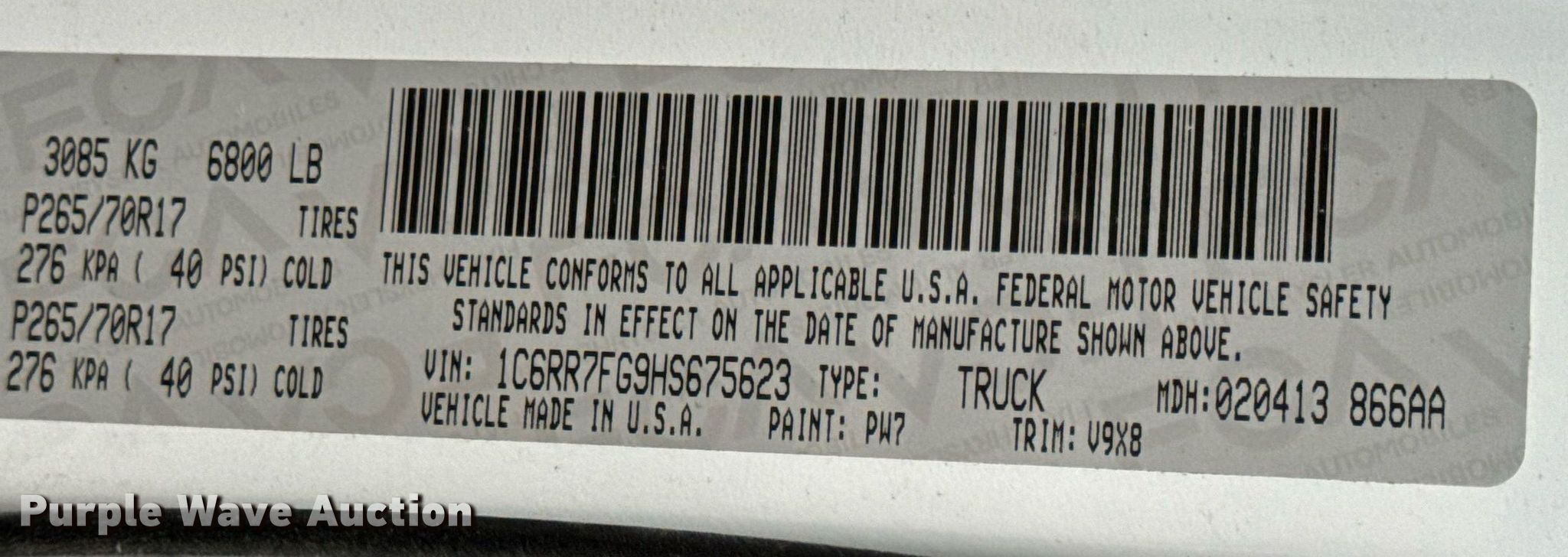 - VIN: 1C6RR7FG9HS675623