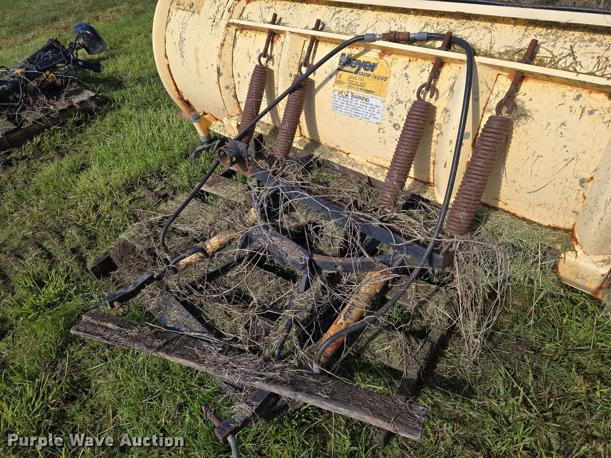 Purple Wave is selling a used Truck Part and Attach. in Kansas. This item is a Meyer C-8.5 snow plow with the following: Serial: 00168909983, Width: 102", Mounting brackets
