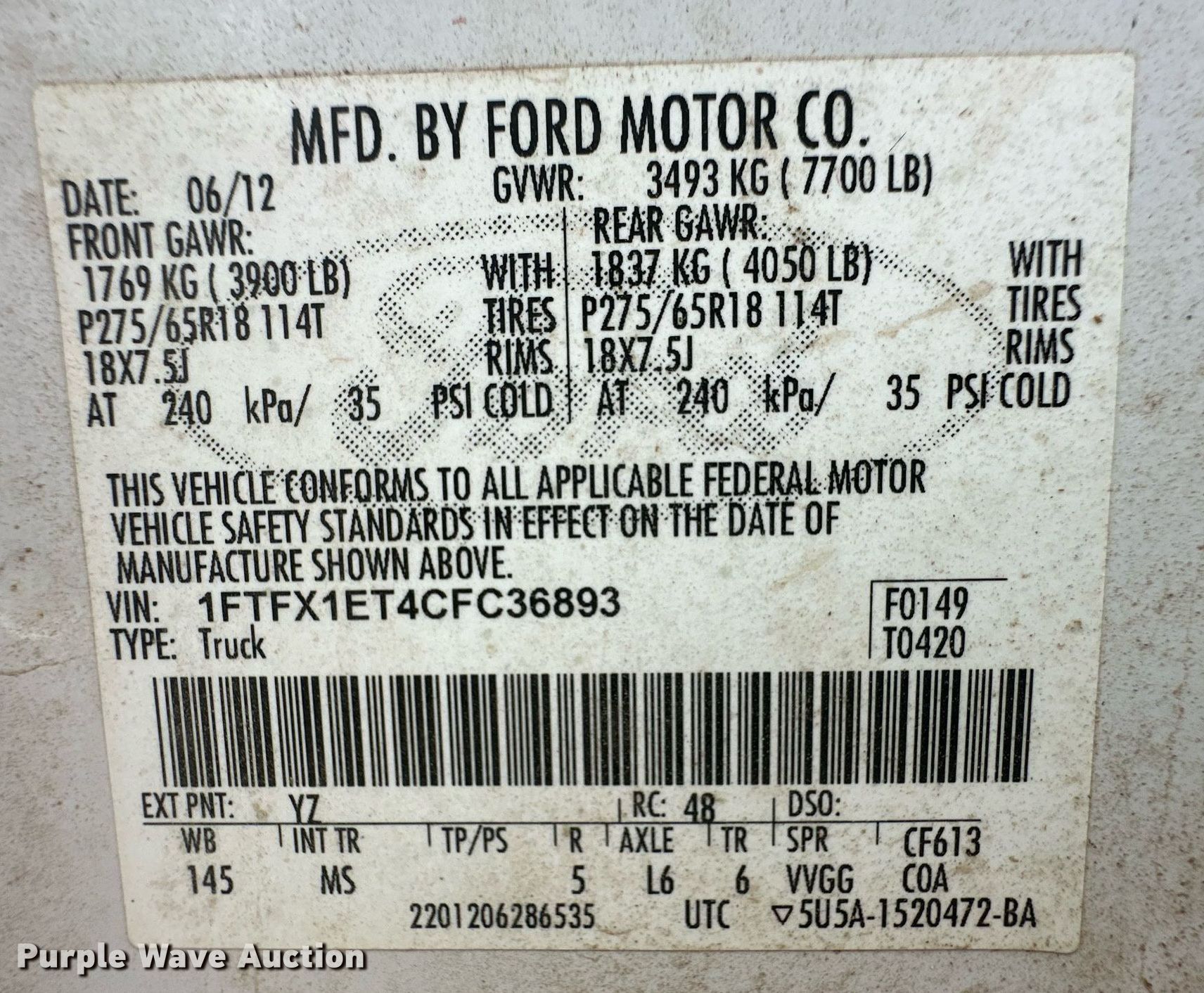 - VIN: 1FTFX1ET4CFC36893