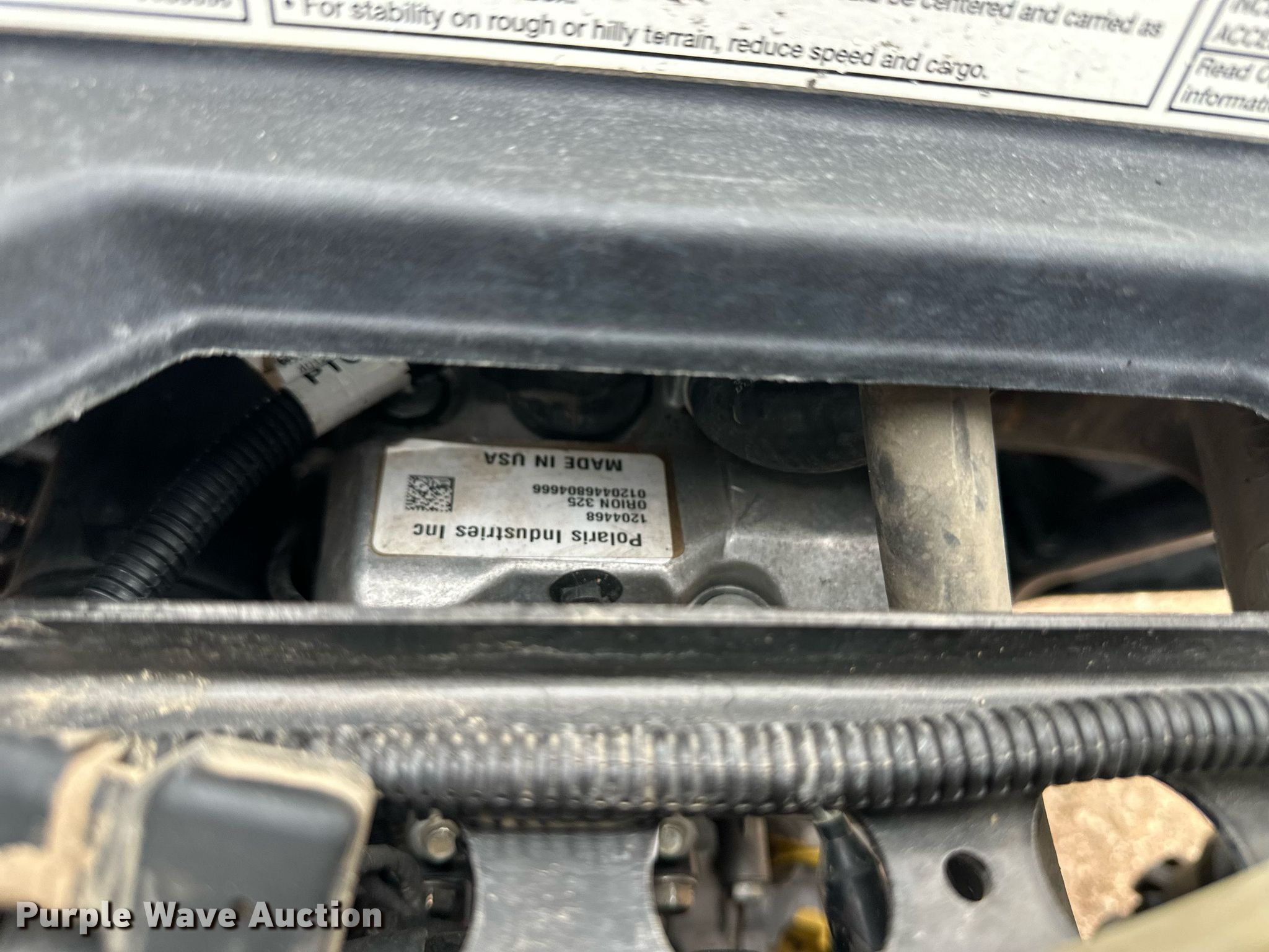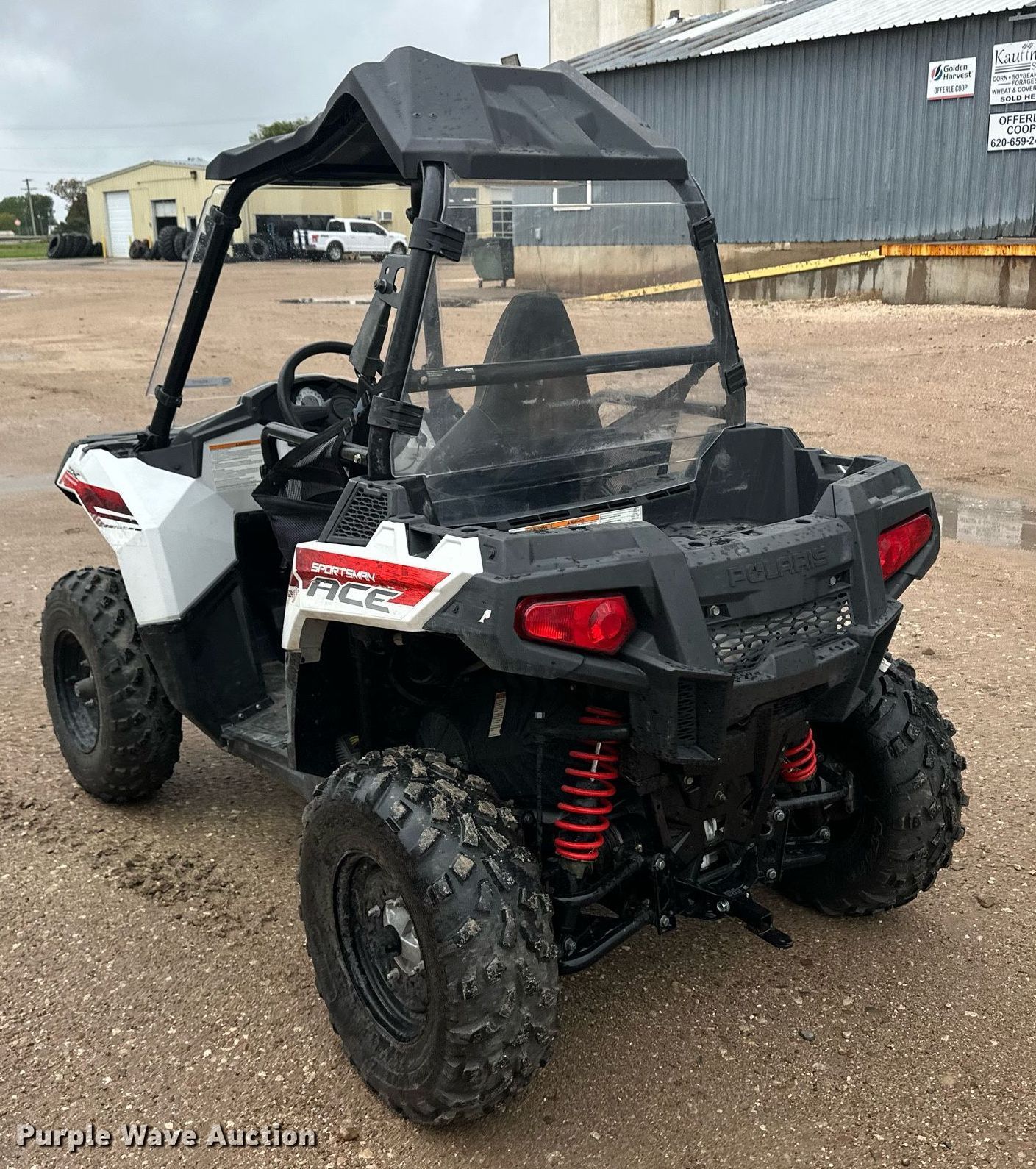 2014 Polaris Sportsman Ace ATV. Miles: 1,412 on odometer, Hours: 238 on meter, VIN: 4XADH33ASEA601947. Engine Cylinders: 1, Fuel type: Gas. Transmission Automatic. Chassis Four wheel drive/ All wheel drive. Operators station OROPS. Features Receiver hitch. Tires Front: 25x8.00-12, Rear: 25x10.00-12. Transfer of ownership documentation will be a bill of sale. Offerle, KS 67563