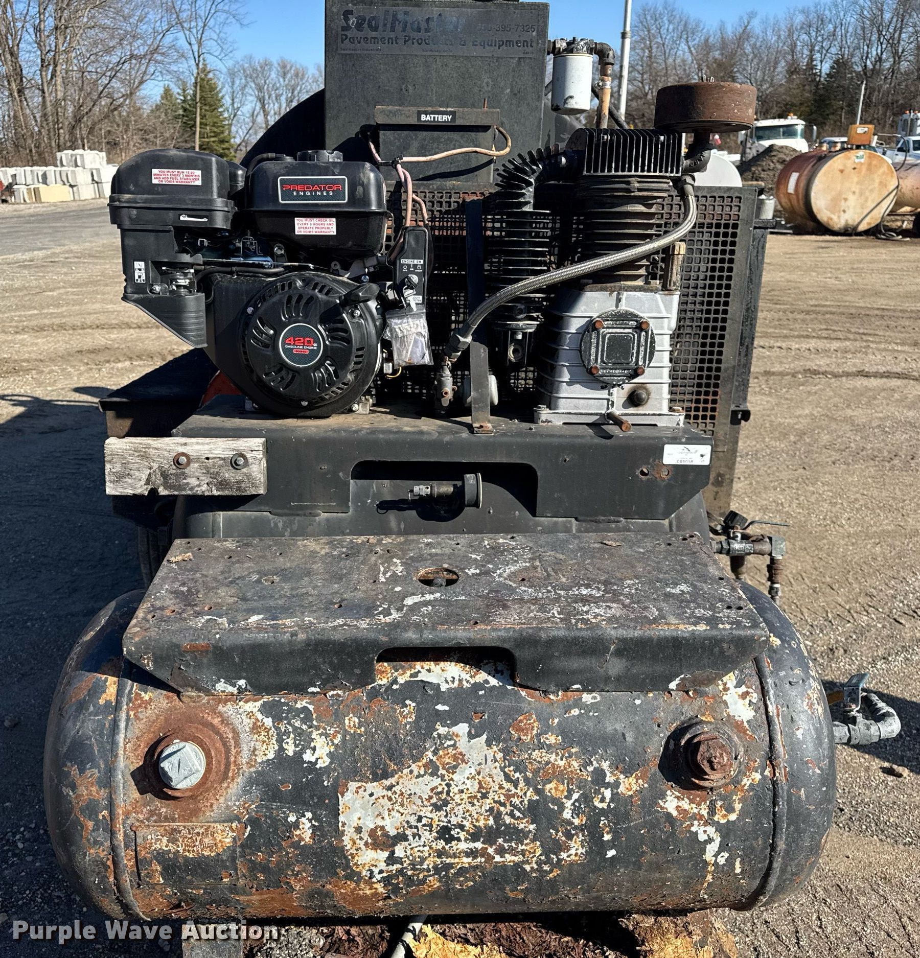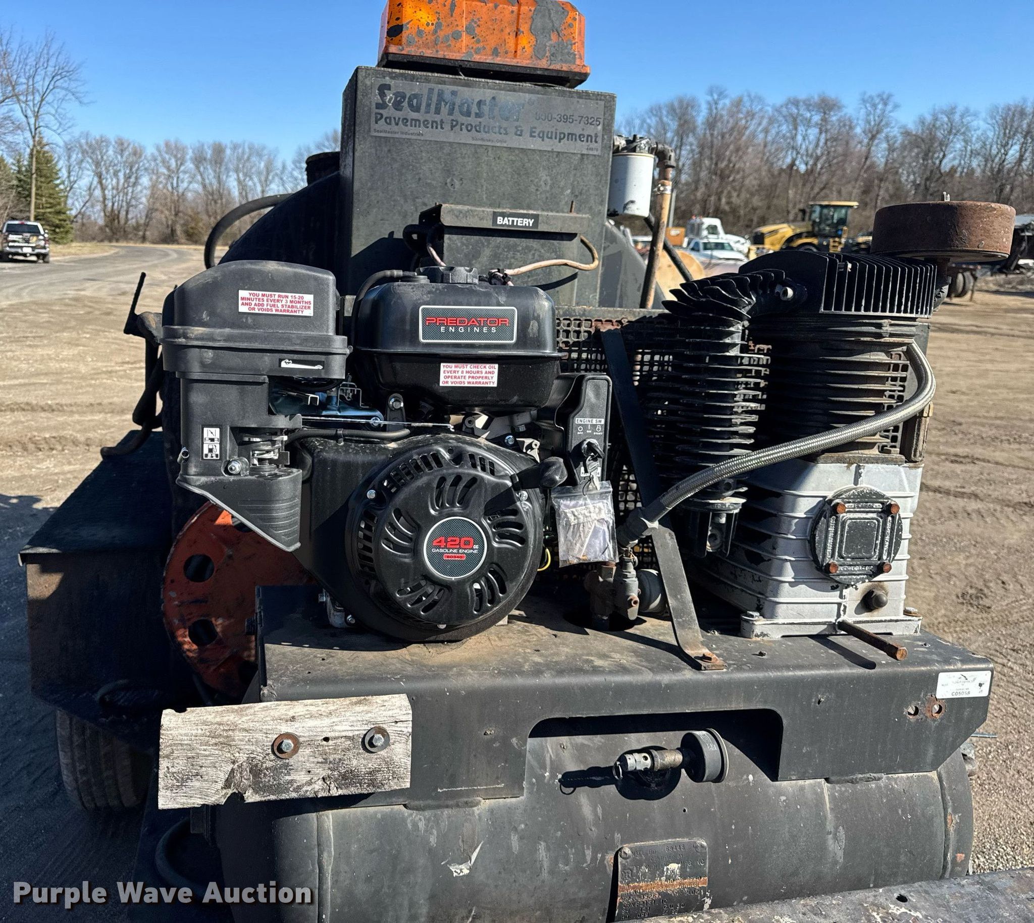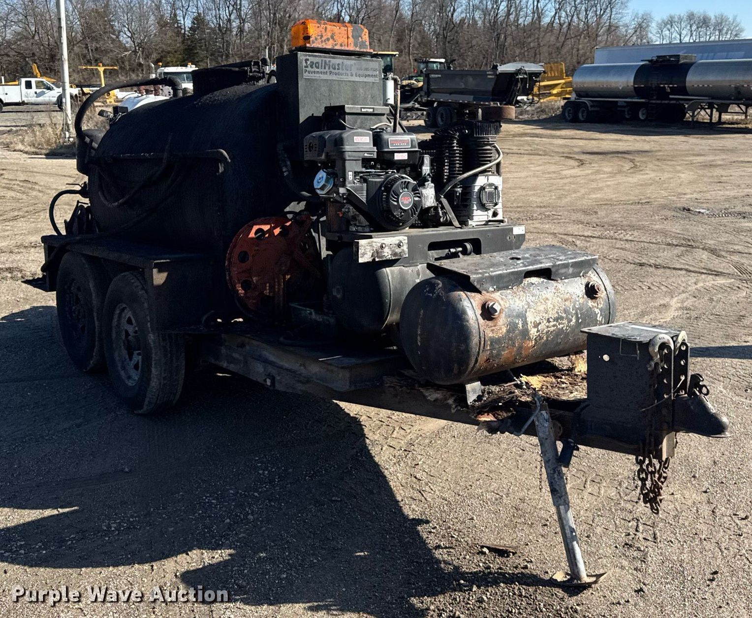 2003 Seal master 550 seal coat trailer. VIN: 1S9A5182920420299. Dimensions Overall: 16' 6" L x 72" W. Engine Predator, Displacement: 420 cc, Cylinder: 2, Gas. Features Tank type: Steel, Capacity: 550 gallons. Chassis Ball hitch: 2 5/16", Landing gear: Single, Suspension: Spring, Brakes: Electric, Axles: Tandem. Tires Steel wheels, Size: 215/85R16. Illinois title. Title distribution may be delayed up to 30 days from verification of funds. Porter Brothers Asphalt & Sealing Inc.. Rock Falls, IL 61071