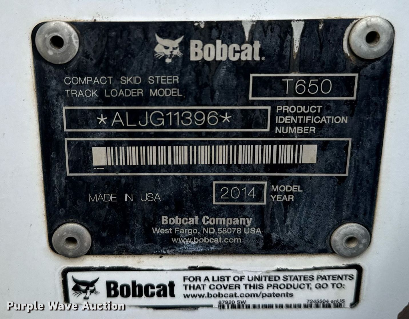 Purple Wave is selling a used Tracked Skid Steer Loader in Oklahoma. This item is a 2014 Bobcat T650 tracked skid steer loader with the following: Hours: 2,735 on meter, Serial: ALJG11396