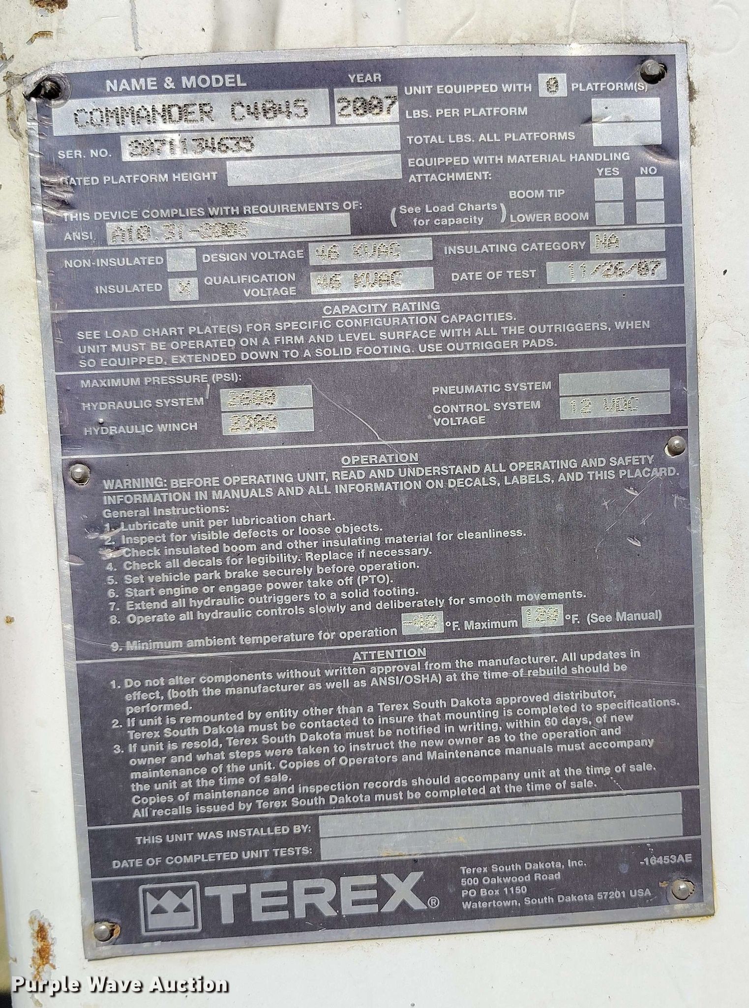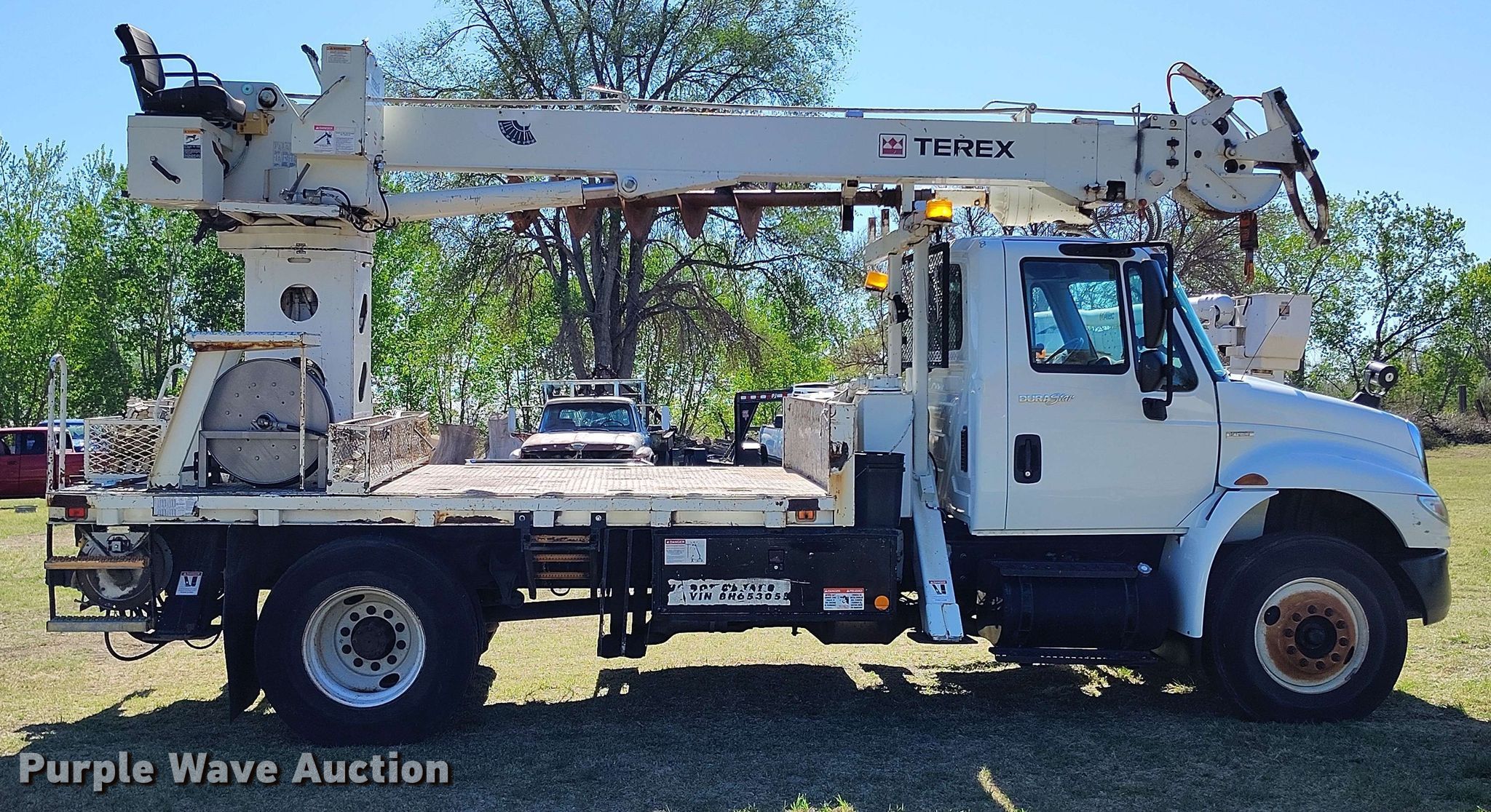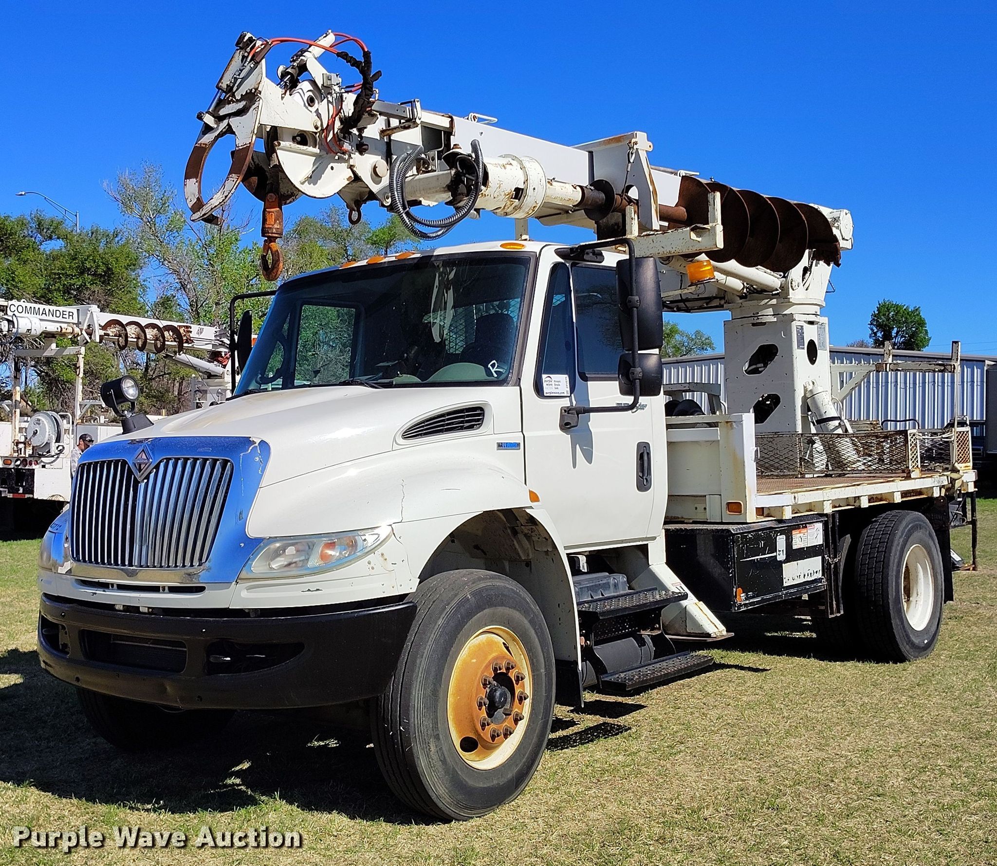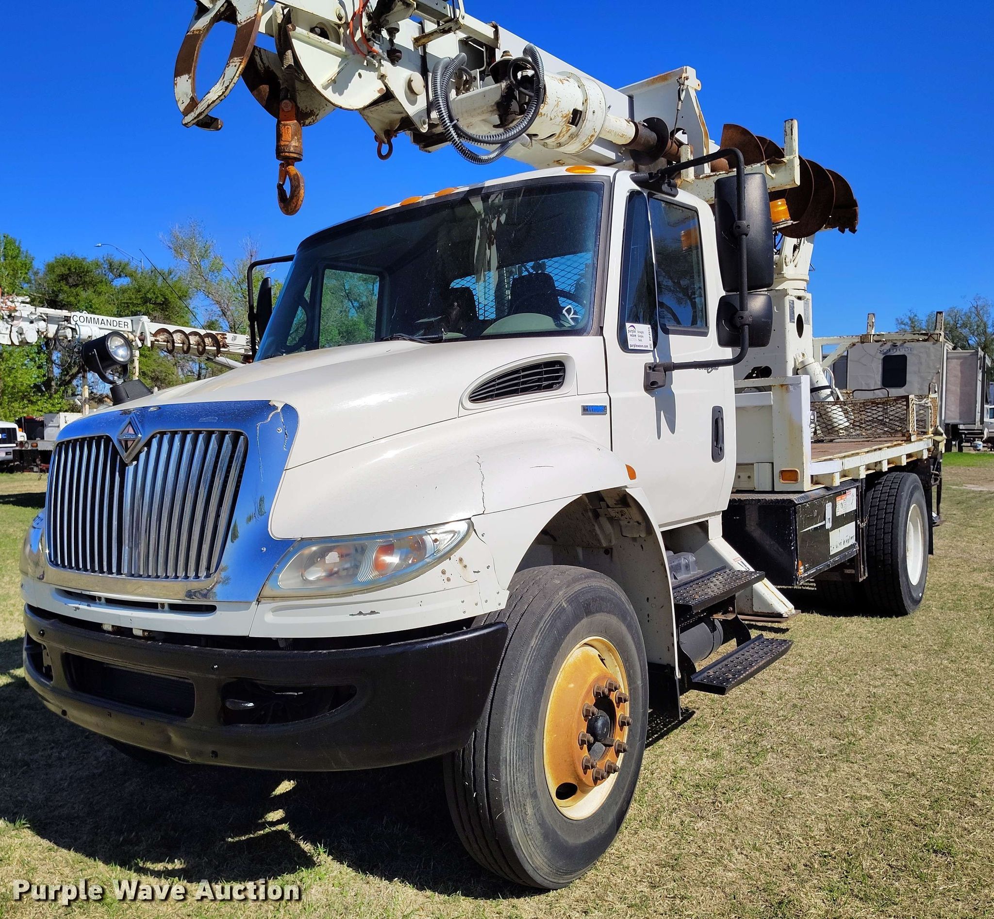 2008 International 4400 digger derrick truck. Miles: 95,343 on odometer, Hours: 10,451 on meter, VIN: 1HTMKAAN68H653055. Engine International MaxxForce GDT260, Displacement: 7.6L, Cylinders: 6, Fuel type: Diesel, Engine brake. Transmission Allison, Automatic. Chassis Axles: Single, Suspension: Spring, Brakes: Air, PTO, GVWR: 33,000 lbs. Interior AC, Heat, Cruise control. Features Bed 13' 7" L x 96" W, Boom Terex Commander 4045, Serial: 2071134635, Mast height: 46', Maximum lift capacity: 25,910 lbs, Boom type: Articulating, Insulated, Telescopic, Boom controls Platform/ basket, Remote control, Material handler, Pole guide, Auger Diameter: 20".. Tires Size: 11R22.5. Colorado title. Title distribution may be delayed up to 14 days from verification of funds. JLH Electrical LLC. La Junta, CO 81050