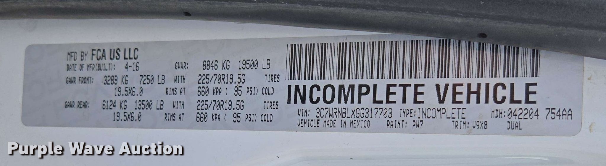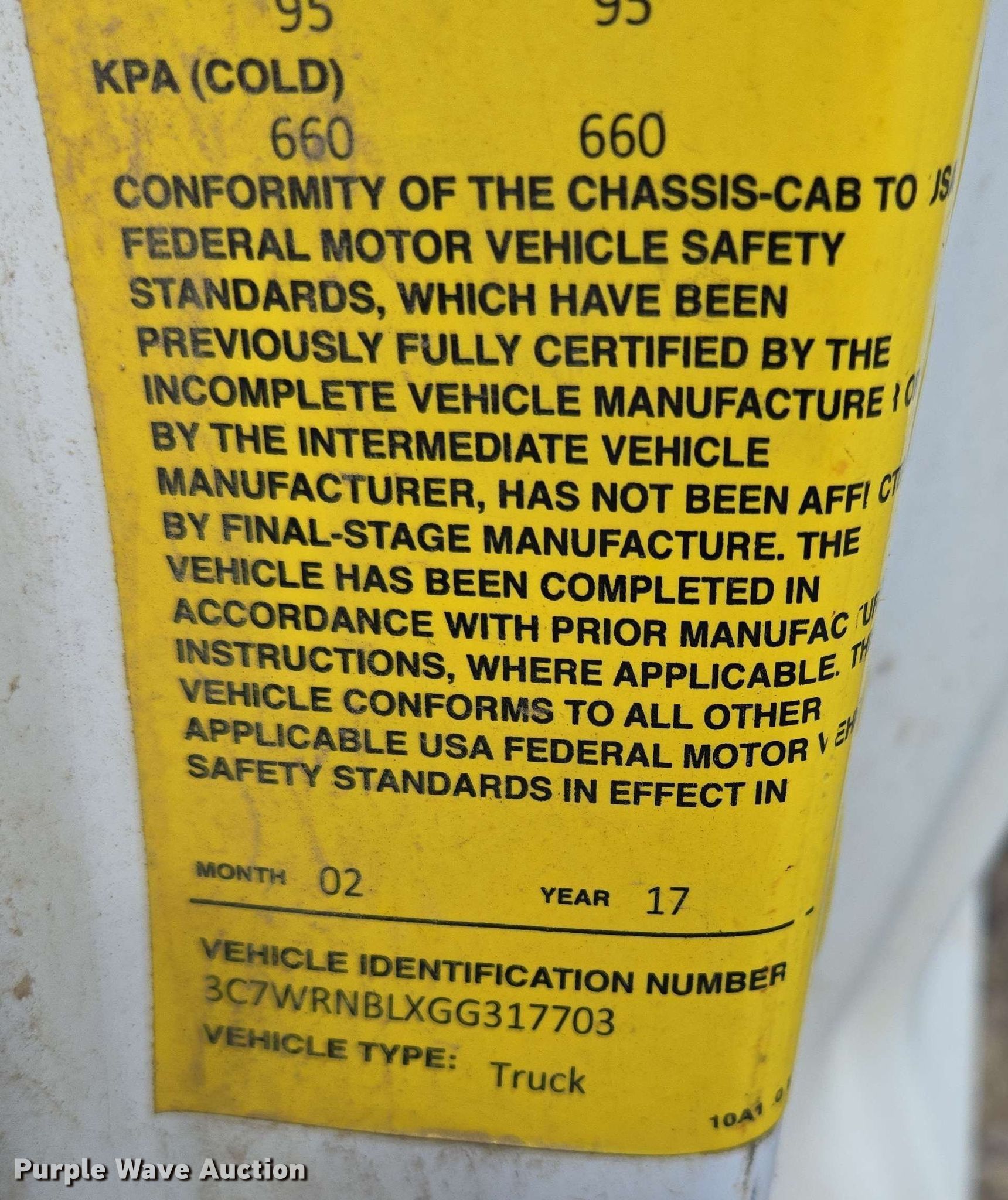 Purple Wave is selling a used Bucket Truck in Arkansas. This item is a 2016 Dodge Ram 5500HD bucket truck with the following: Miles: 139,842 on odometer, Hours: 4,296 on meter, VIN: 3C7WRNBLXGG317703, Unit #: 56