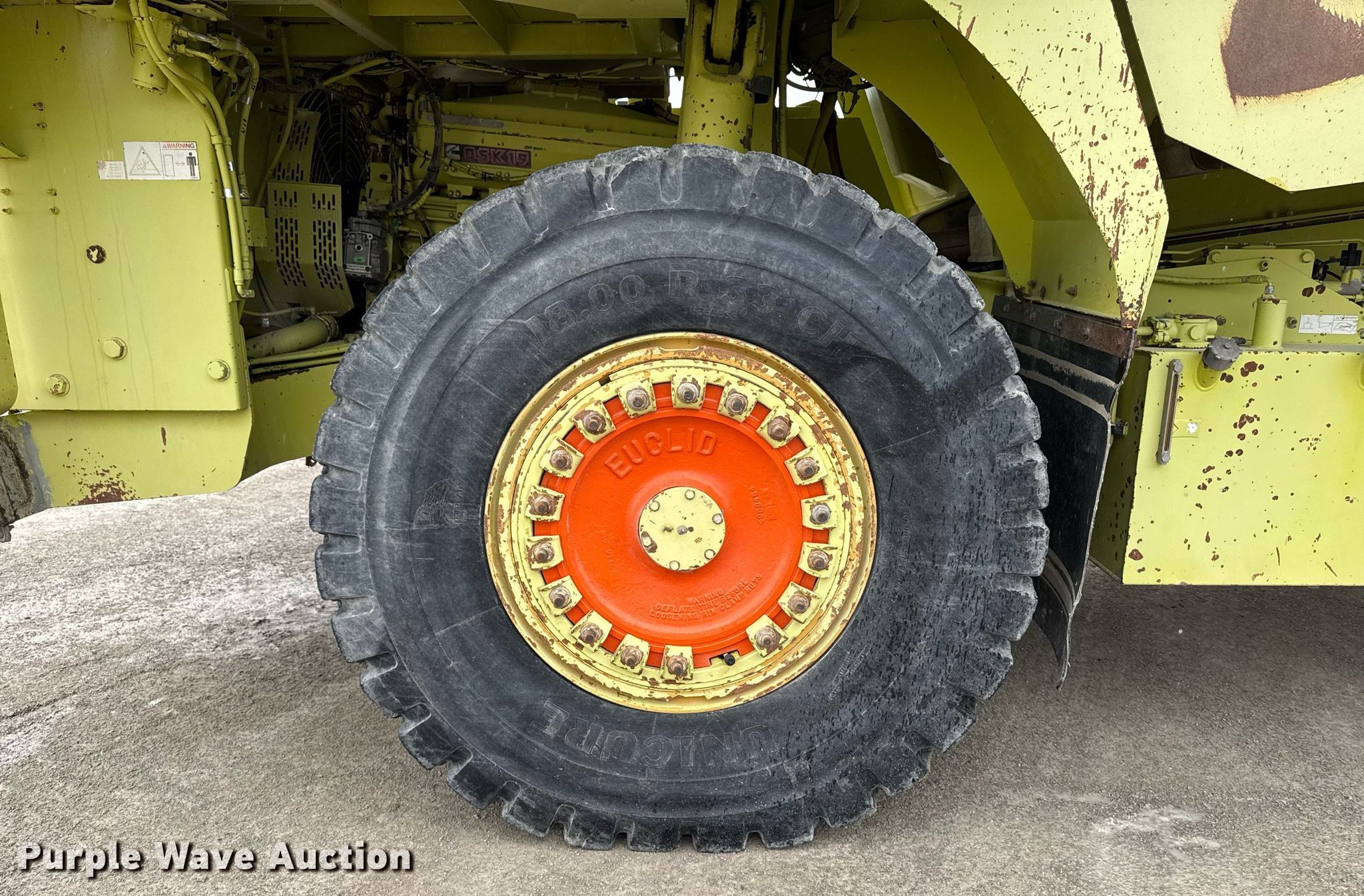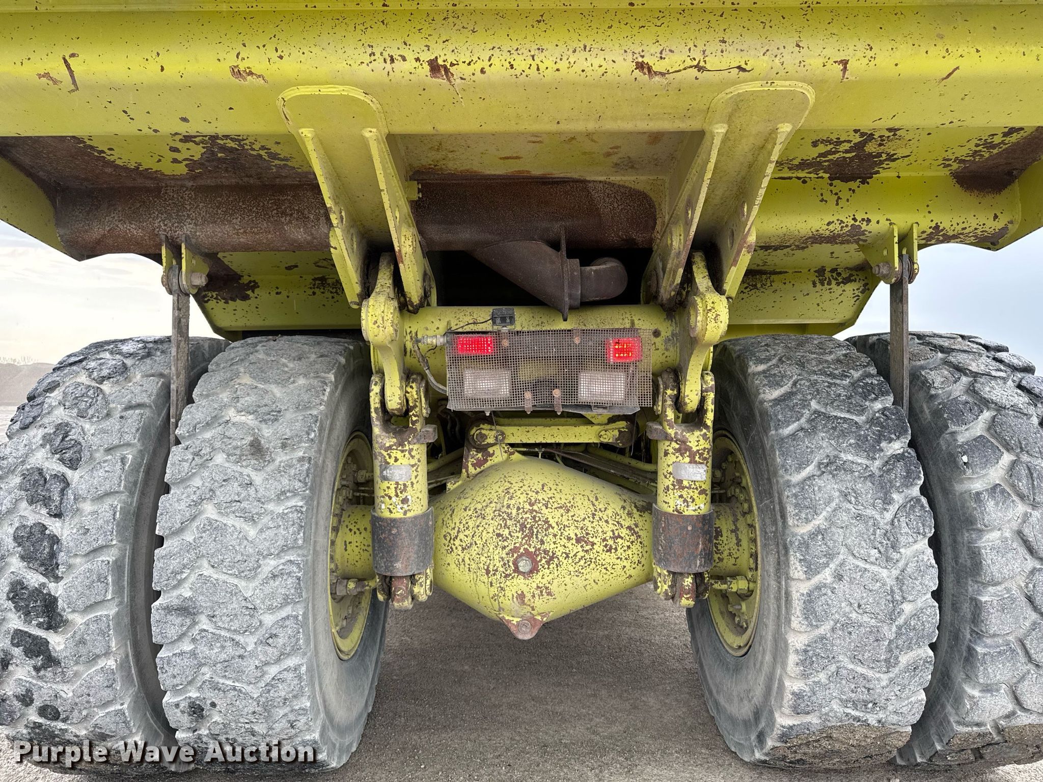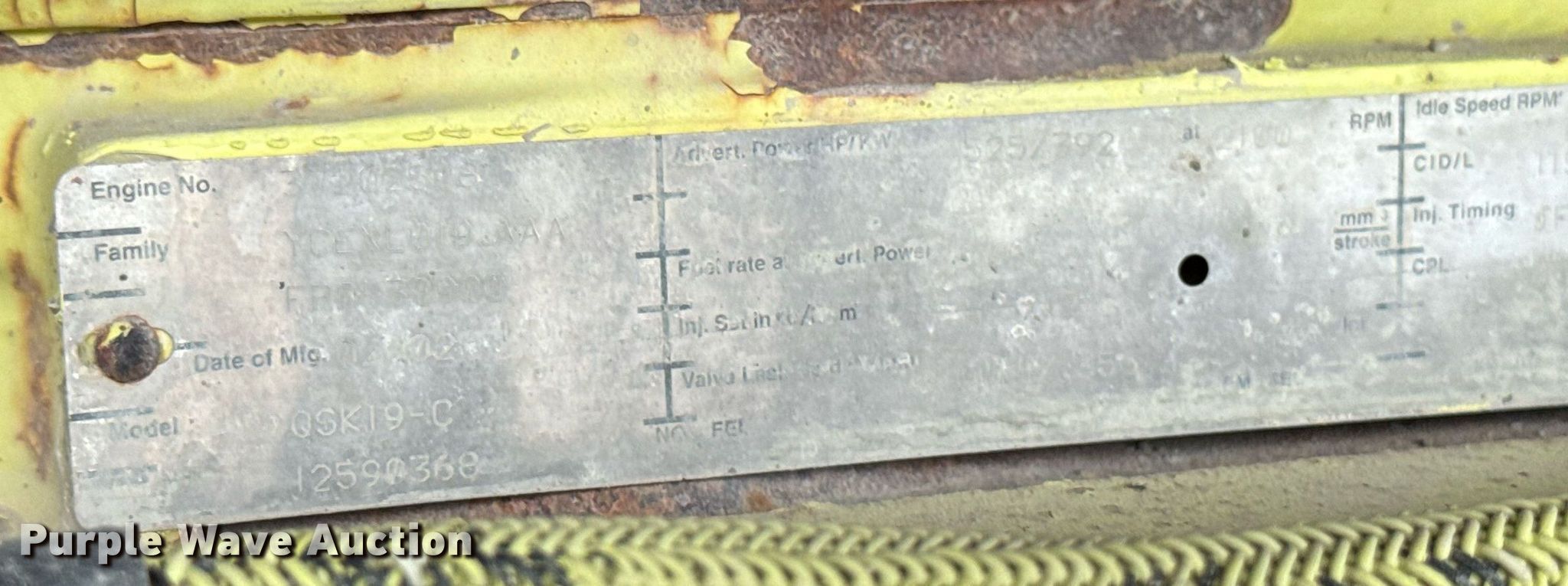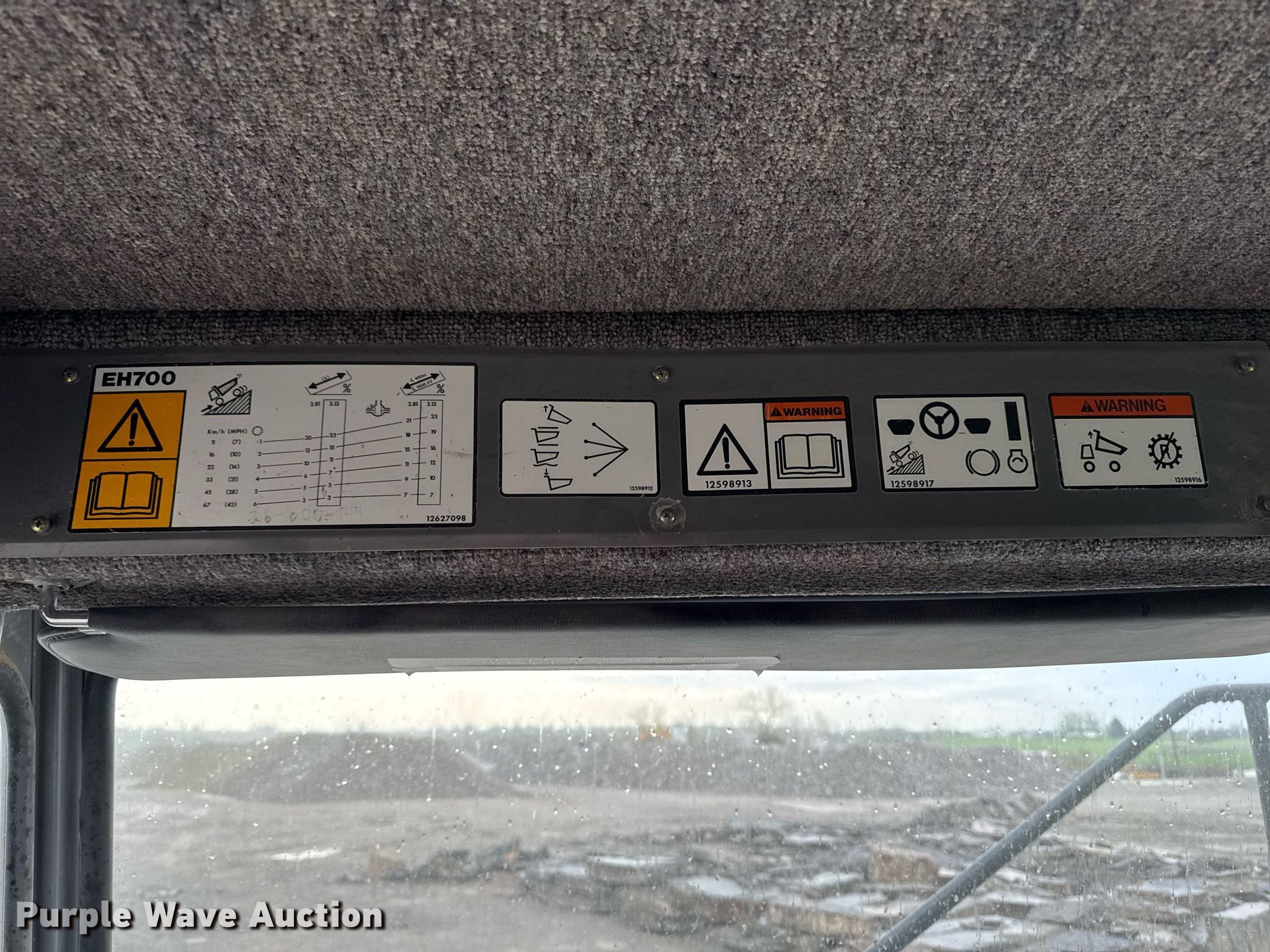 2003 Hitachi EH700 haul truck. Kilometers: 138,008 on odometer, Hours: 17,000 on meter, Serial: 404TDC76886. Engine Cummins QSK19-C, Cylinders: 6, Fuel type: Diesel, HP: 525. Transmission Allison, Automatic, 6F - 2R. Interior AC, Heat, Retarder, Backup camera. Features Dump bed, Bed heater. Tires Size: 18R33. Notes Dash warning indicator: Check engine, Steer temp error, Fuel level error, Engine error 17-7. Cantera Aggregates LLC. Centerville, IA 52544