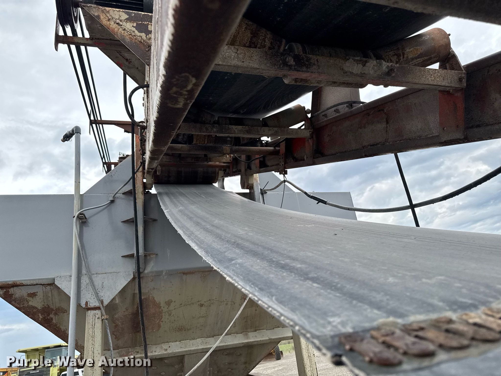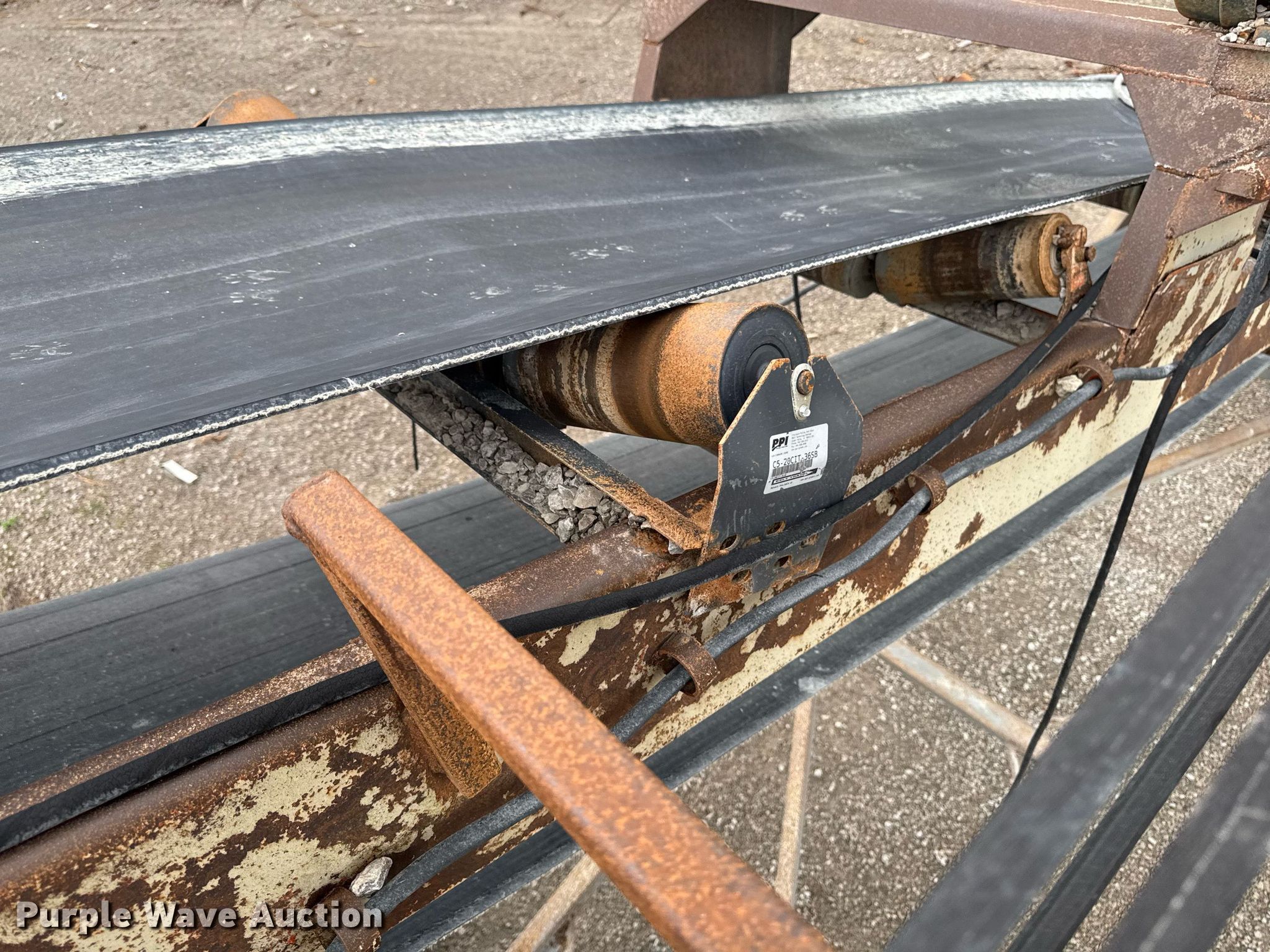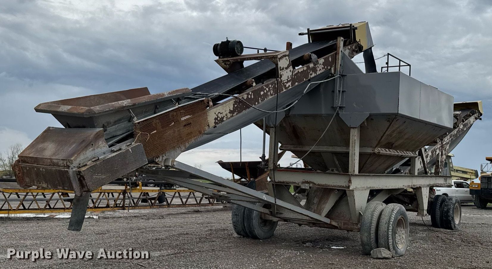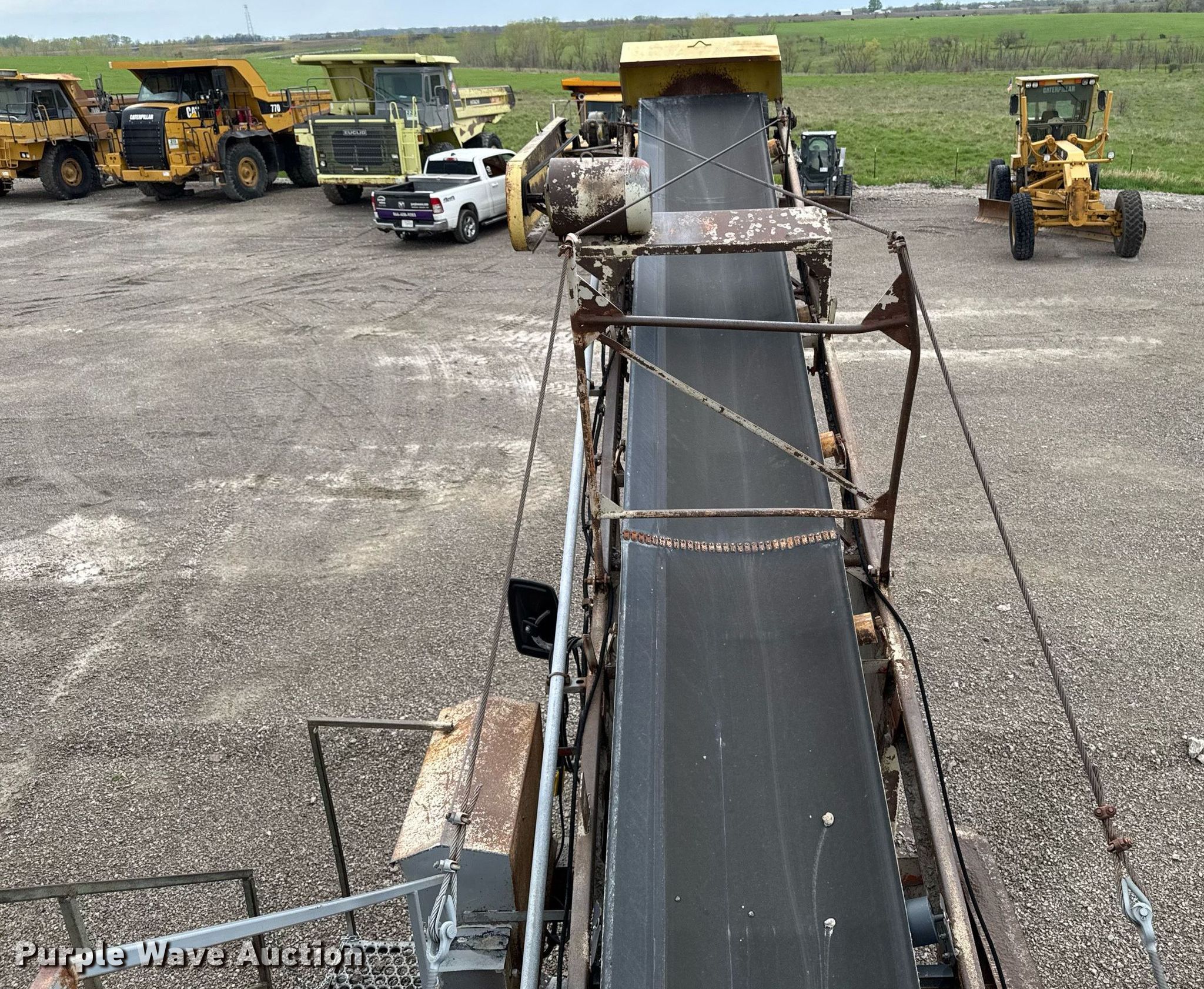 Vibrating surge bin. Electric Motor. Toshiba, HP: 10, Volts: 230/460, Phase: Three. Features Output conveyor: 32' L 36" W, Input conveyer: 22' L x 30" W, Length: 55', Lincoln, HP: 25, Volts: 230/460, Phase: 3. Tires Size: 10-20. This is worksite support equipment and will not come with a title. Transfer of ownership documentation will be a bill of sale. Cantera Aggregates LLC. Centerville, IA 52544