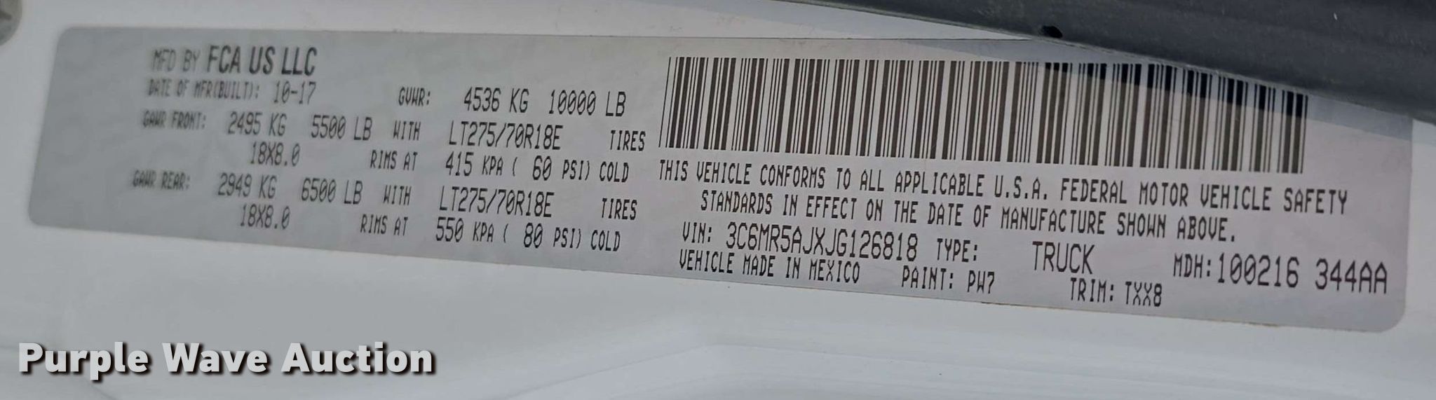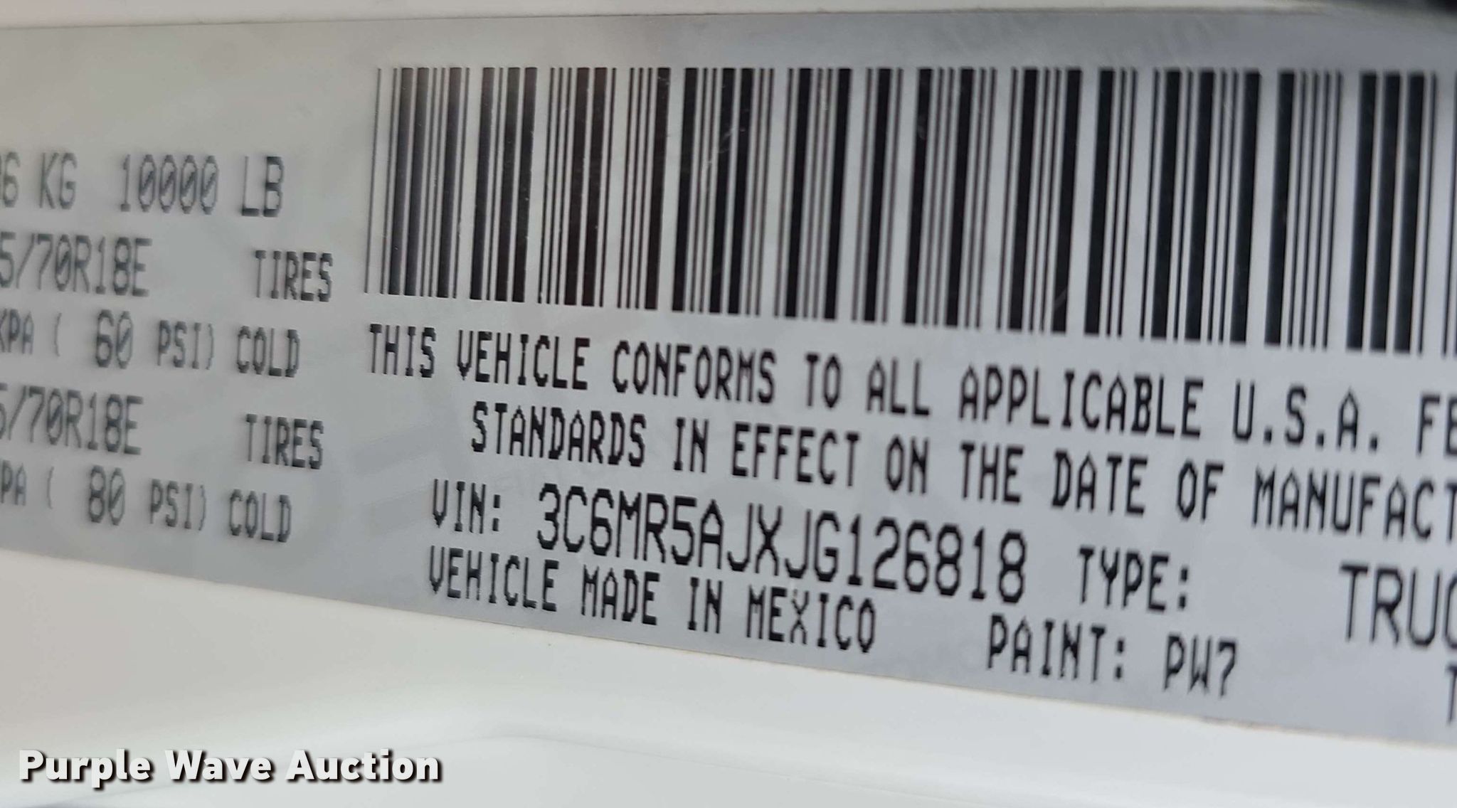 - VIN: 3C6MR5AJXJG126818