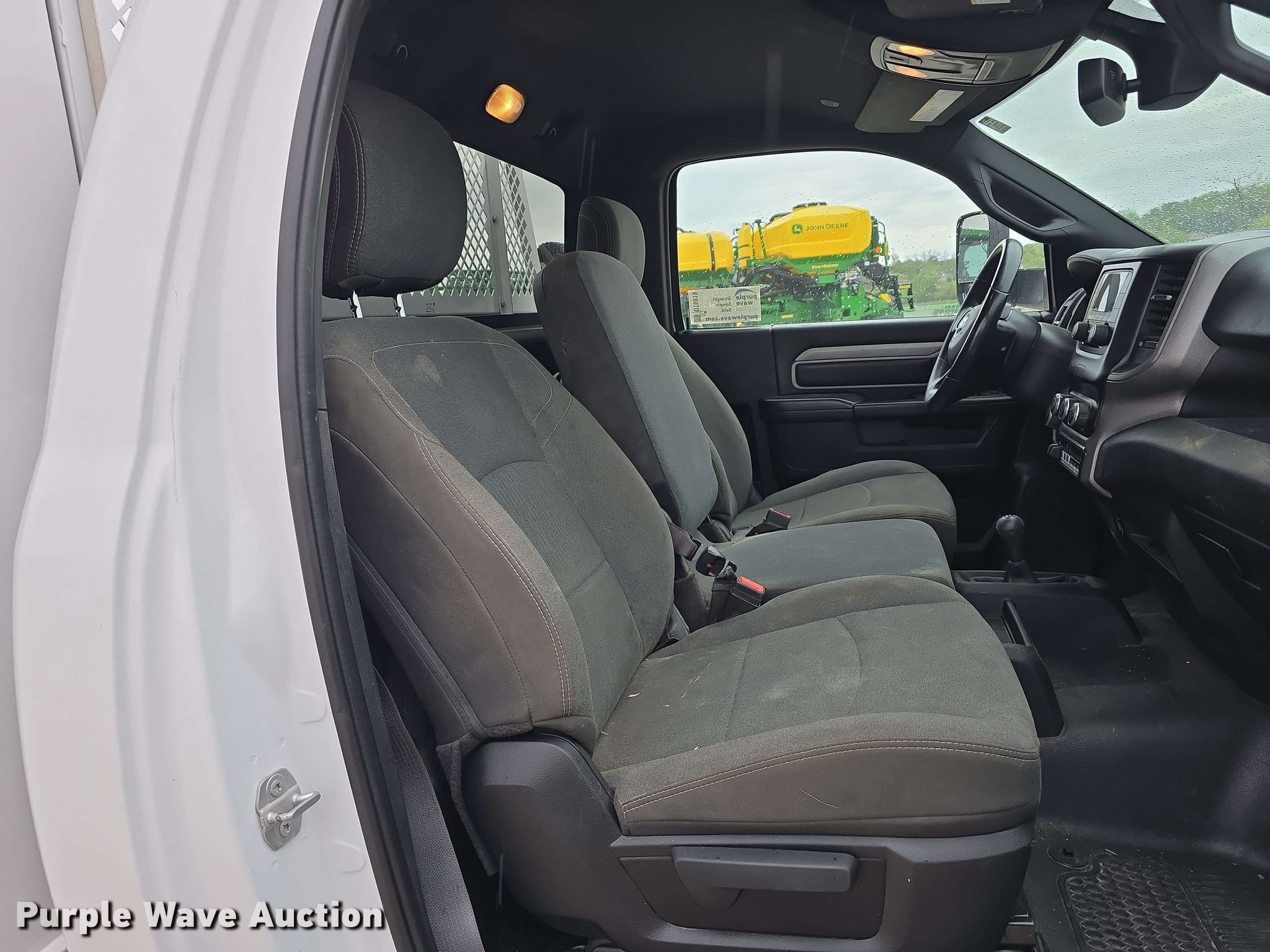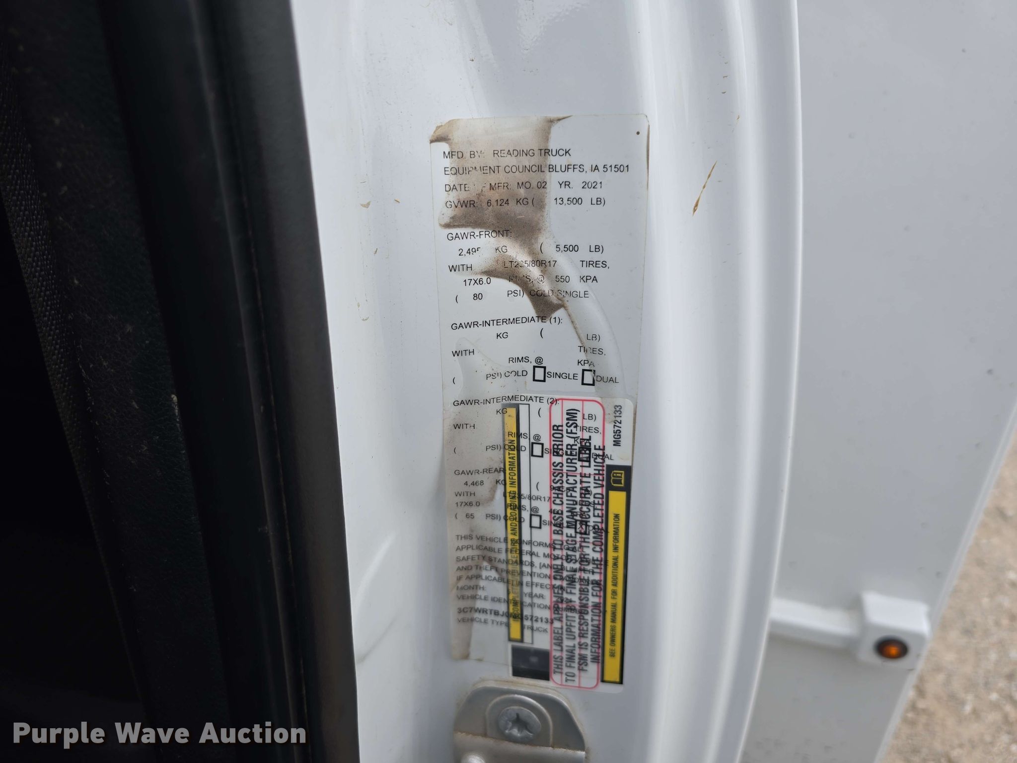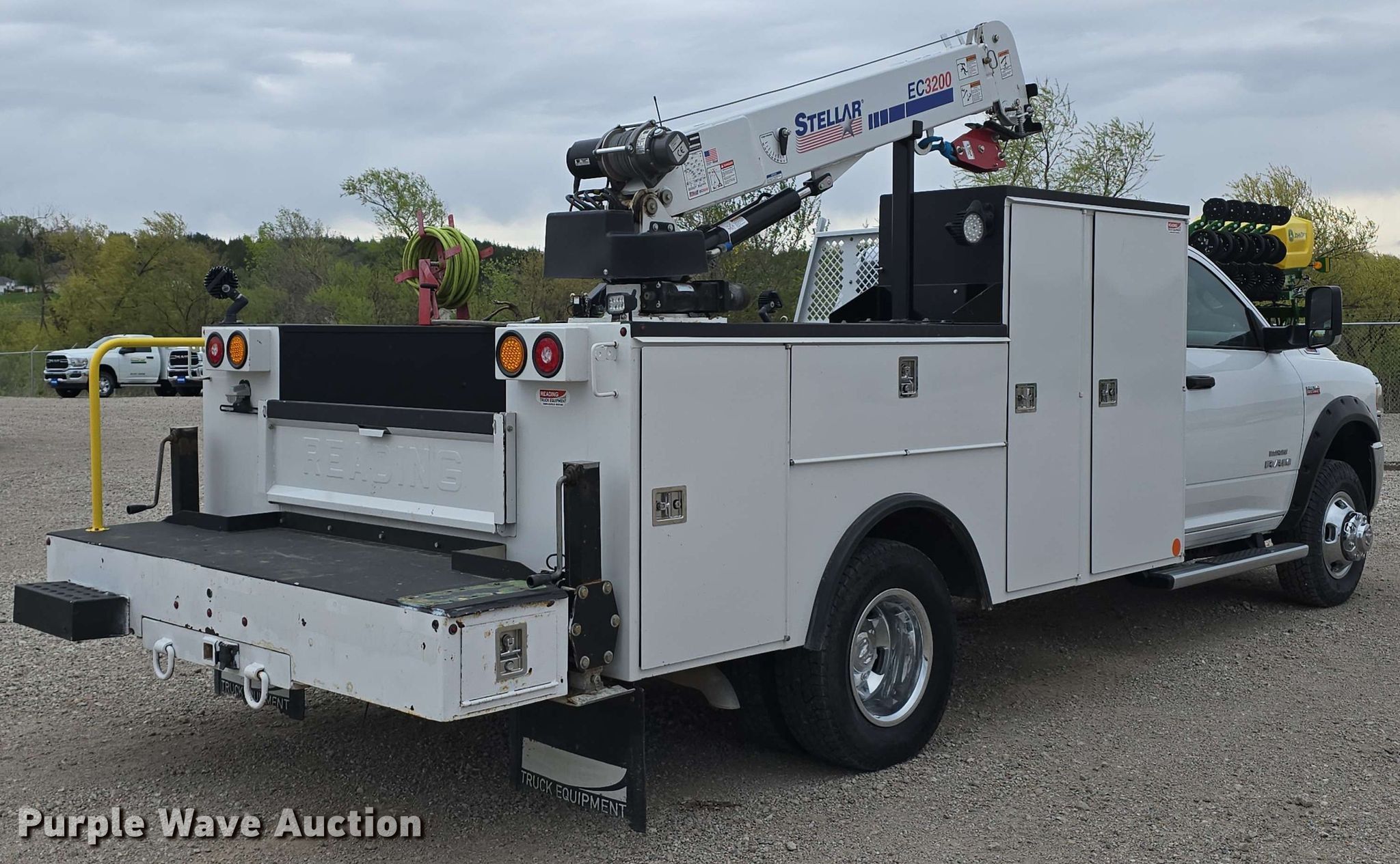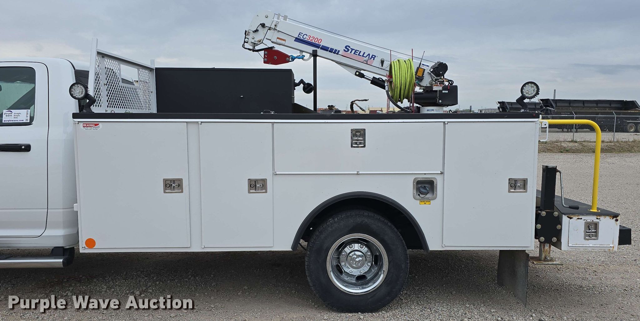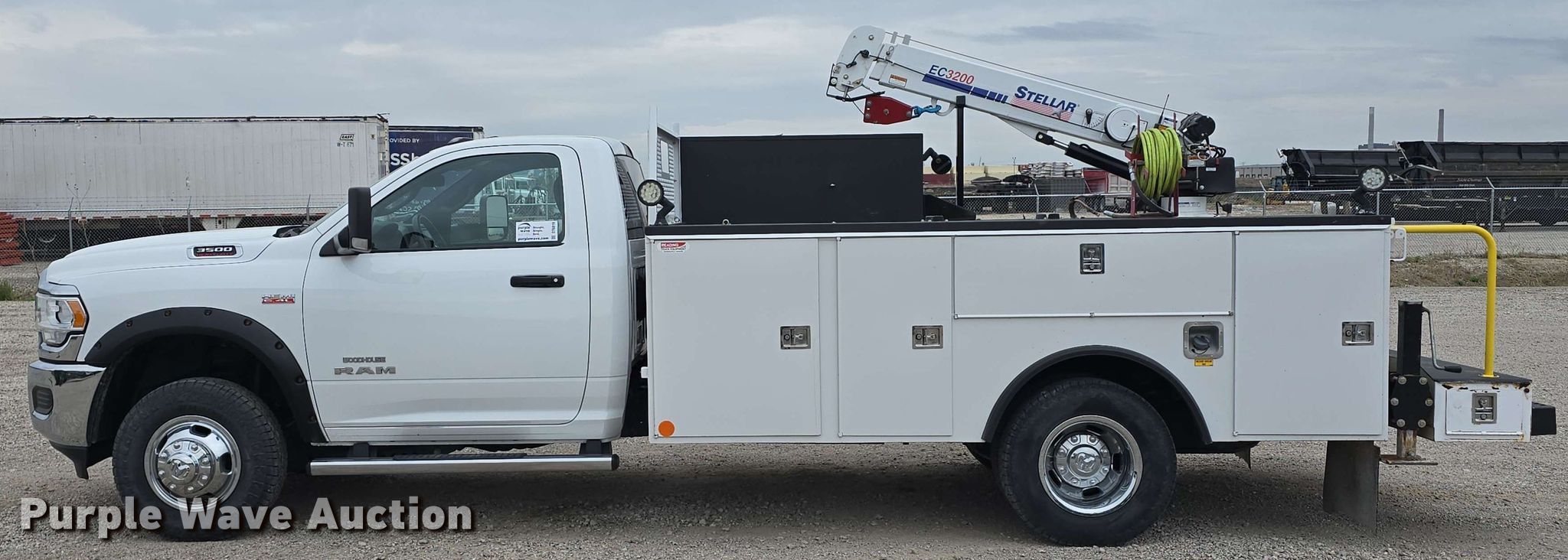2021 Dodge Ram 3500 utility bed pickup truck. Miles: 51,767 on odometer, Hours: 1,623 on meter, VIN: 3C7WRTBJ0MG572133. Engine Displacement: 6.4L V8 OHV, Cylinders: 8, Fuel type: Gas. Transmission Automatic. Chassis Four wheel drive, Axles: Single, Suspension: Spring, Brakes: Hydraulic, GVWR: 13,500 lbs, Wheelbase: 168". Interior AC, Heat, Heated mirrors, Power windows, Power locks, Cruise control, Backup camera, Auxiliary controls, Brake controller. Features Bed Reading, 11' L x 94" W, Torch bottle rack, Crane Stellar EC3200, Maximum boom length: 15' Maximum lift capacity: 3,200 lbs.. Tires Size: LT235/80R17. Notes Dash warning indicator: Check engine. Iowa title. Title has a lien that will be released following the close of the auction. Title distribution may be delayed up to 60 days from verification of funds. AVE-PLP LLC. Council Bluffs, IA 51503
